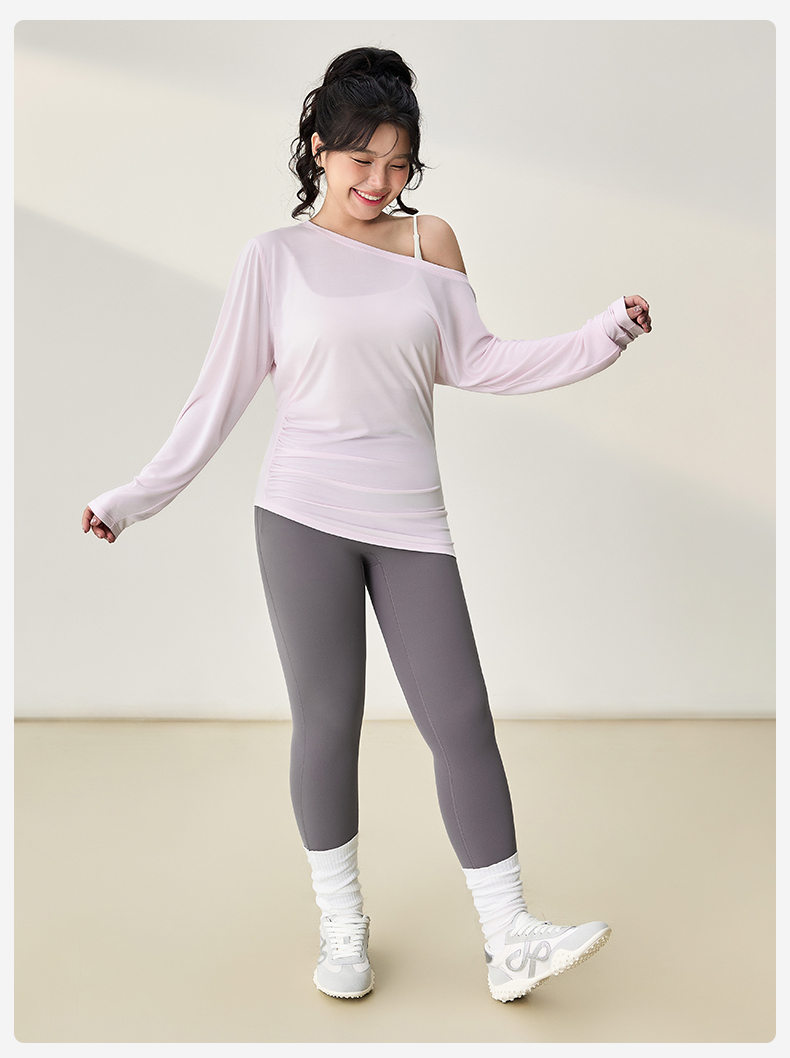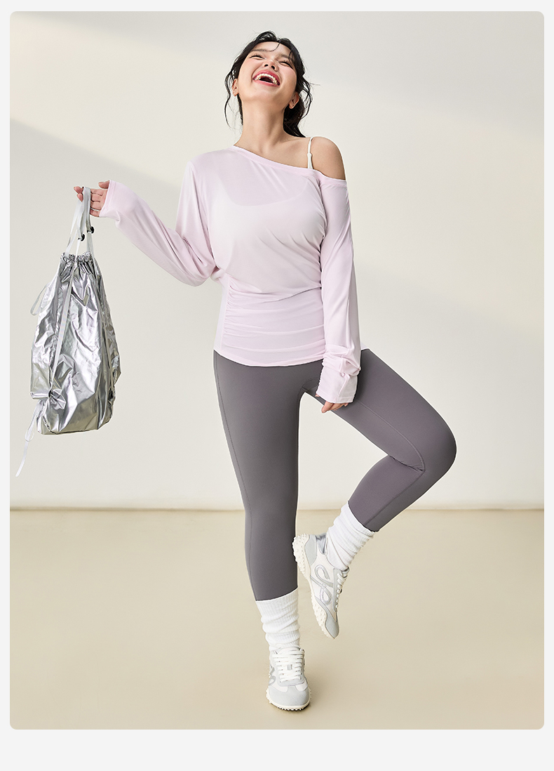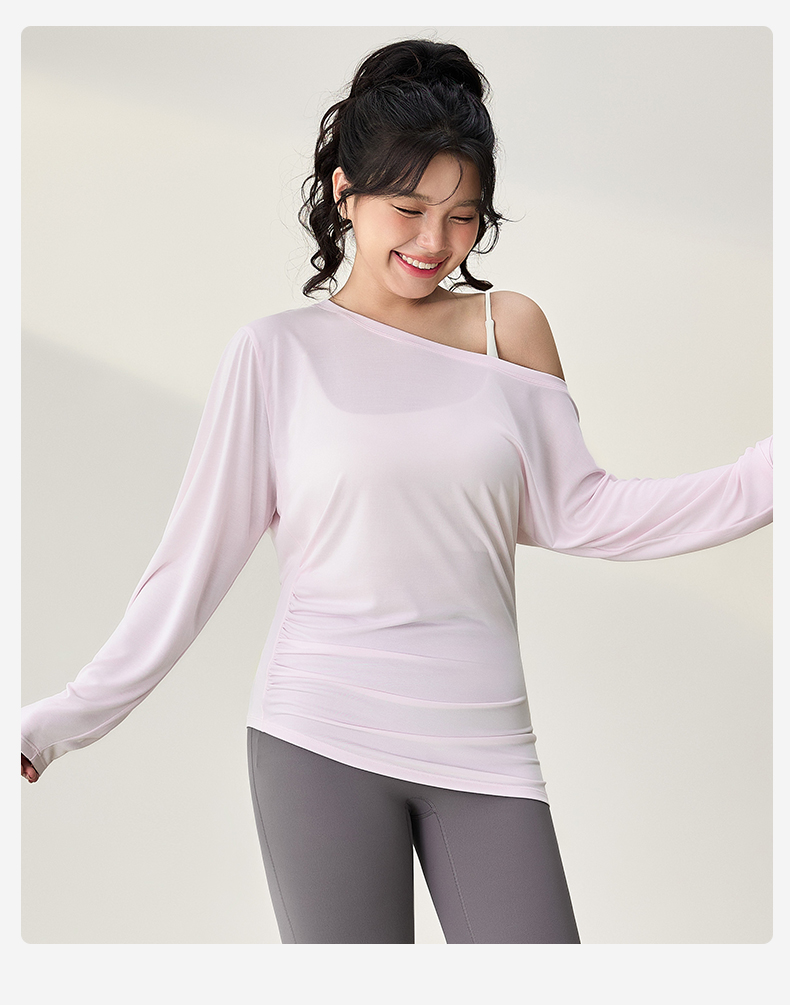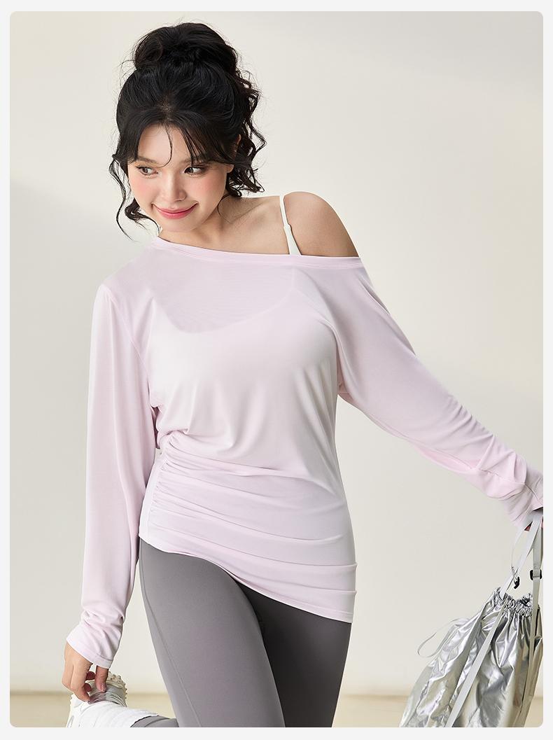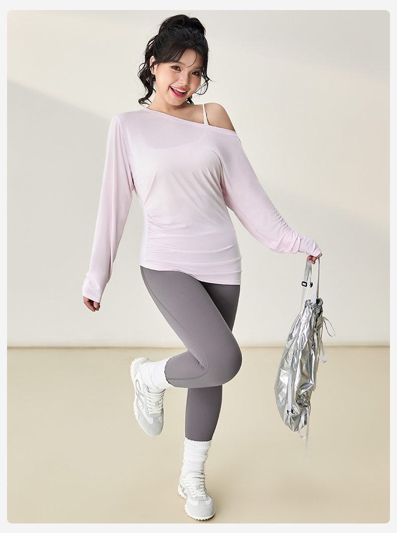 【限时秒】YOGACODE【火树银花系列】大码女性感斜肩显瘦宽松透气休闲运动罩衫DWT225665