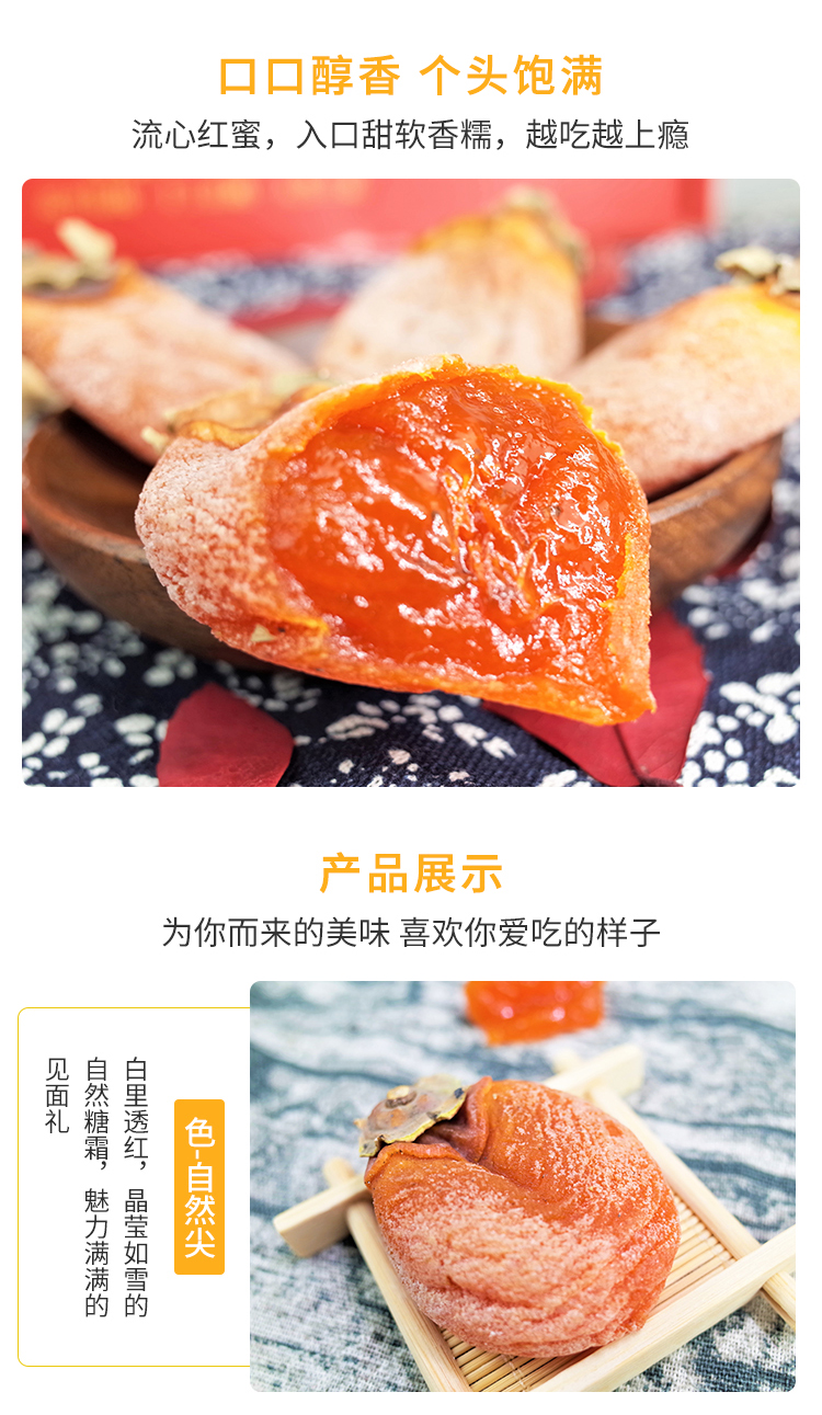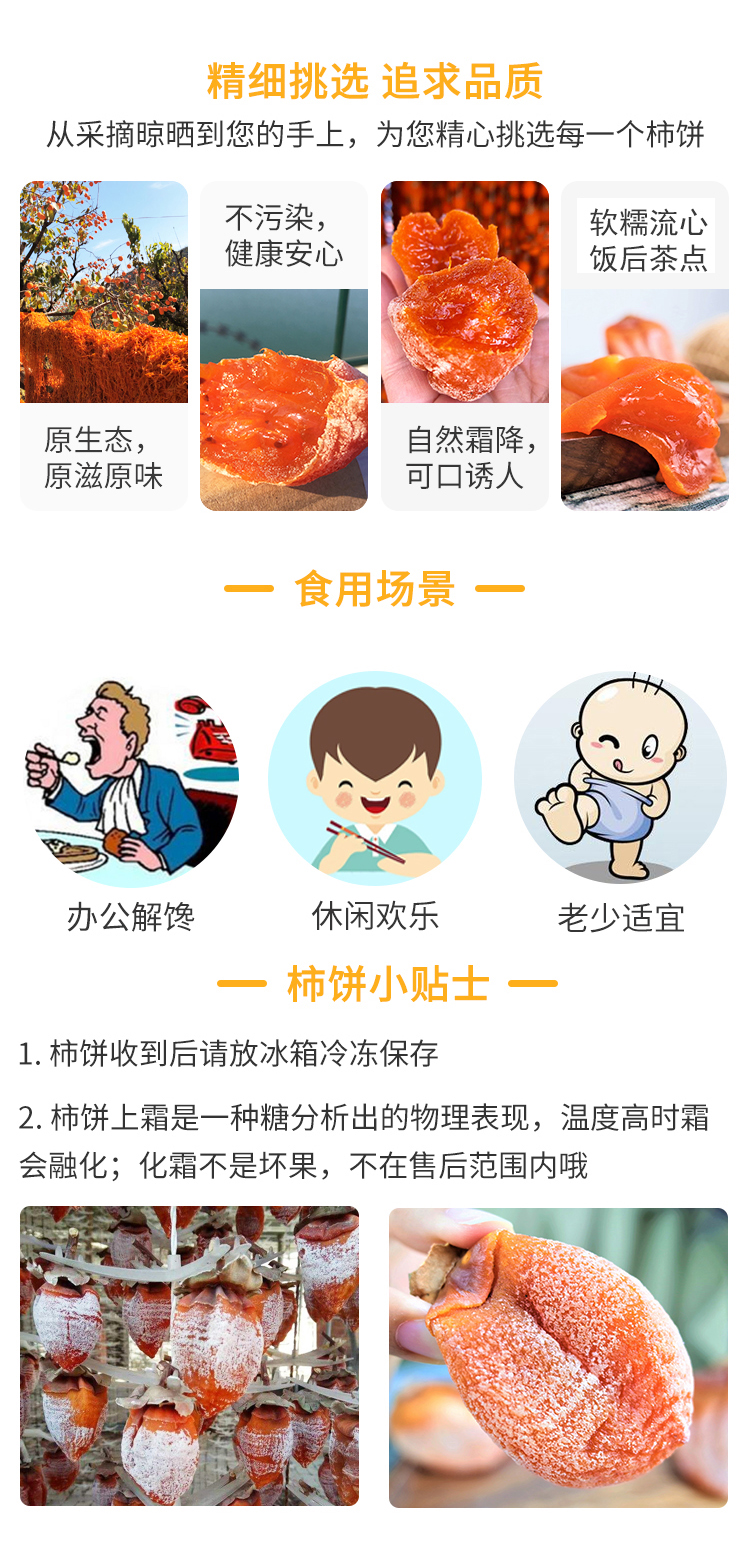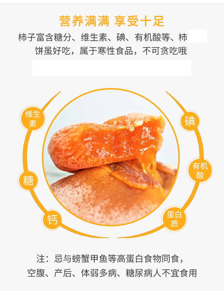 4.柿饼部分内心出现果籽属于正常现象,请小心食用