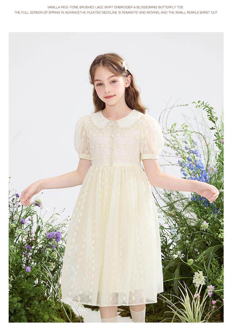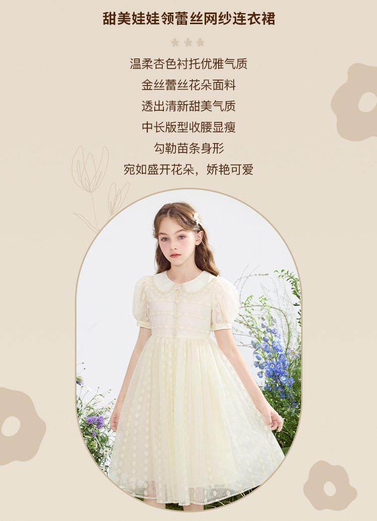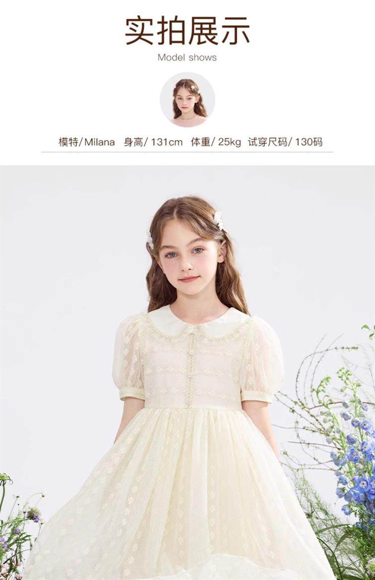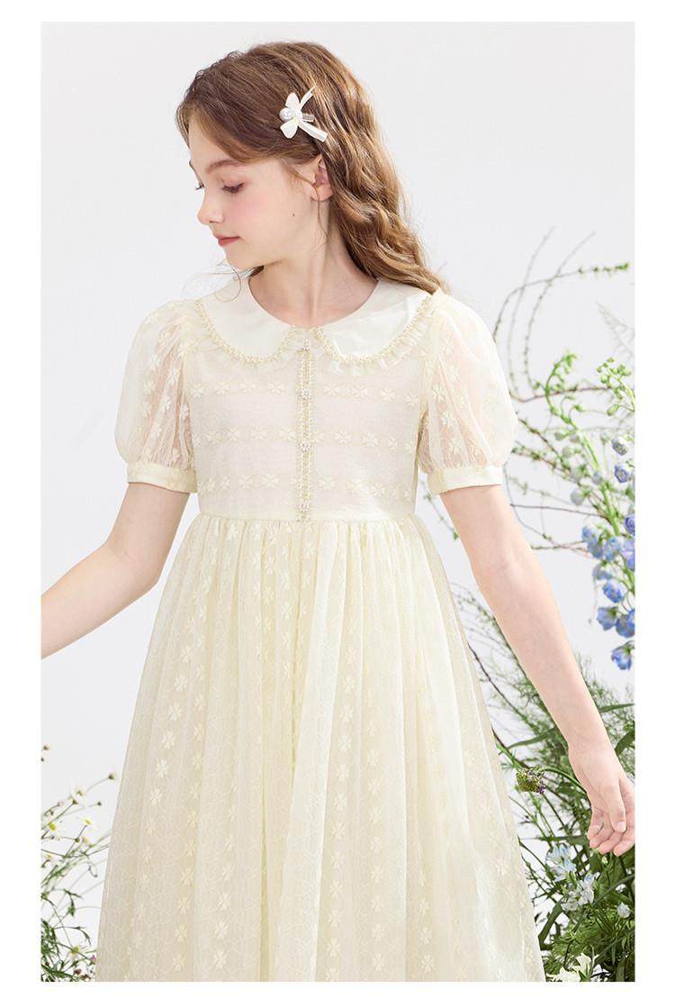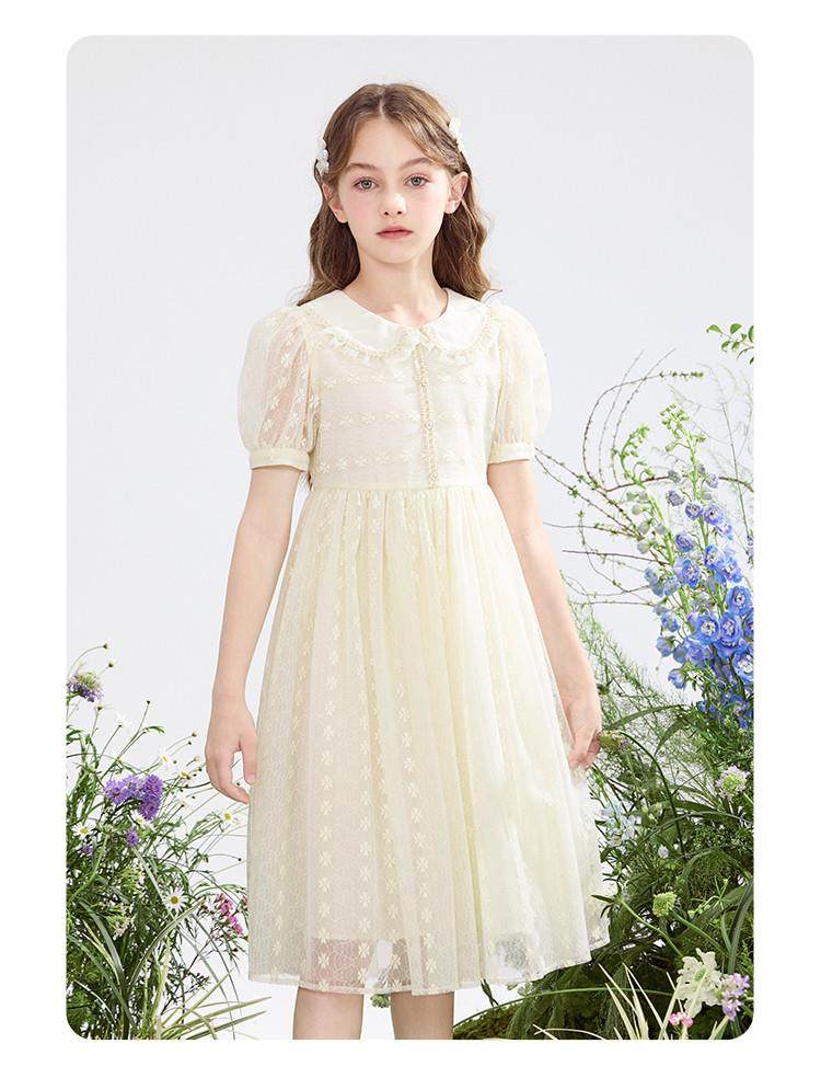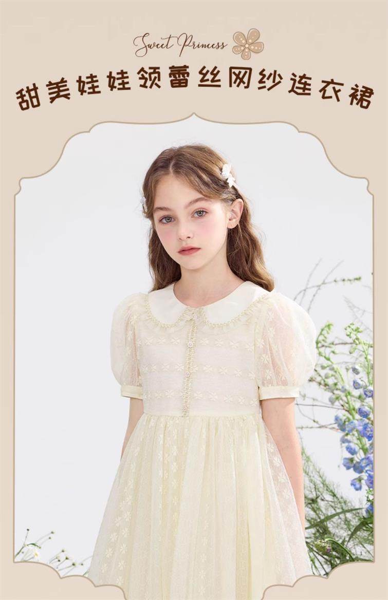 【孩提精灵】1002女童娃娃领连衣裙夏季新款洋气中大童蕾丝裙子公主裙-喜出