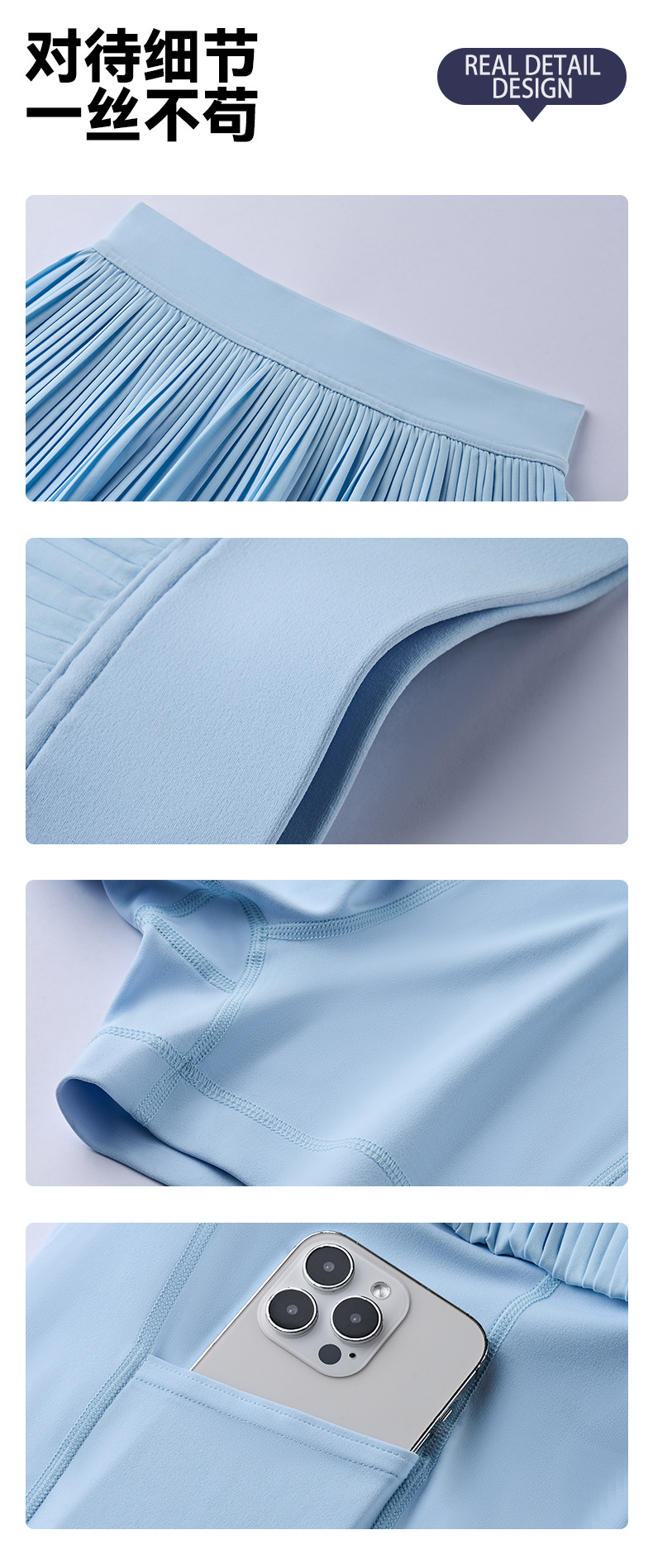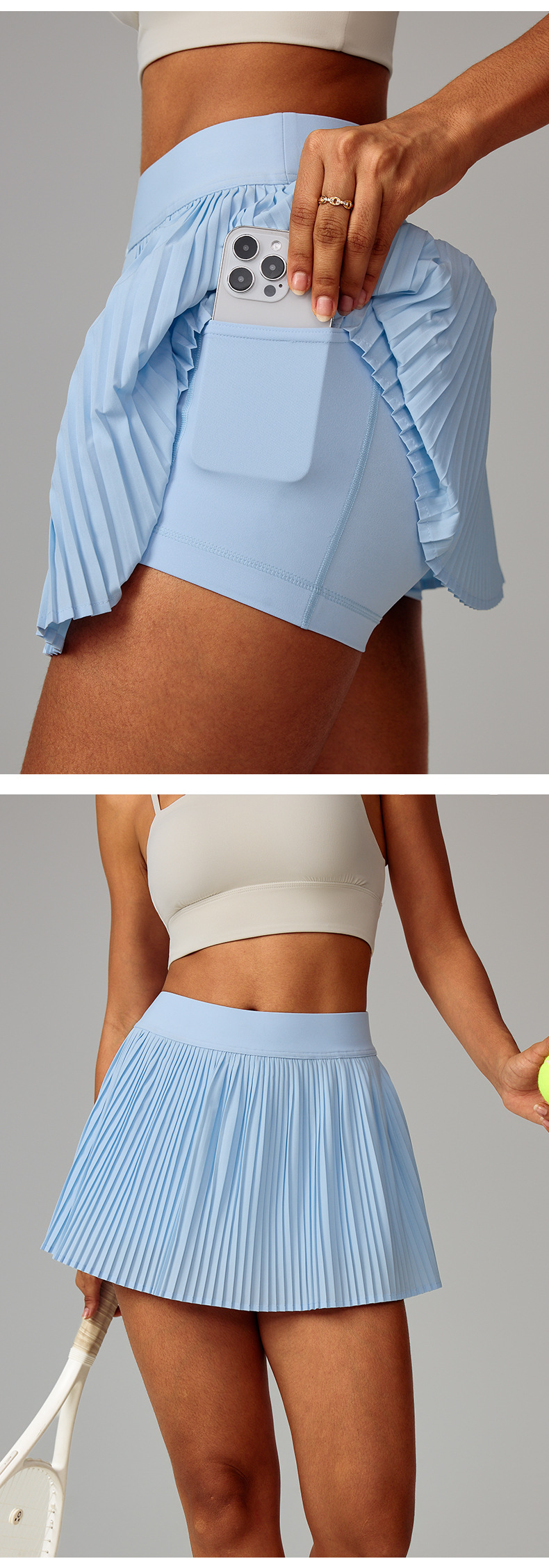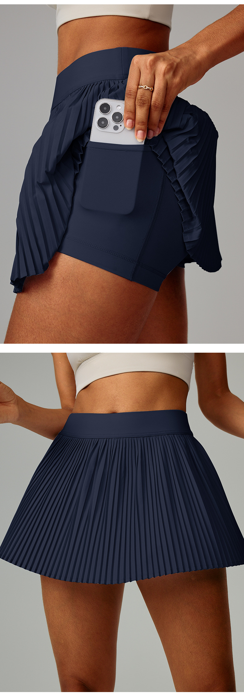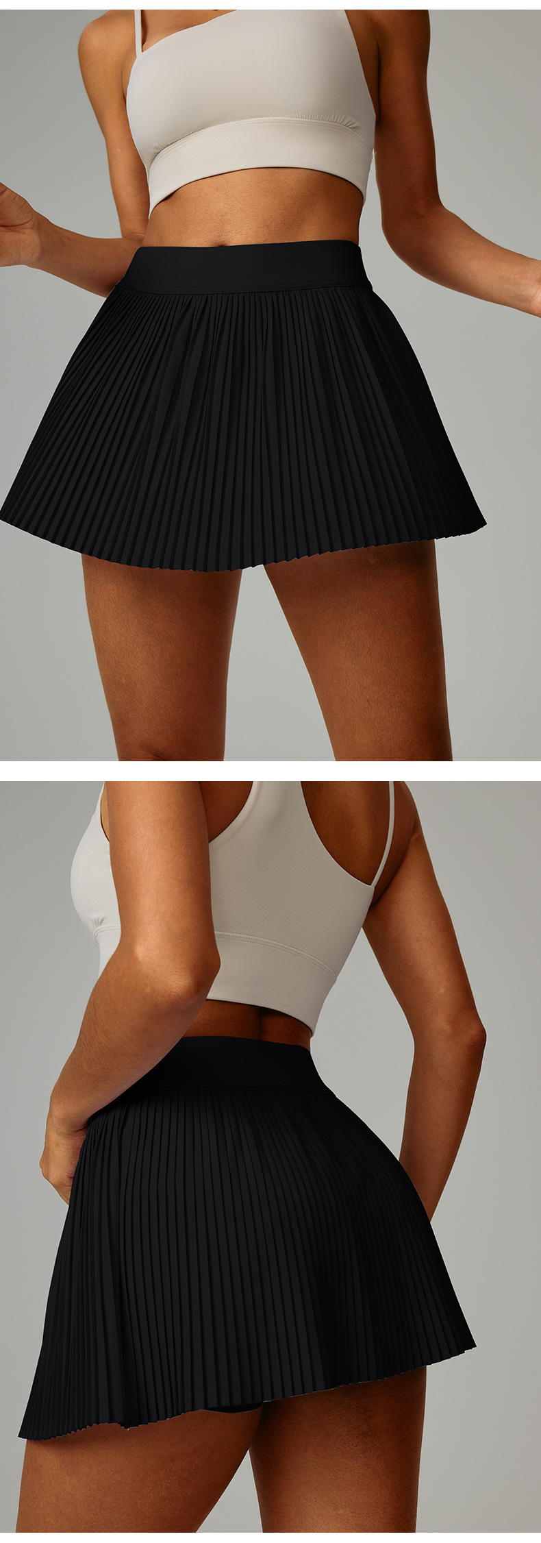 跃牌【轻匀系列】夏季松紧高腰显瘦瑜伽短裙内衬防走光侧口袋网球裙休闲外穿百褶裙QK063