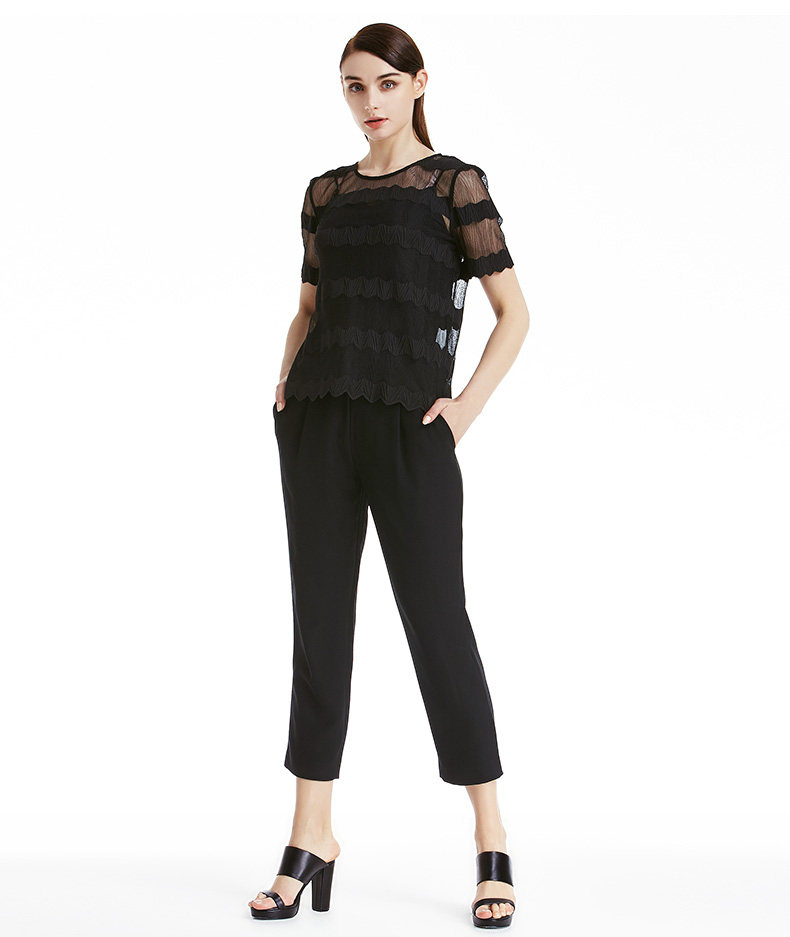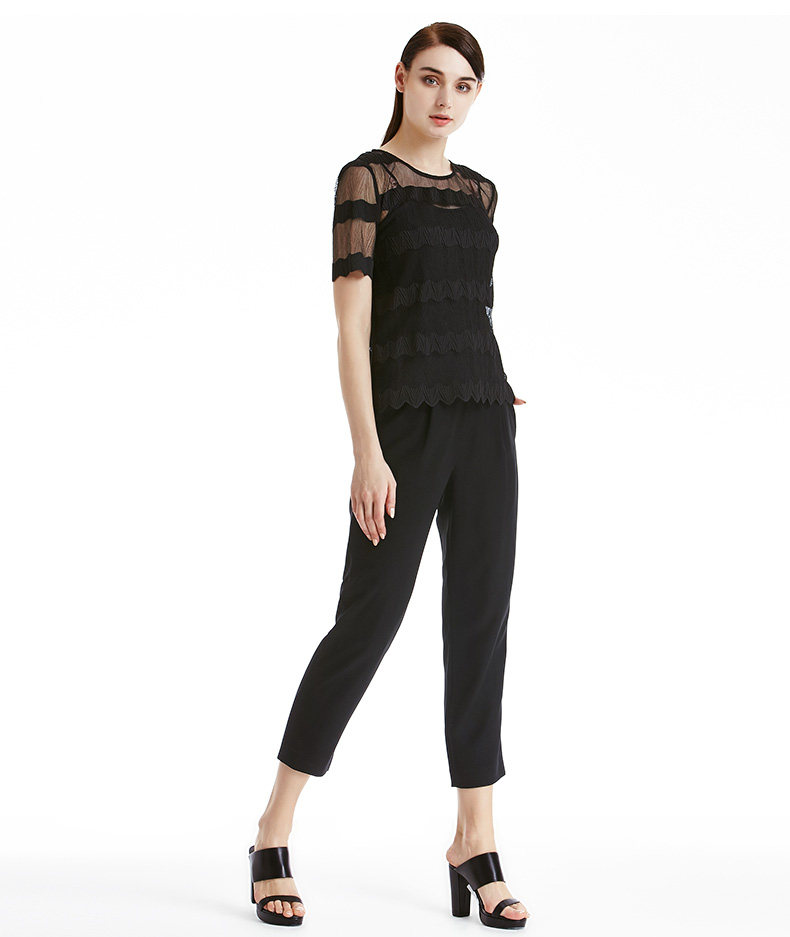 EITIE爱特爱夏季新款简约时尚百搭通勤OL修身长裤九分裤女裤5505213