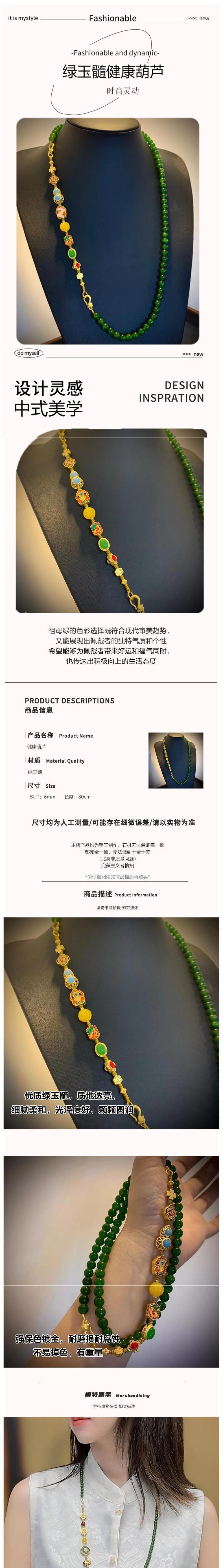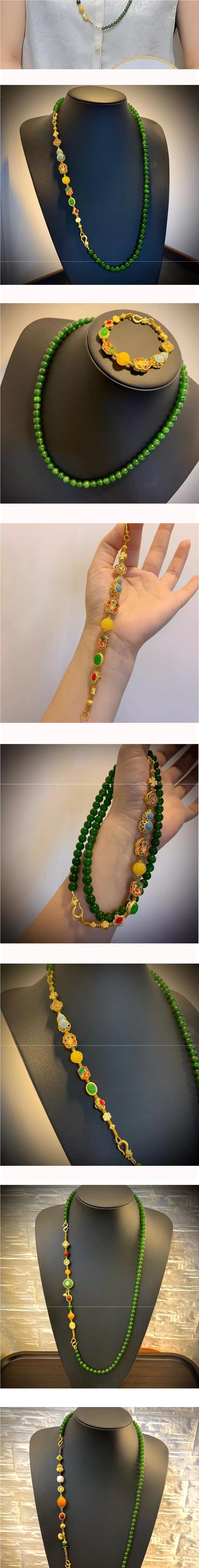丁摩 新中式项链女长款国风旗袍配饰翡翠玉石祖母绿玉髓串珠毛衣链5ZF-1751