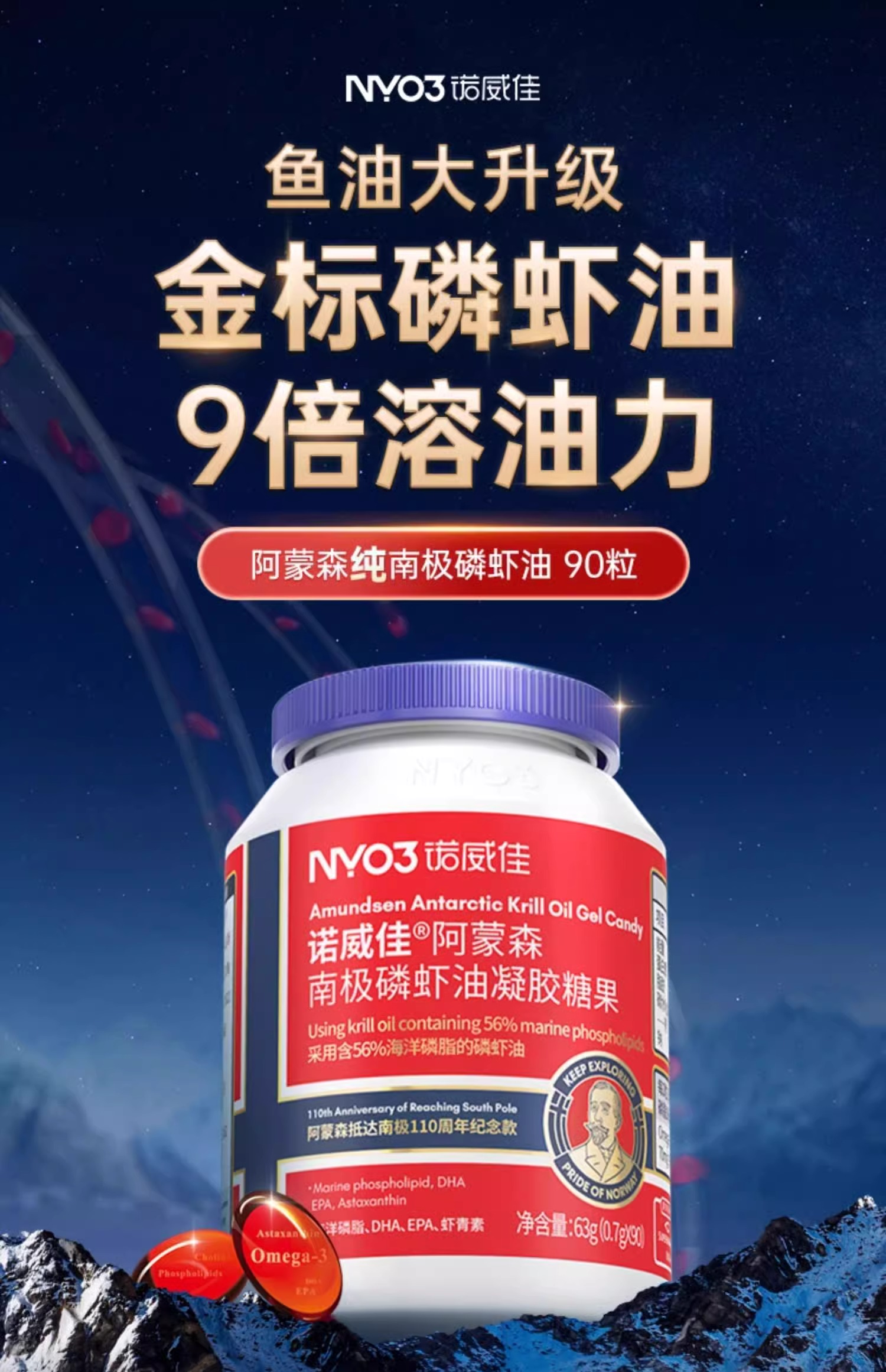 【双瓶礼盒装】NYO3诺威佳 磷虾油金质阿蒙森纪念版90粒/瓶59.6%磷脂omega-3 山姆在售同款DHA EPA(效期27年及以后)