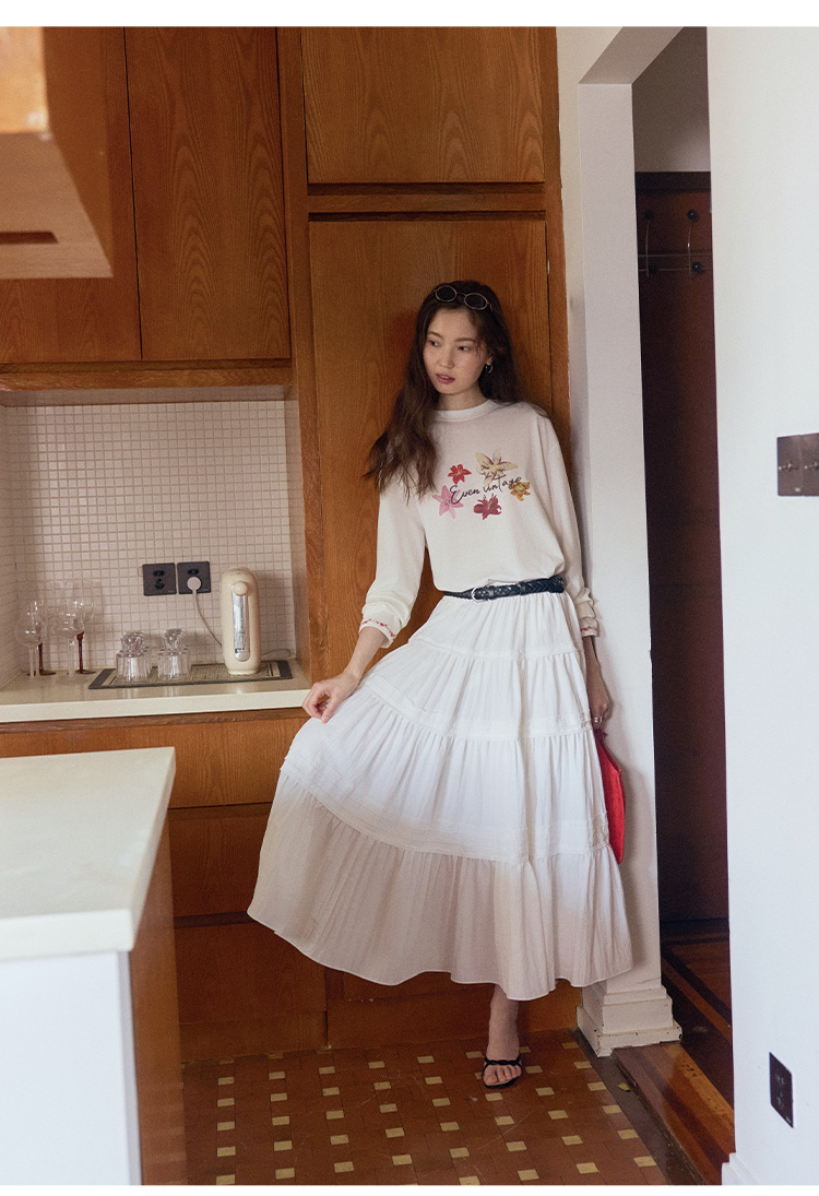 Even Vintage | 竹纤维混纺 浪漫优雅风白色肌理感蓬蓬蛋糕半身裙