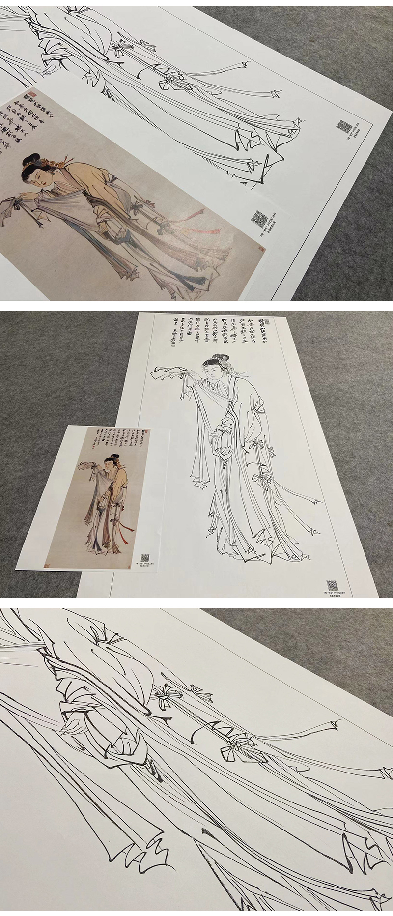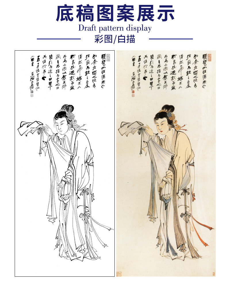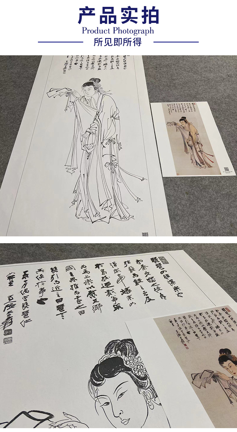 张大千竖幅工笔传统人物白描底稿-琵琶仕女-QD51