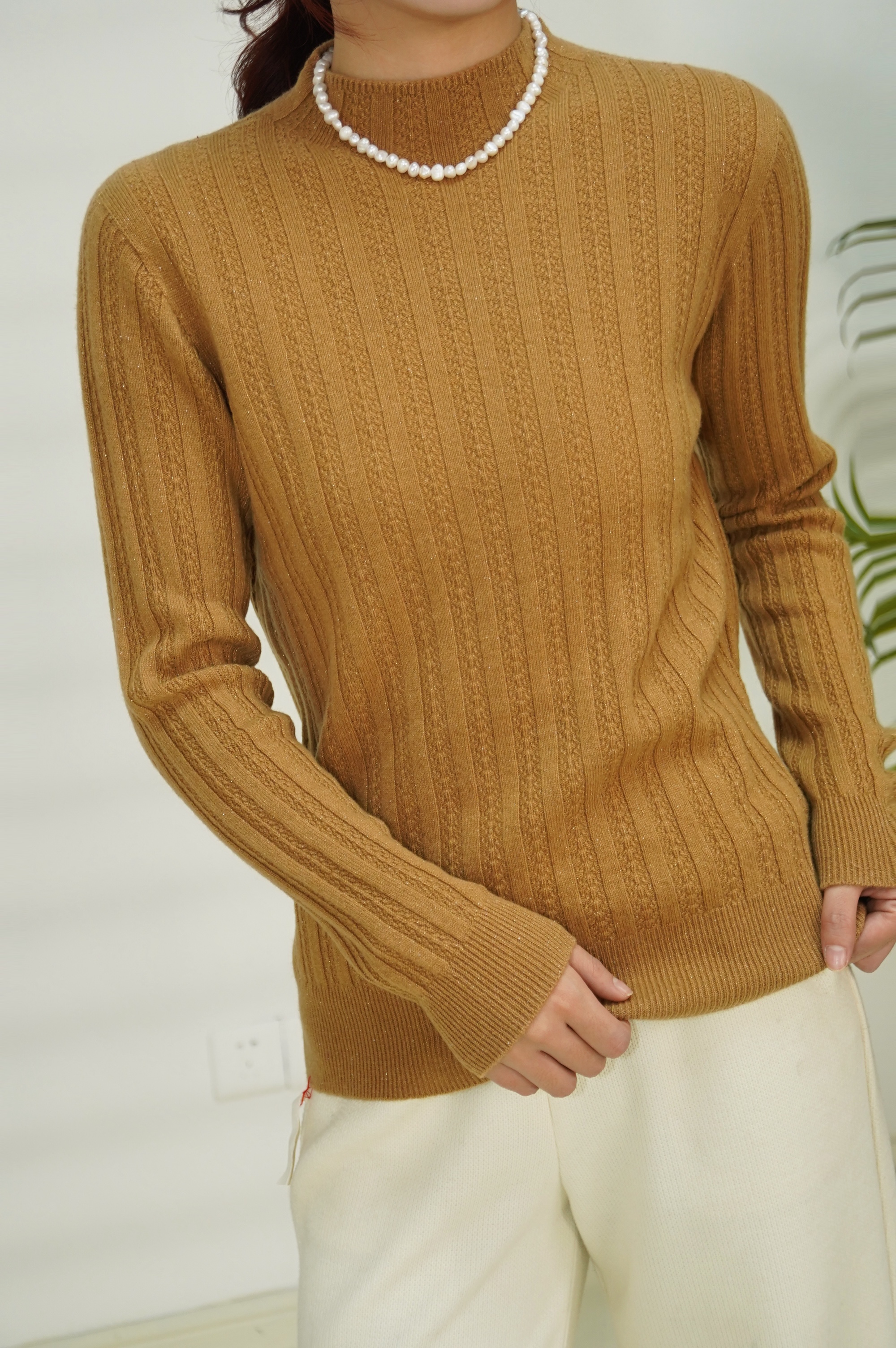 米色L1 臣禾【金葱麦穗毛衫】 26支全毛半高领针织衫JZ244090144