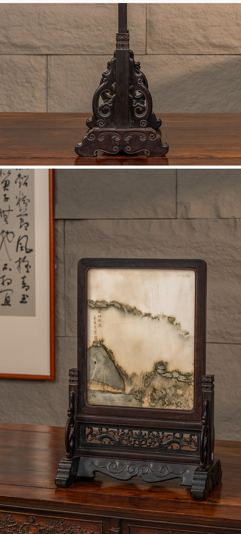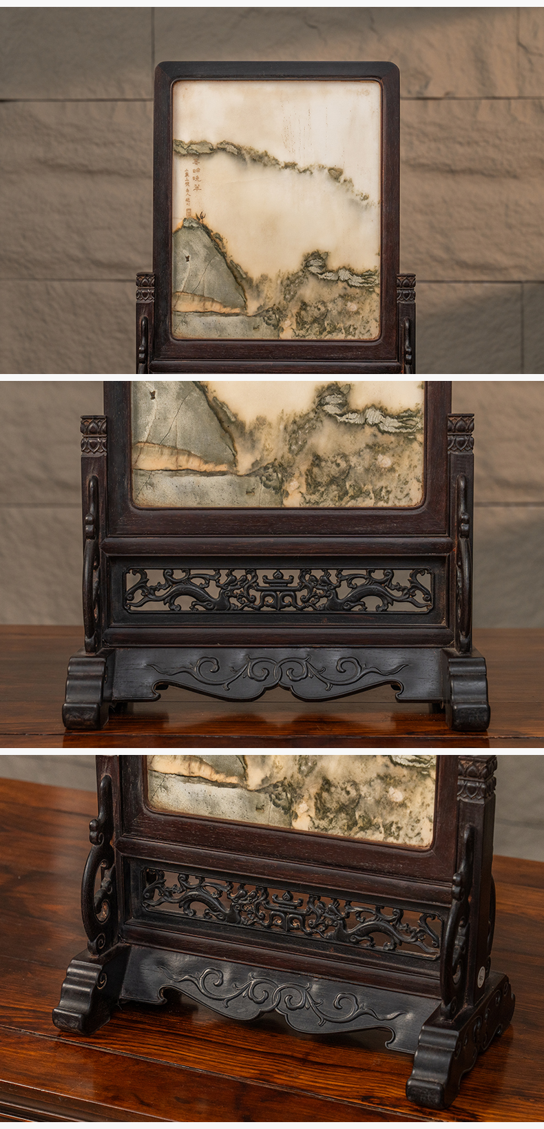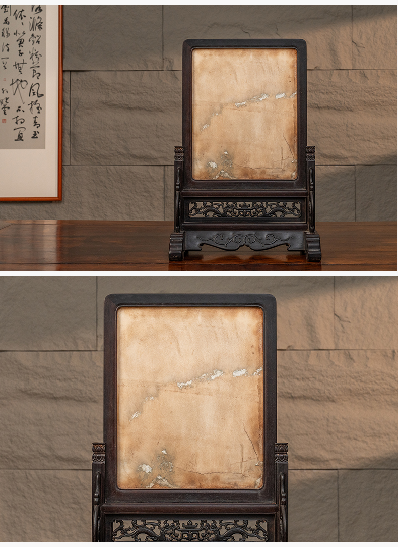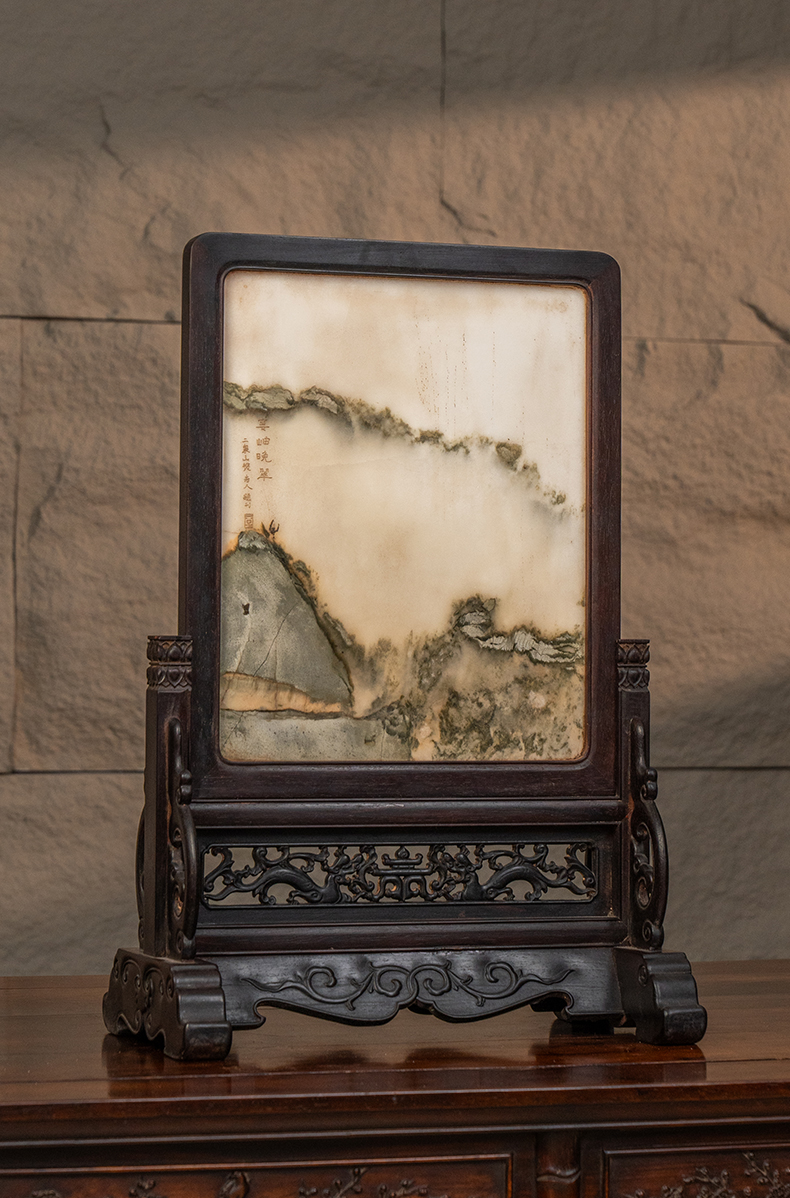 清 红木镶云石插屏