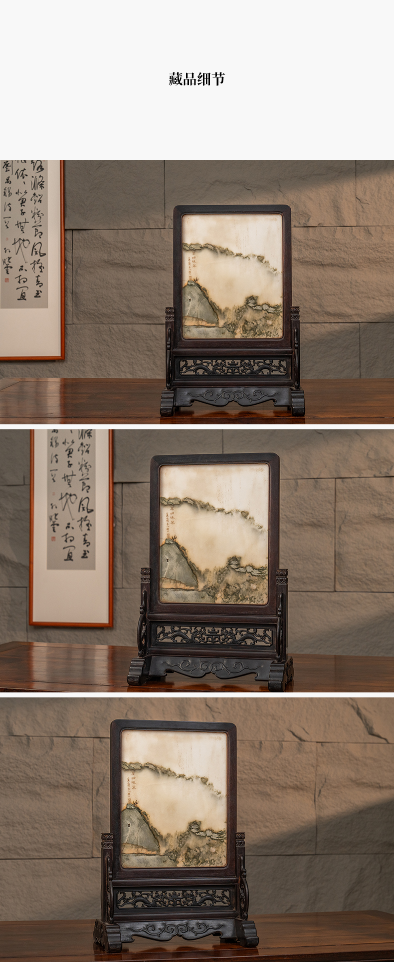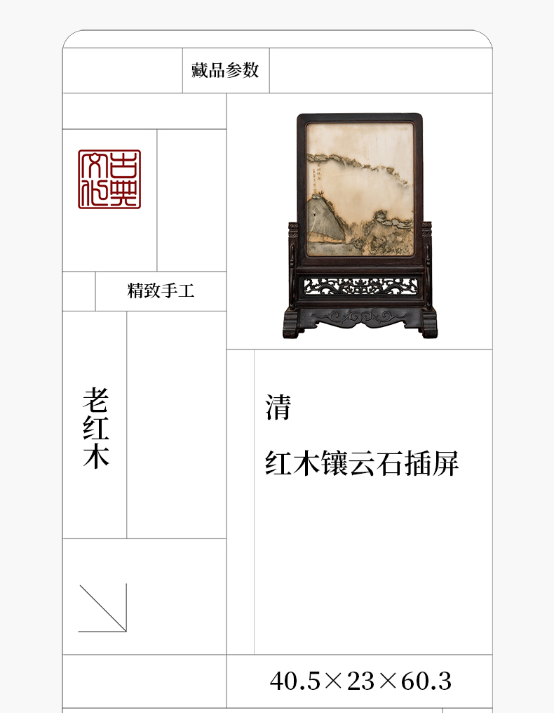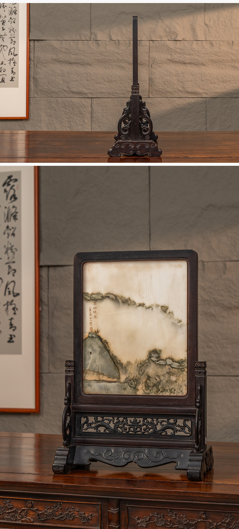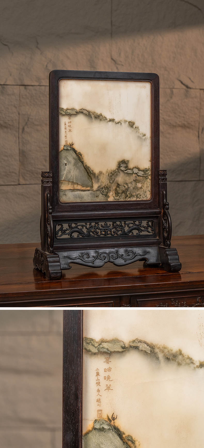 清 红木镶云石插屏