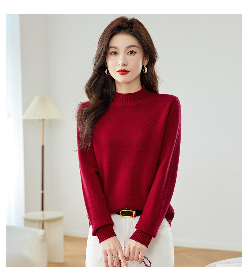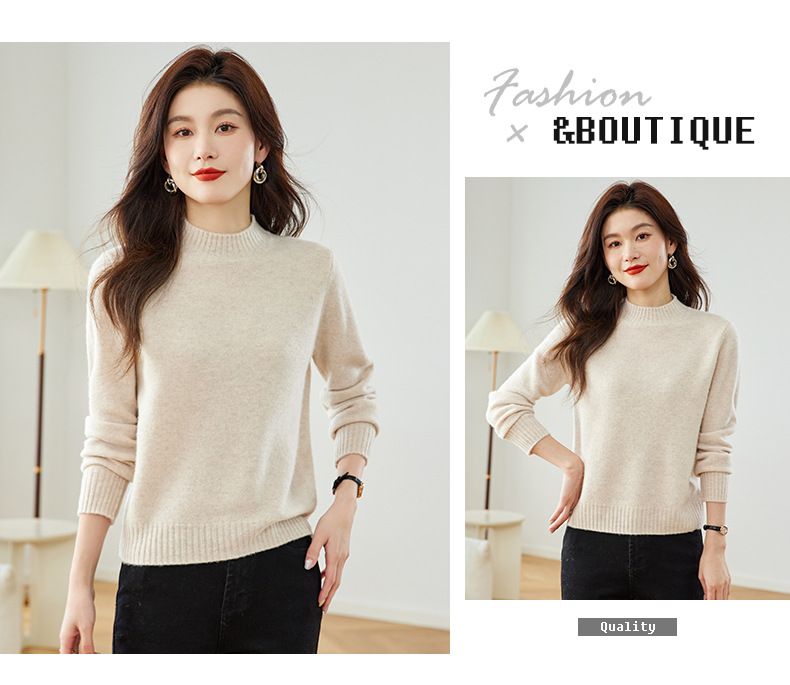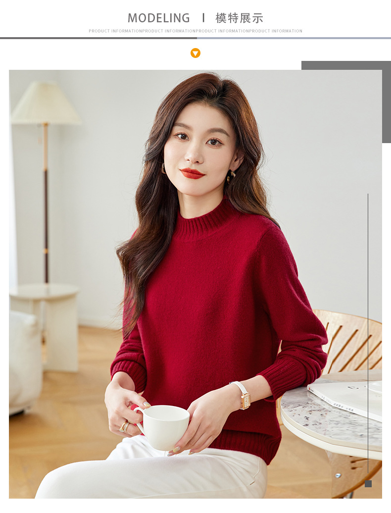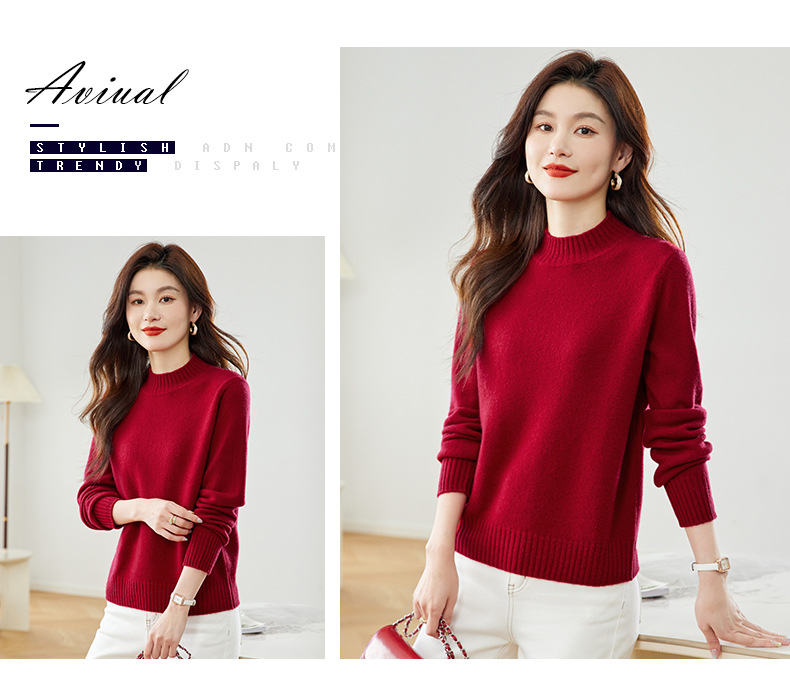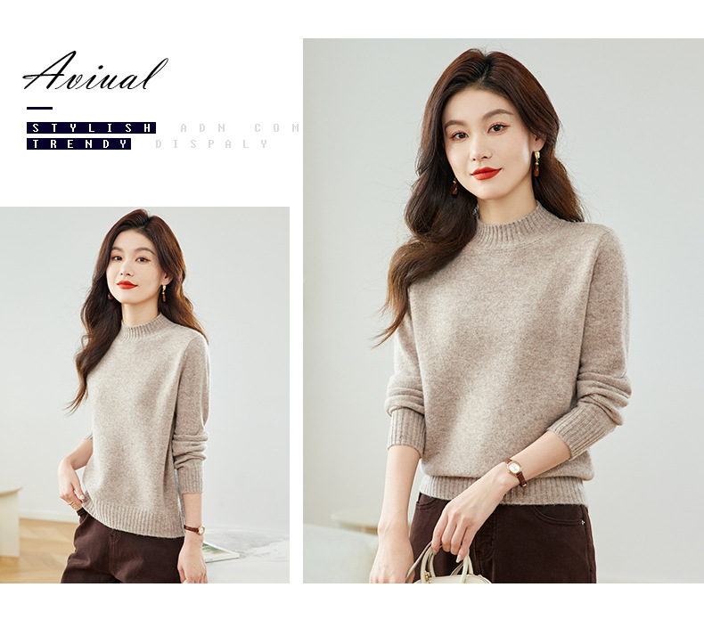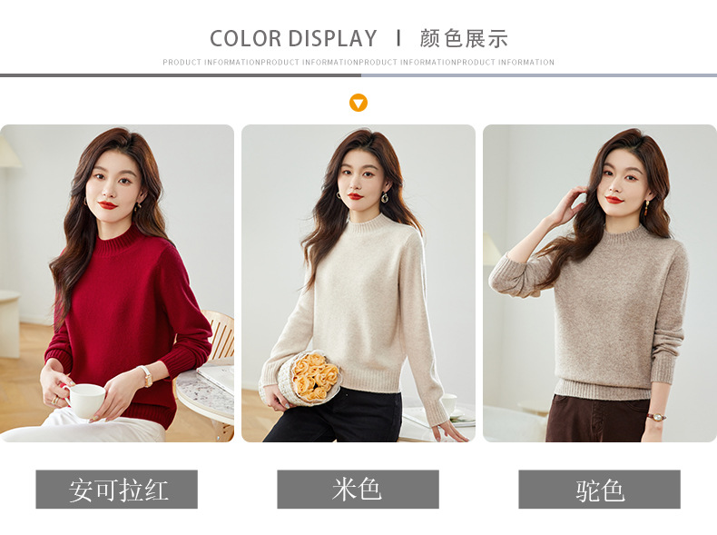 CC-MY-1134半高领针织打底衫女士100纯羊毛衫毛衣秋冬季2024年新款厚款上衣