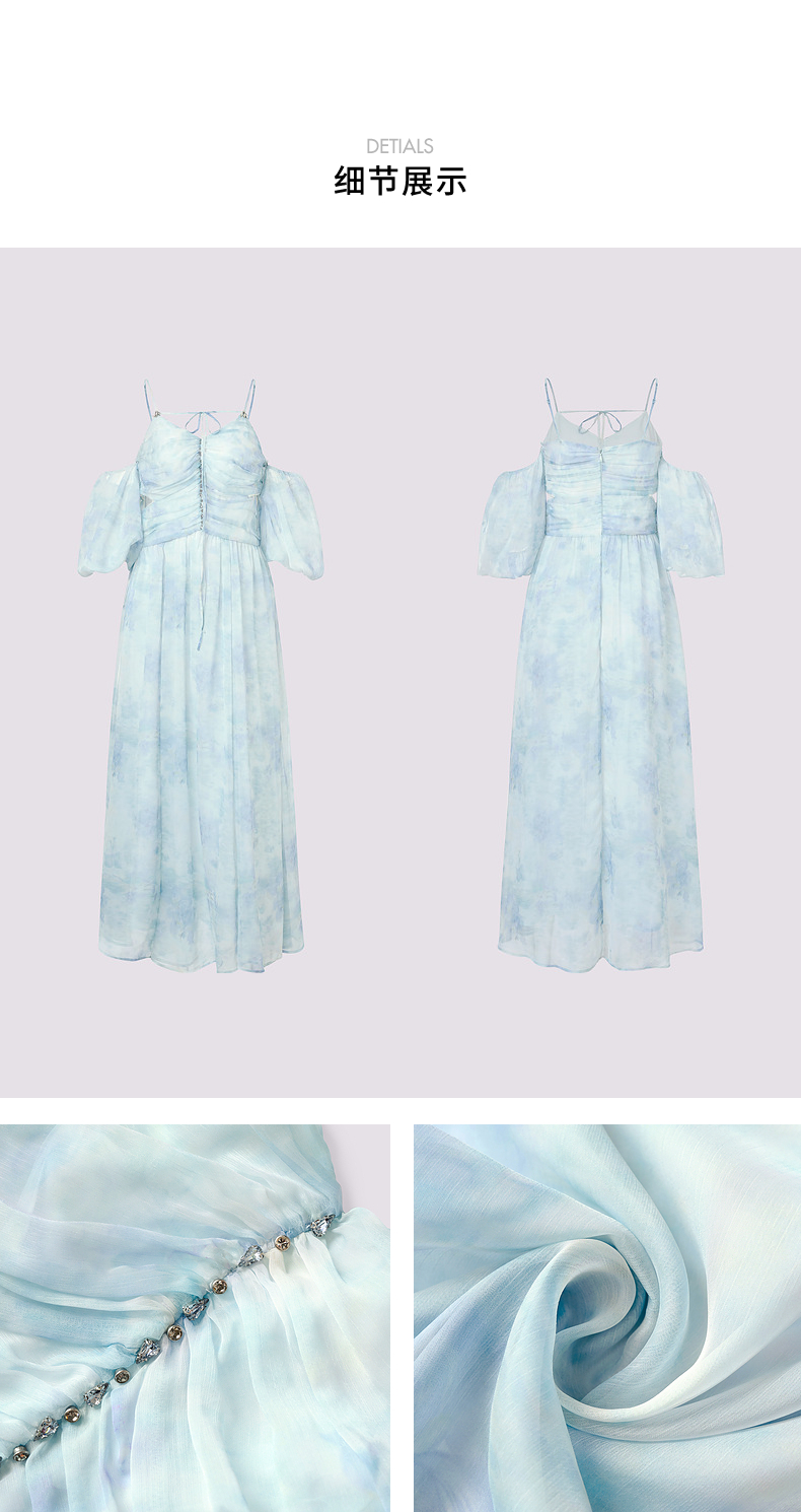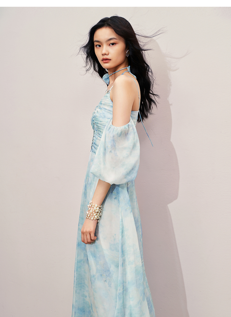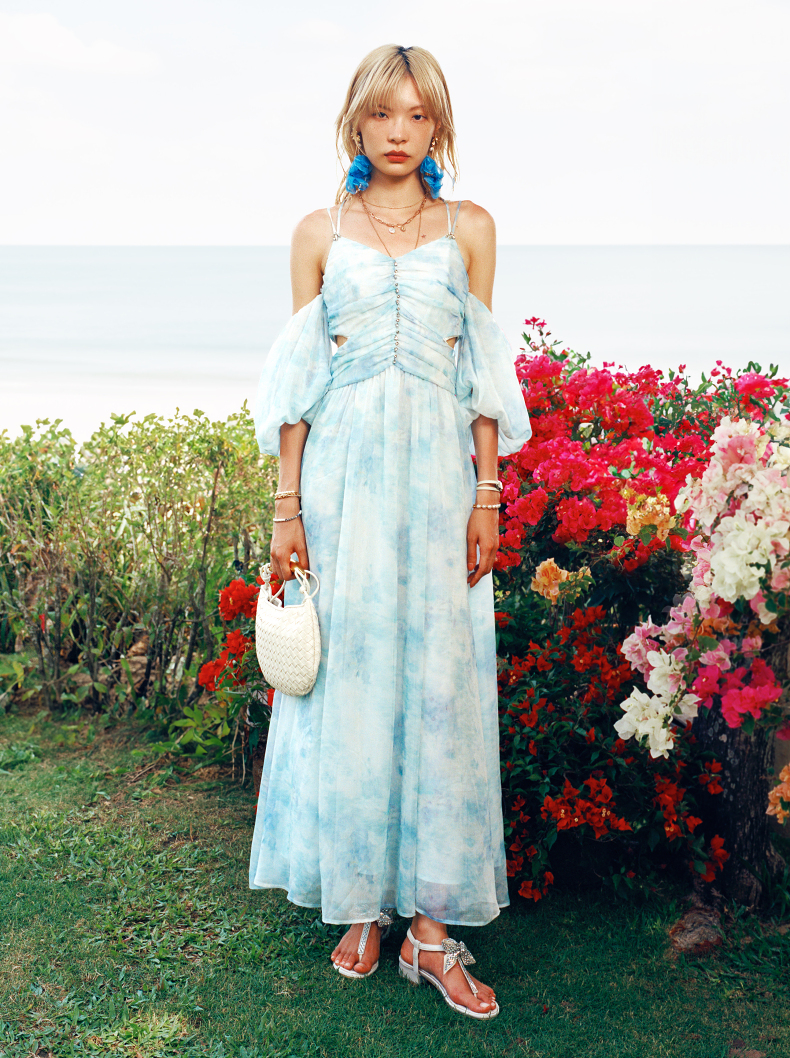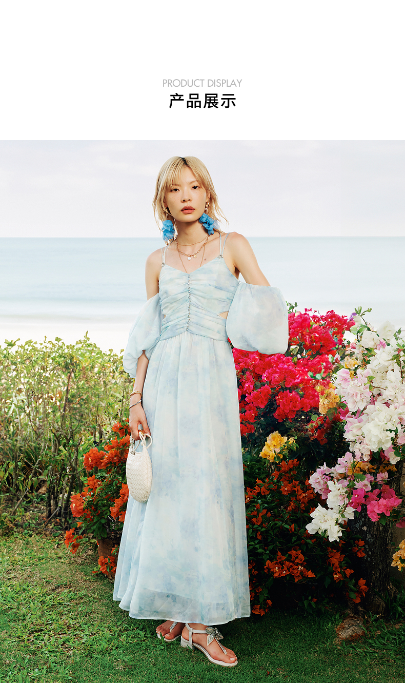 【商场同款】MAXRIENY浪漫度假连衣裙海边裙子钉钻晕染印花长裙(货号:MS85DR043)
