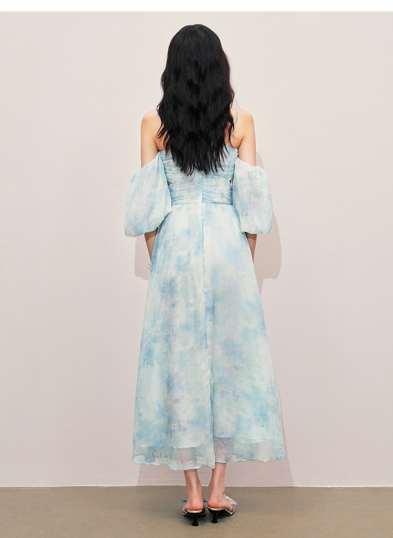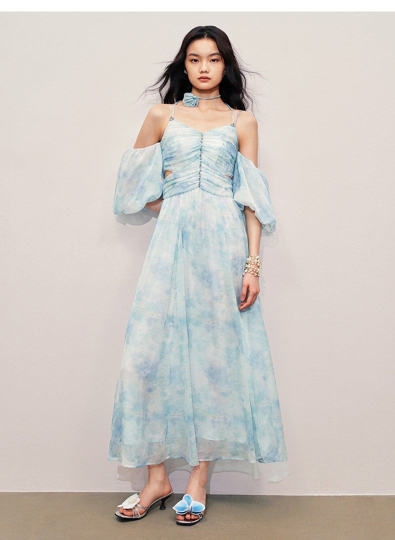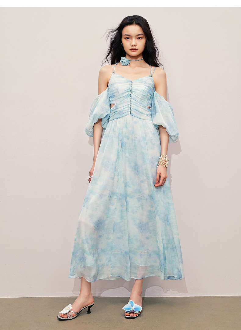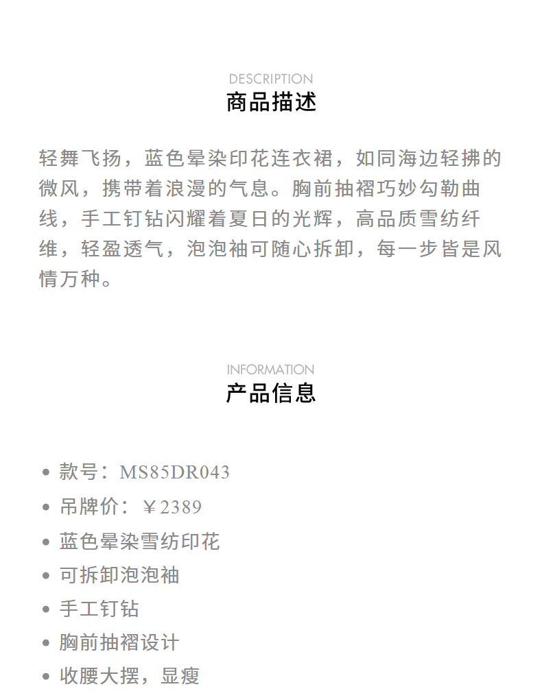 【商场同款】MAXRIENY浪漫度假连衣裙海边裙子钉钻晕染印花长裙(货号:MS85DR043)