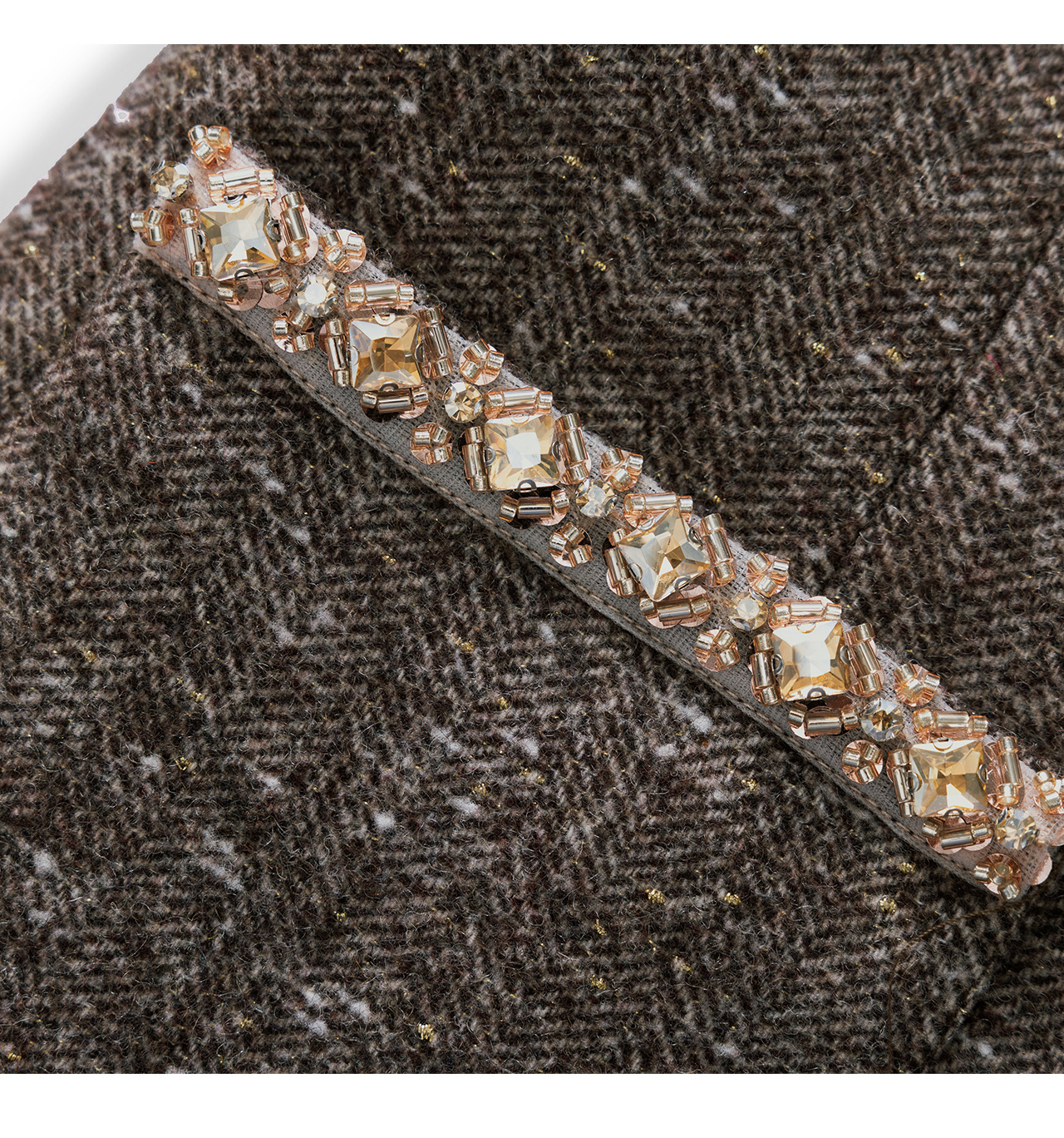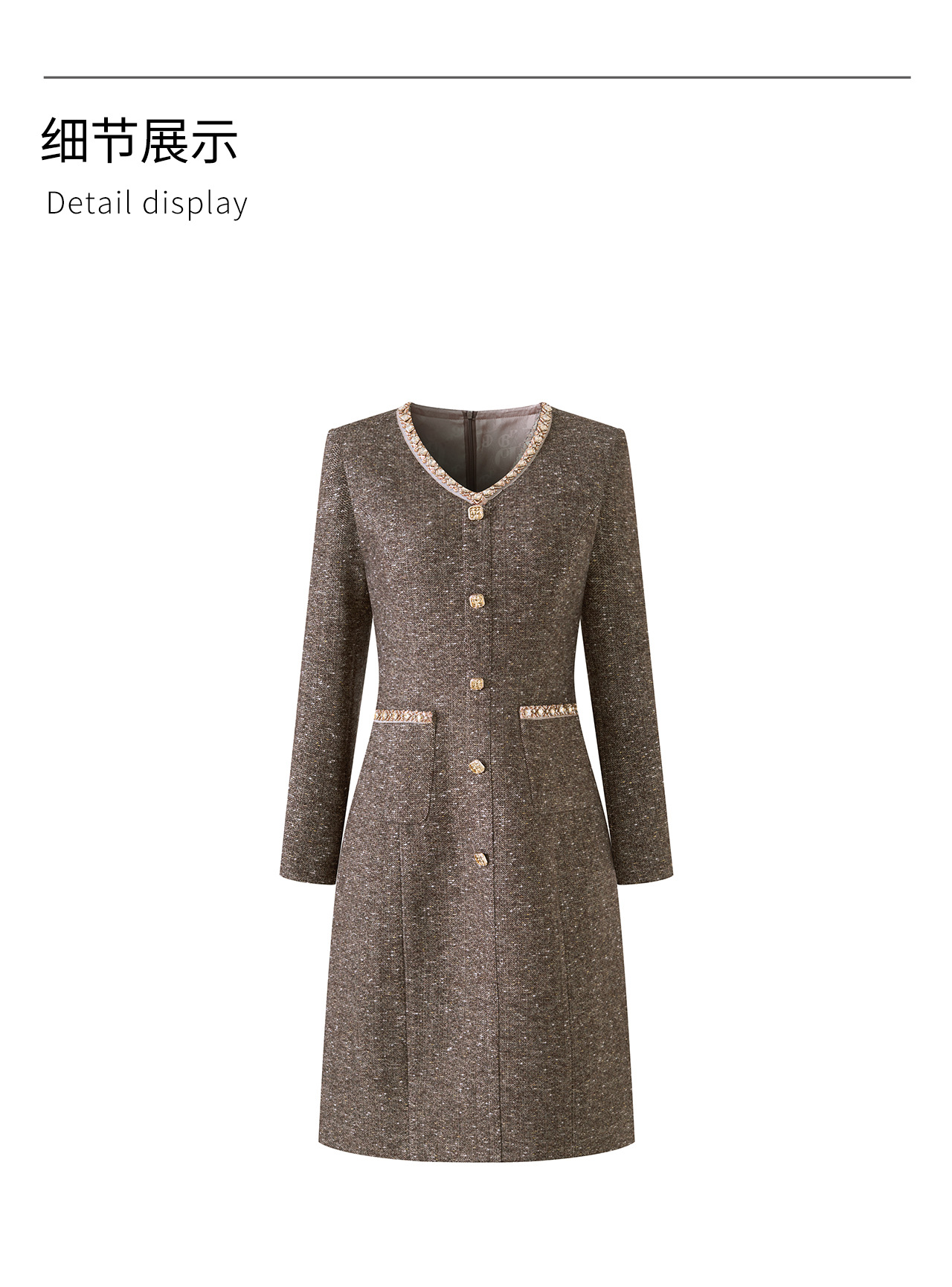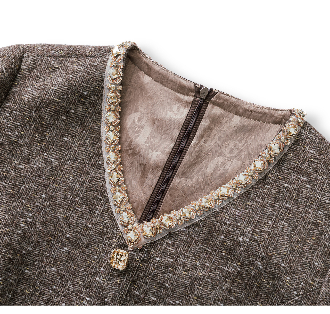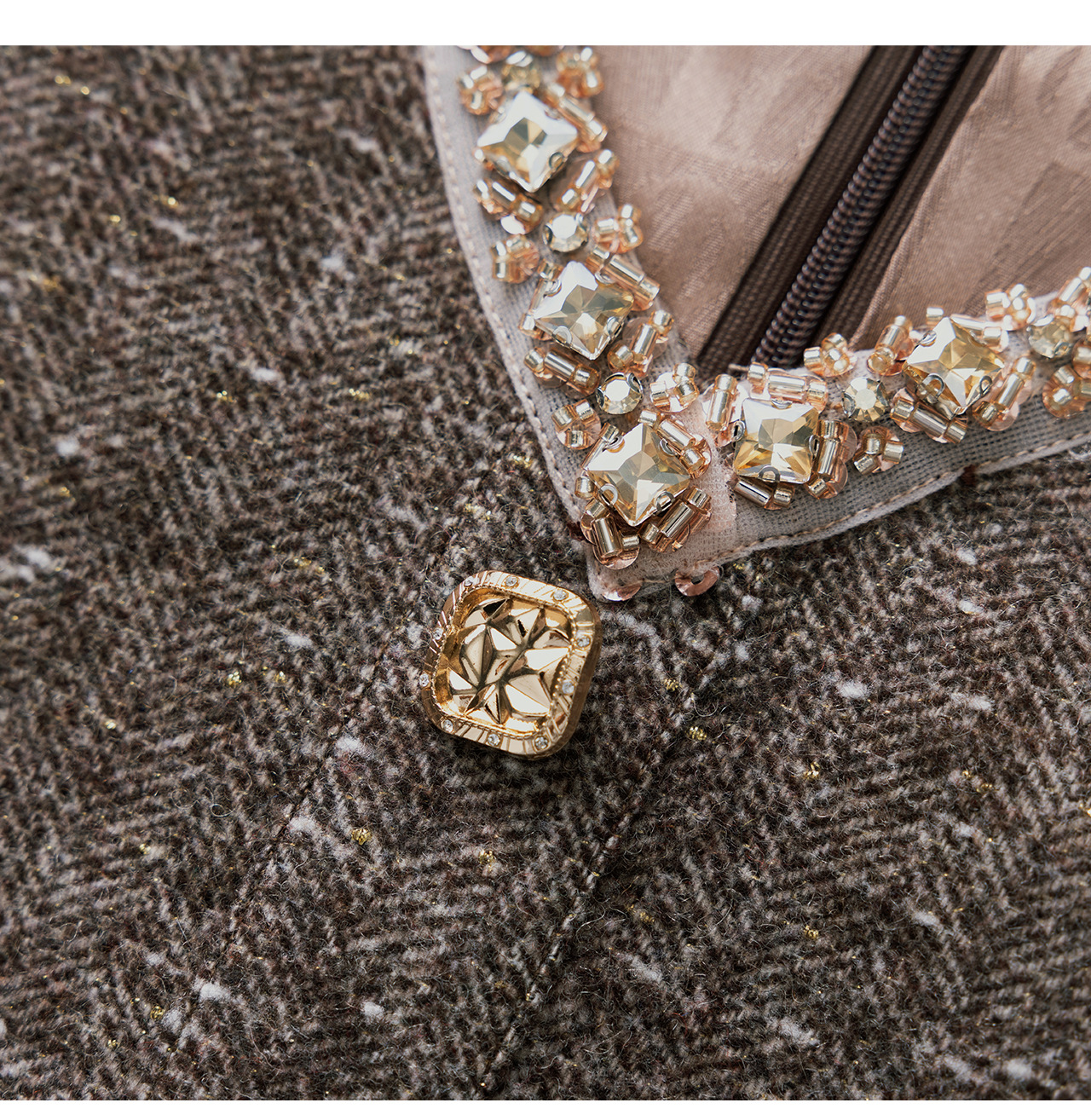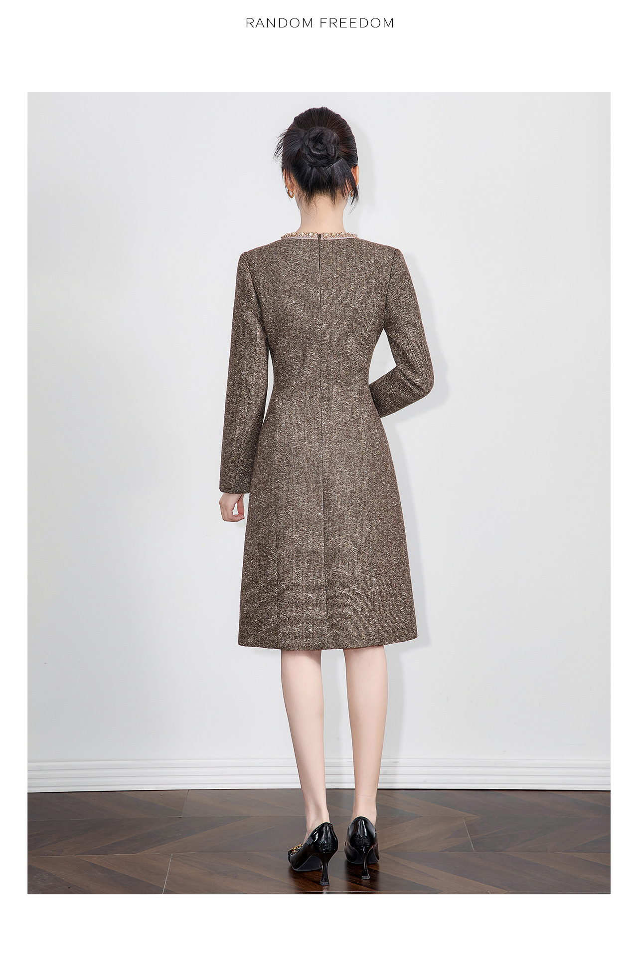 「高货wl」全新升级【铂金会员358/天猫479/差价121】(05912)洛诗琳2025秋冬气质小香风金线人字纹羊毛呢镶钻领连衣裙