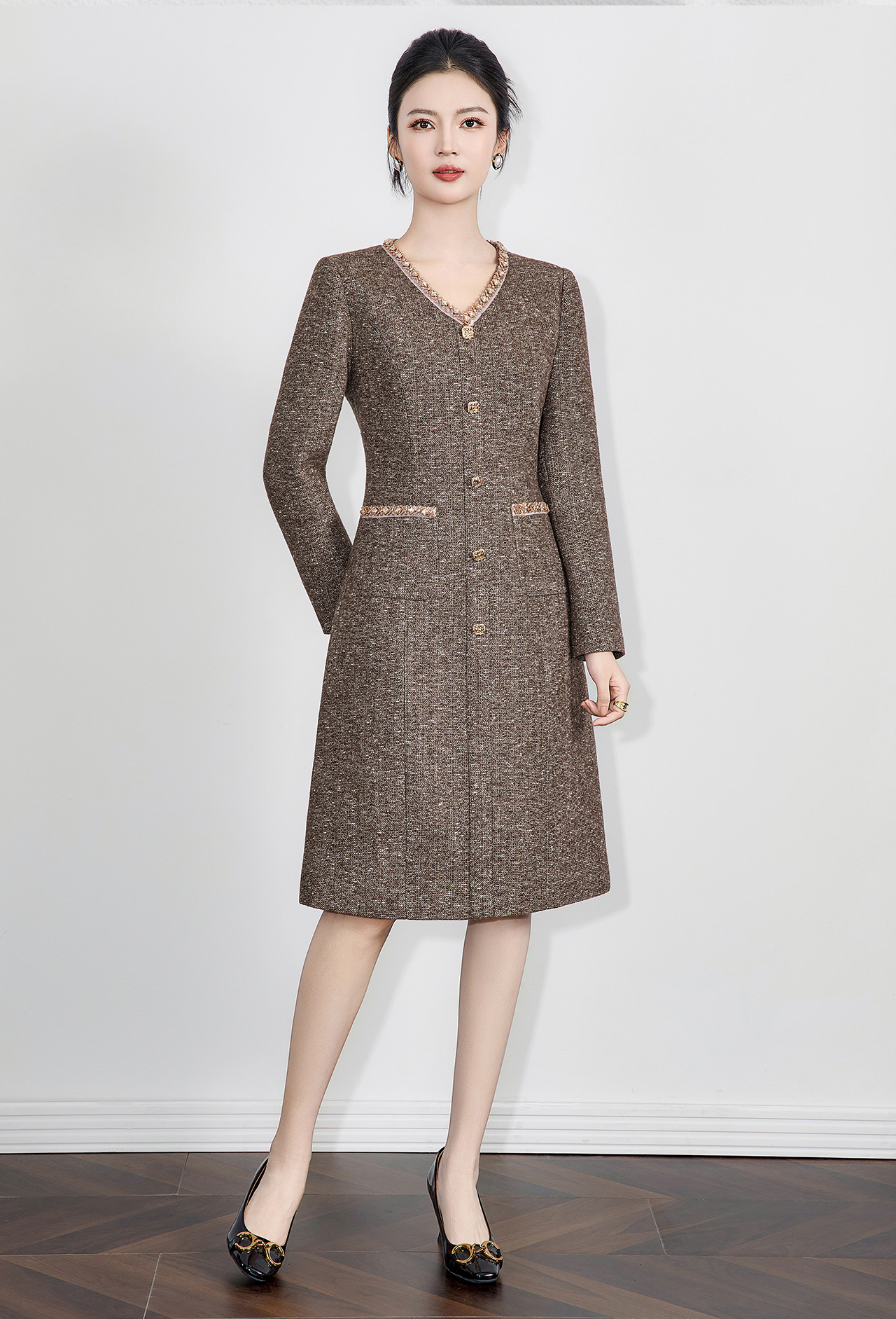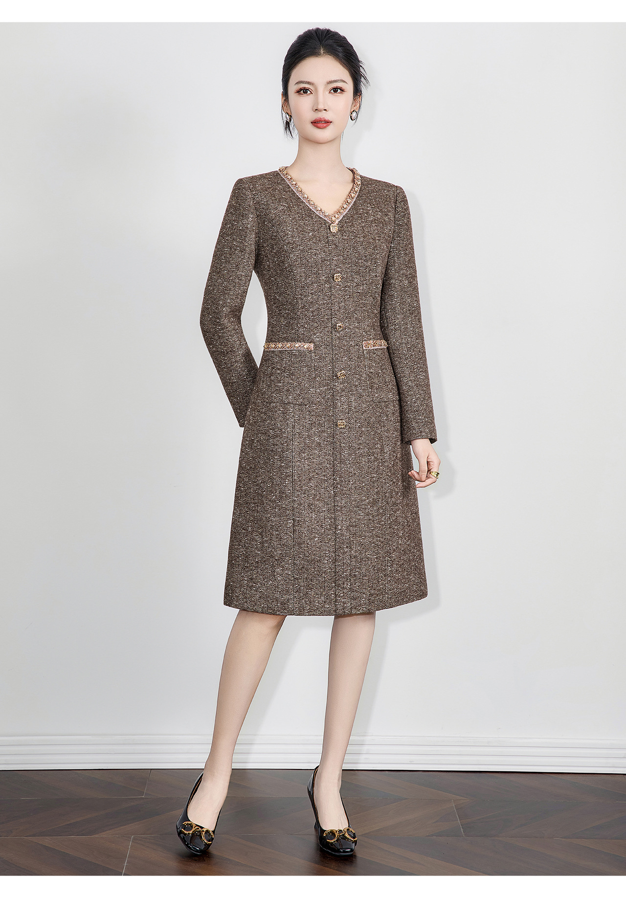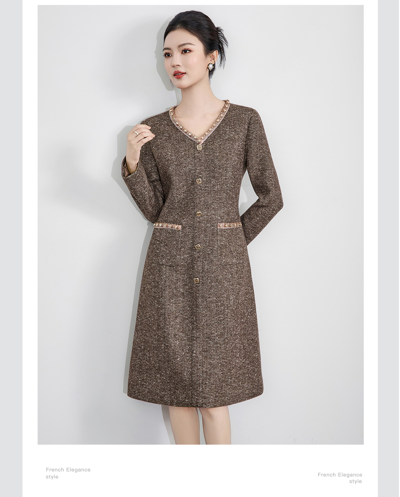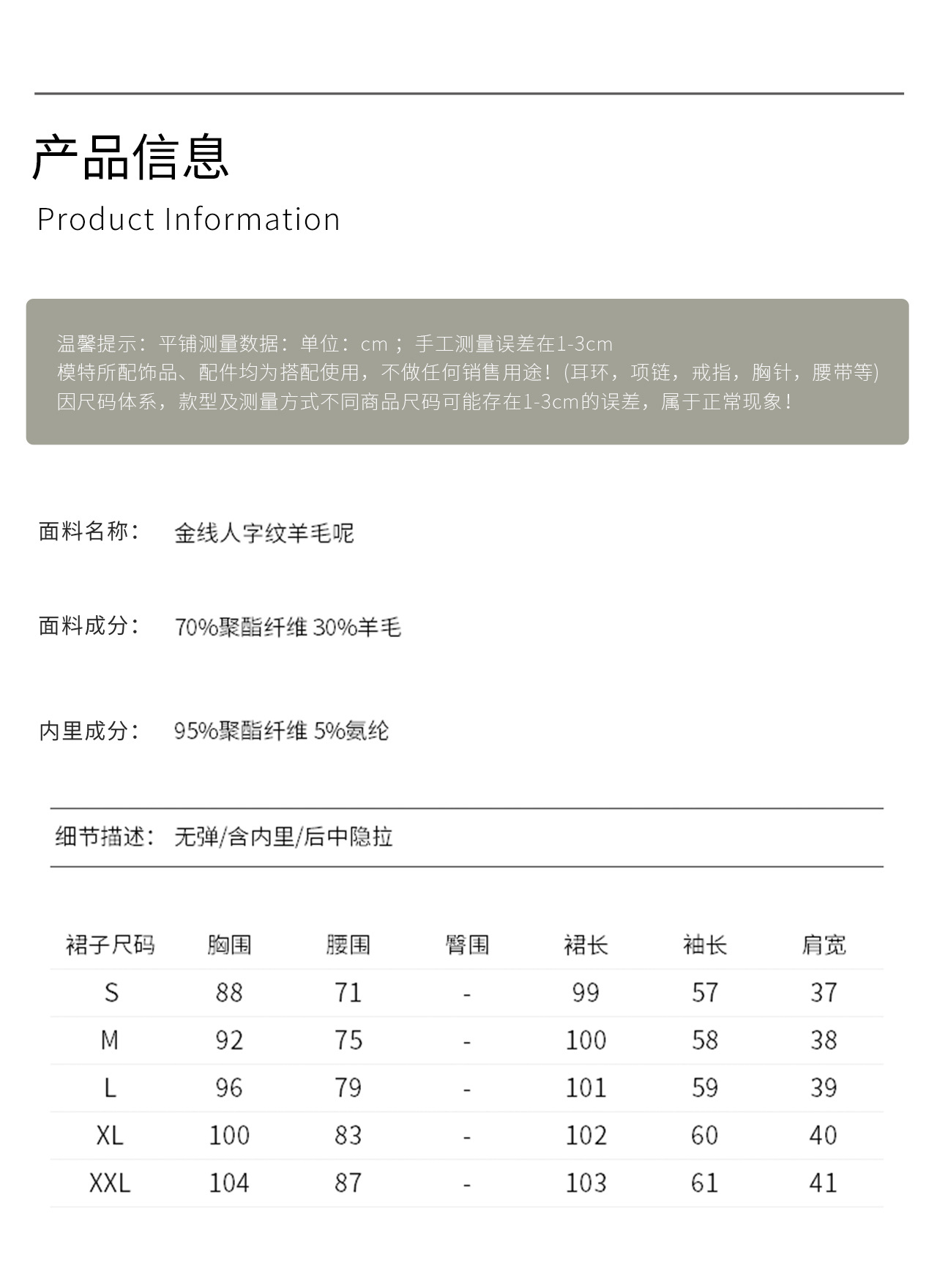 「高货wl」全新升级【铂金会员358/天猫479/差价121】(05912)洛诗琳2025秋冬气质小香风金线人字纹羊毛呢镶钻领连衣裙