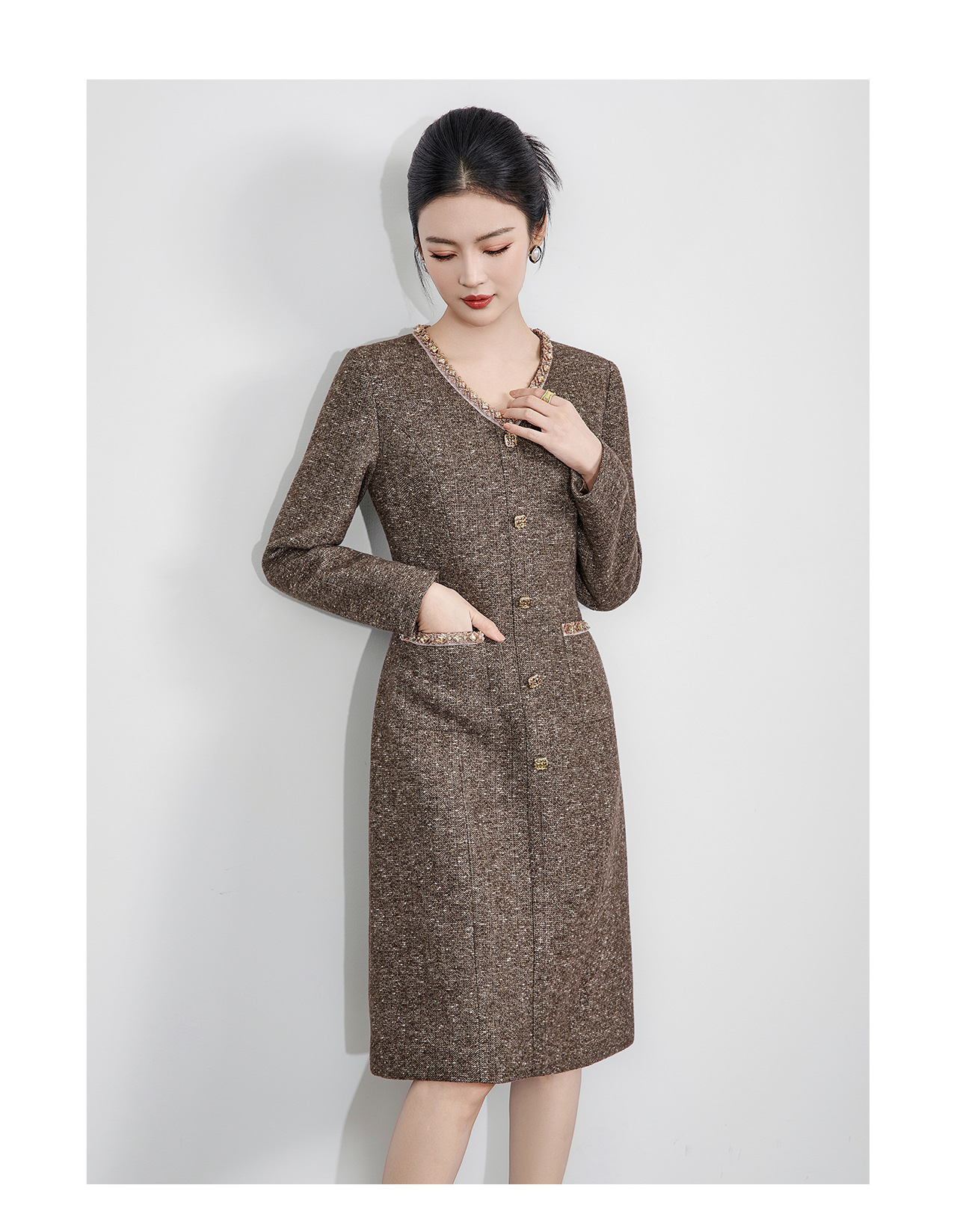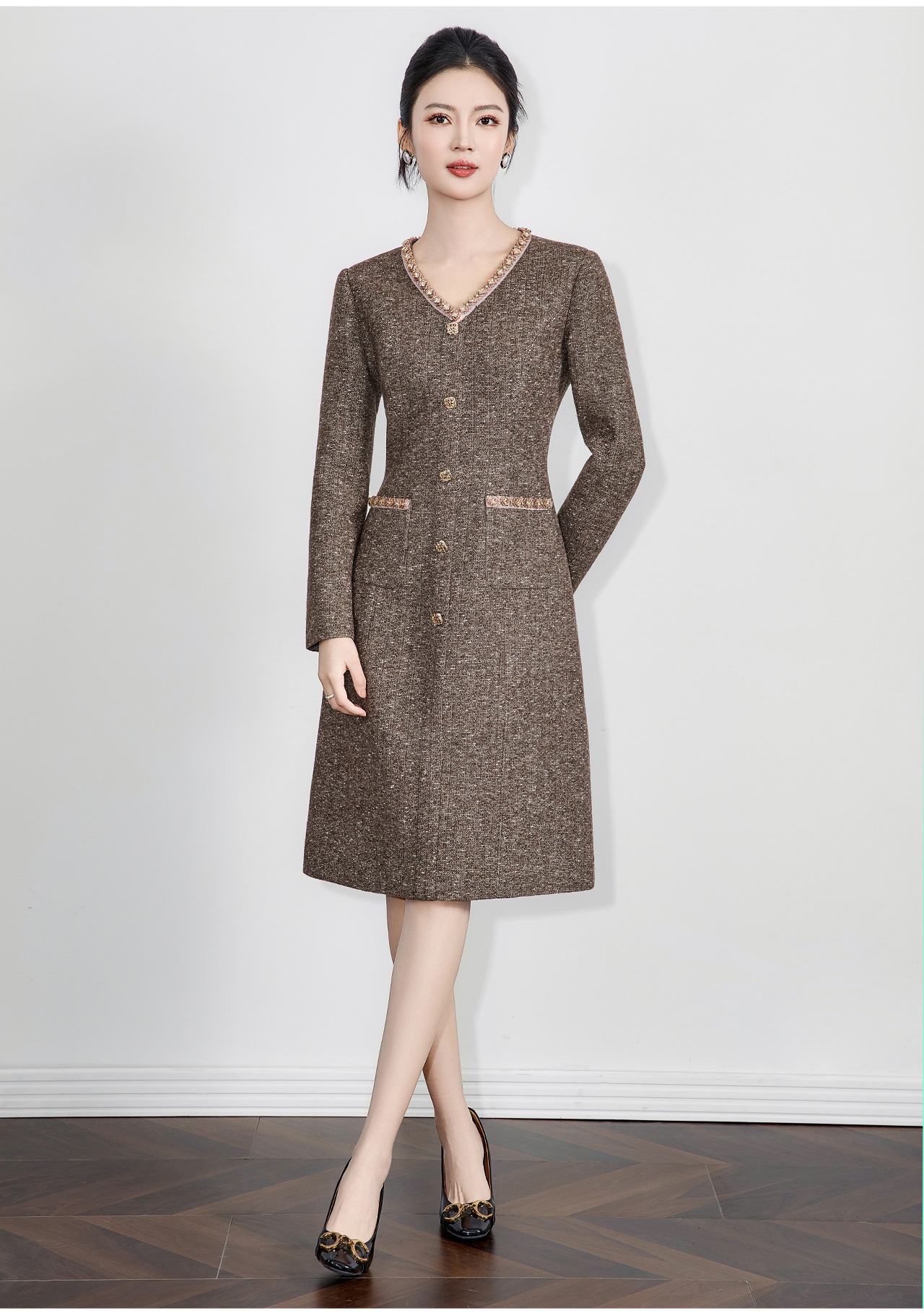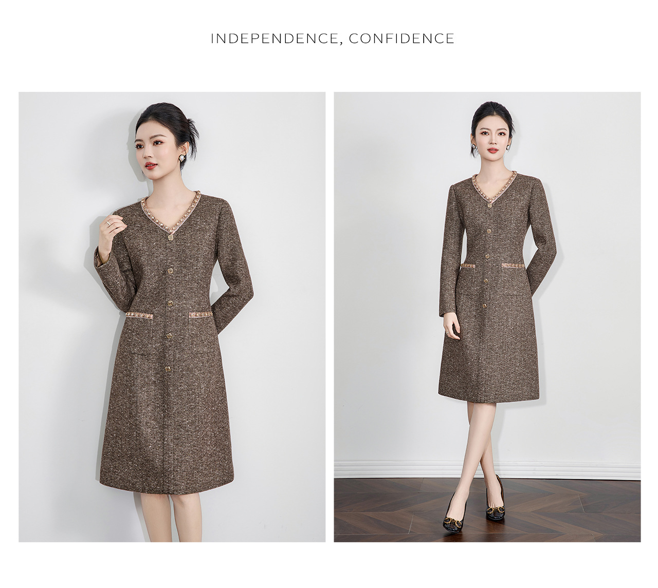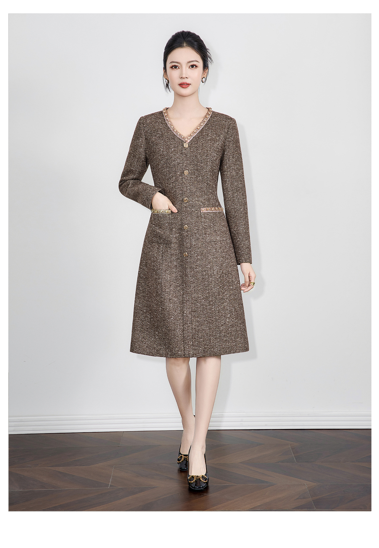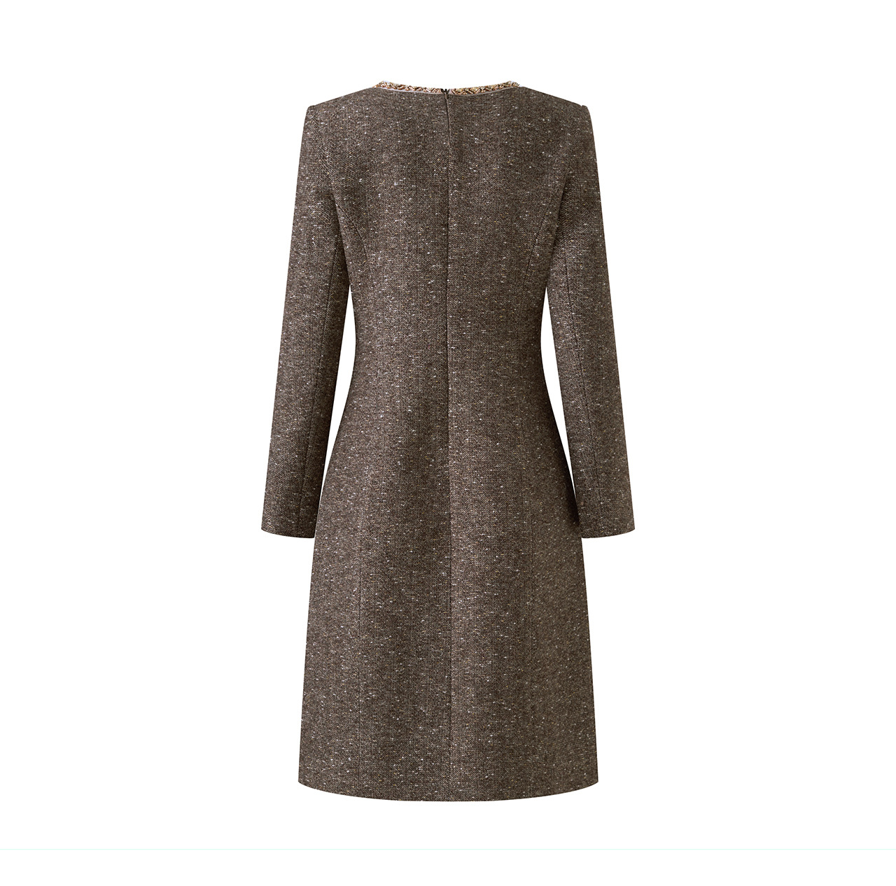 「高货wl」全新升级【铂金会员358/天猫479/差价121】(05912)洛诗琳2025秋冬气质小香风金线人字纹羊毛呢镶钻领连衣裙