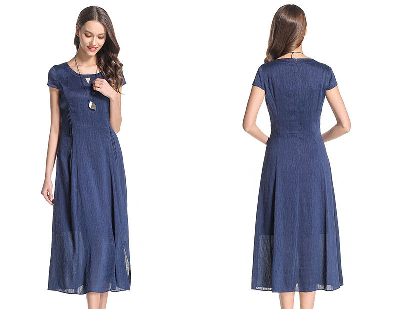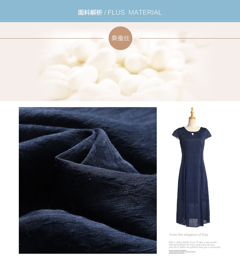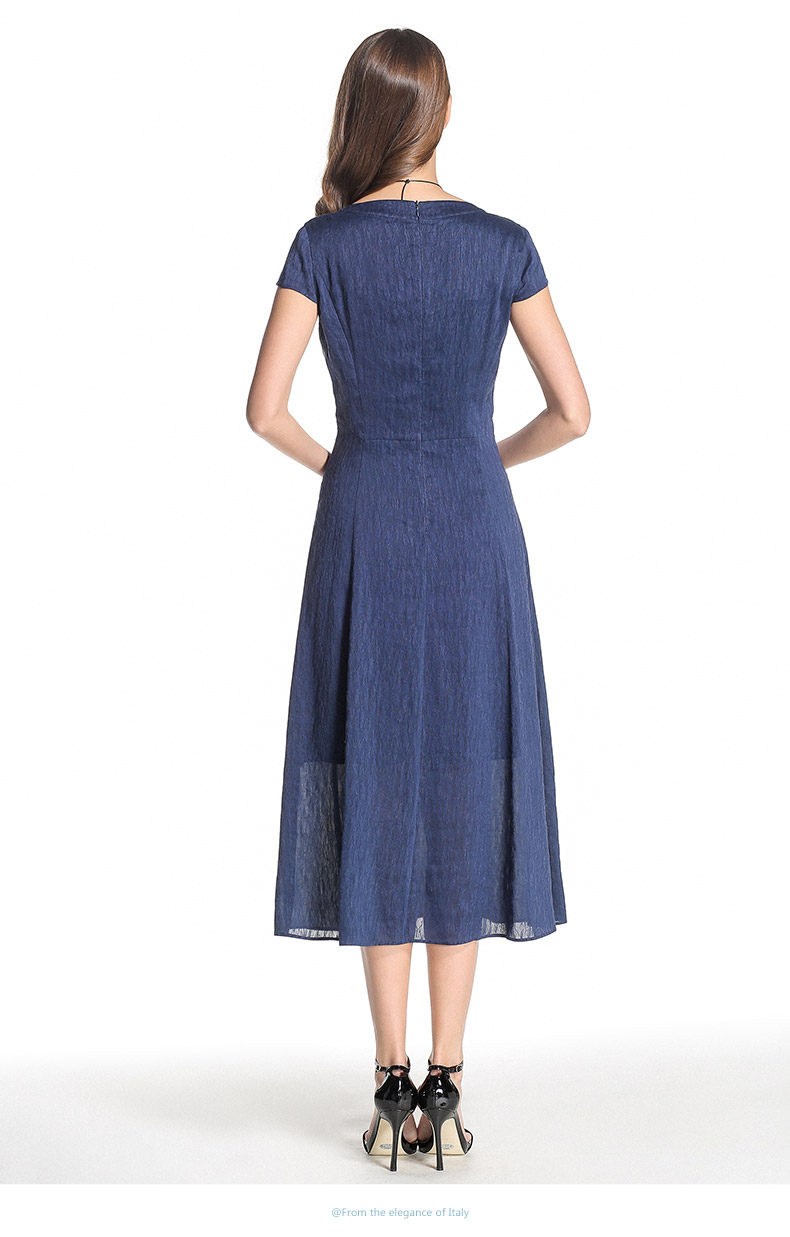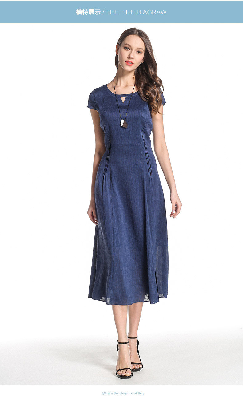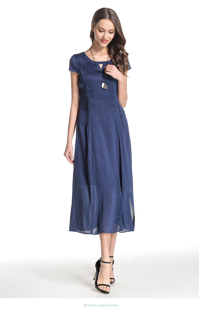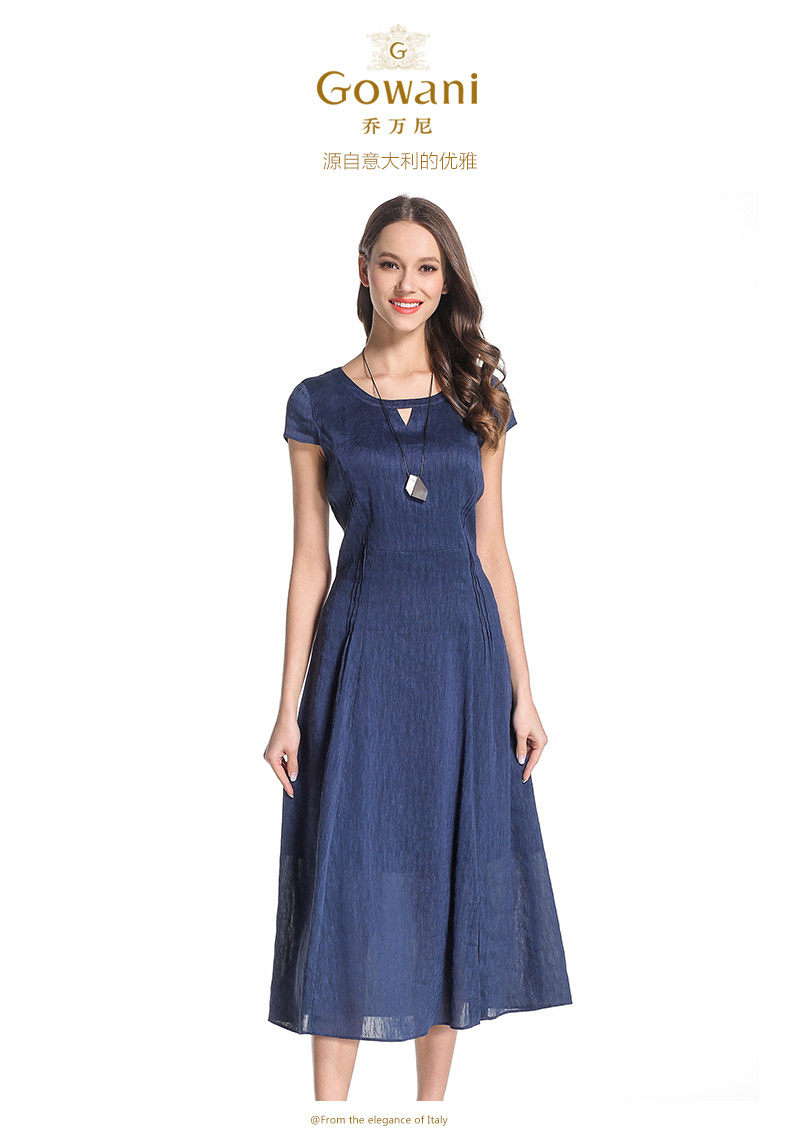 乔万尼桑蚕丝连衣裙圆领纯色气质收腰真丝a字裙中长款女夏EB2E811