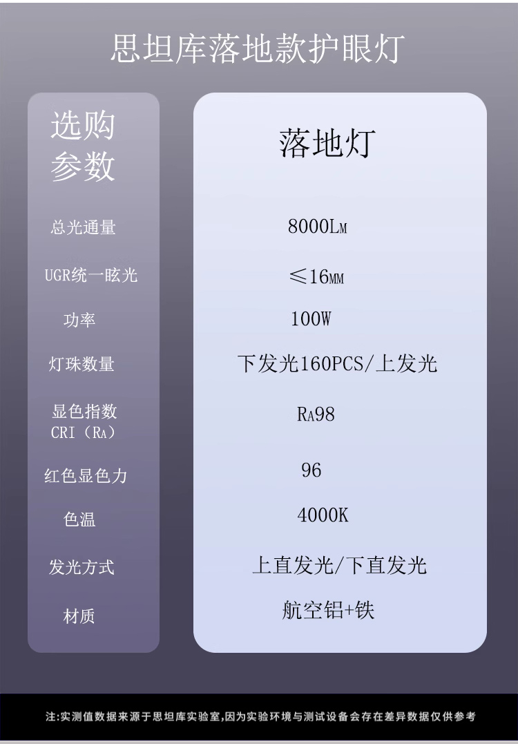 思坦库stakunft 落地护眼灯立式全光谱台灯学习阅读专用大路灯100W(一代)STK-01-100 商品图7