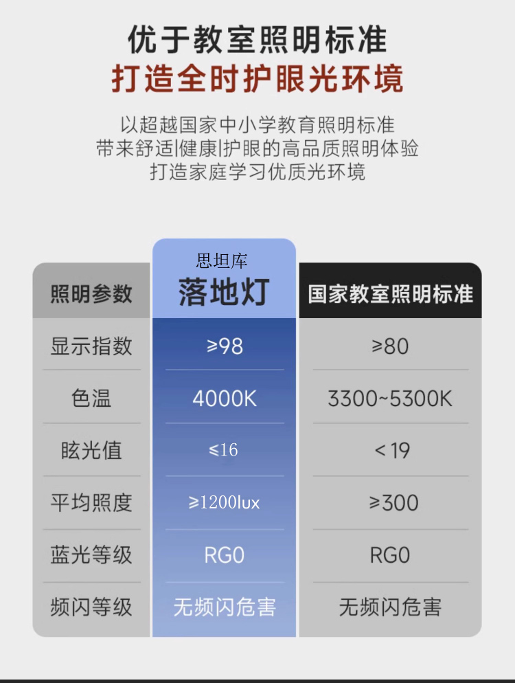 思坦库stakunft 落地护眼灯立式全光谱台灯学习阅读专用大路灯100W(一代)STK-01-100 商品图4
