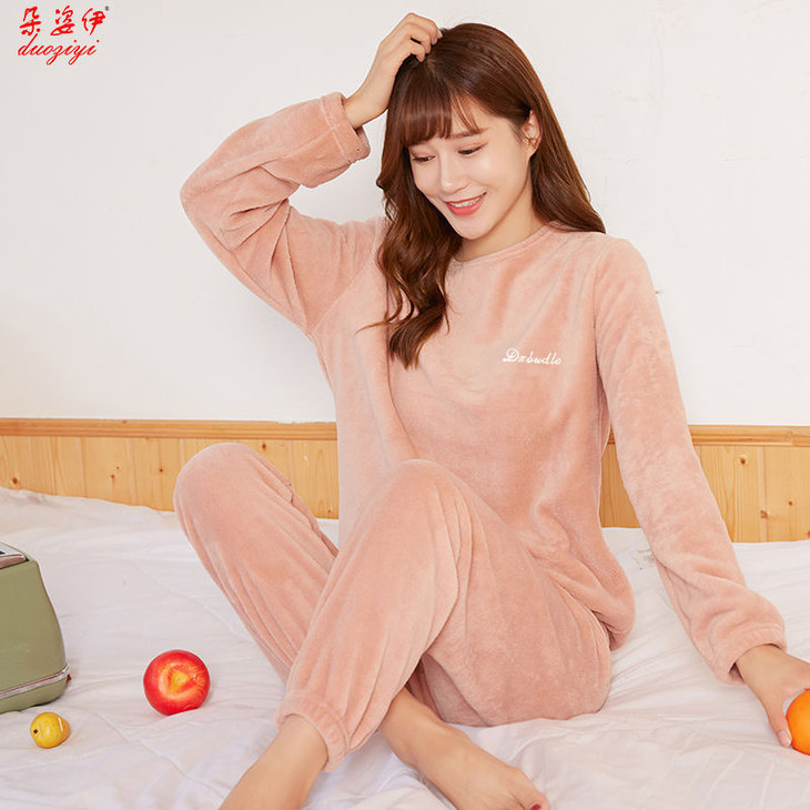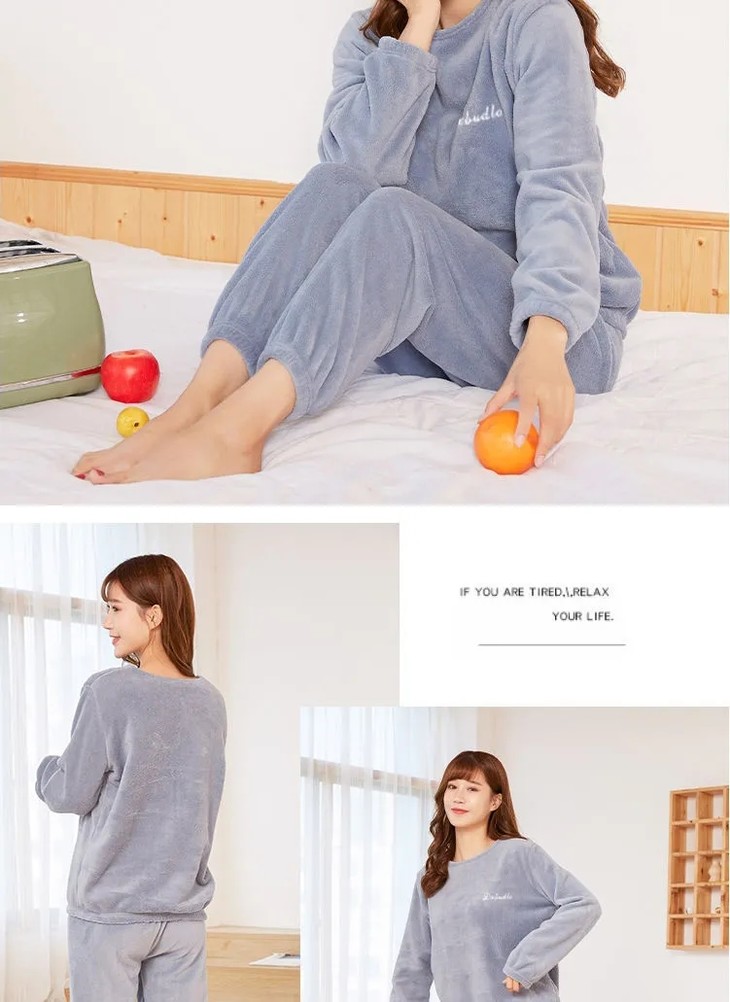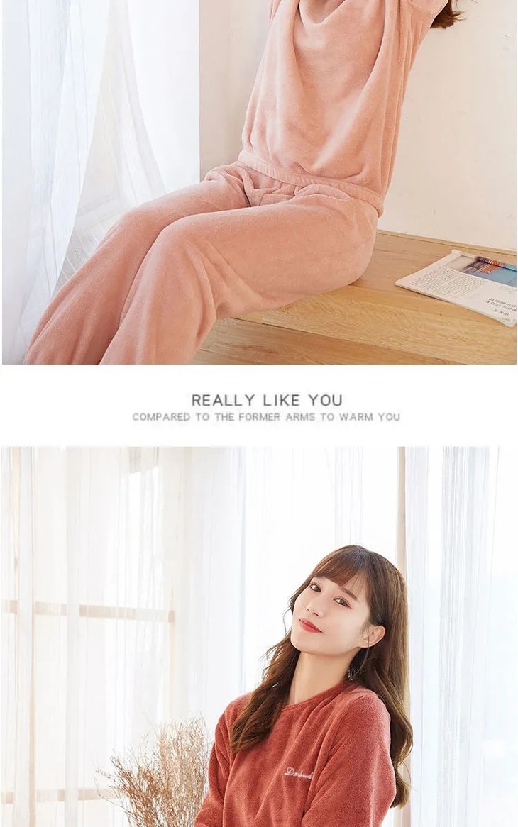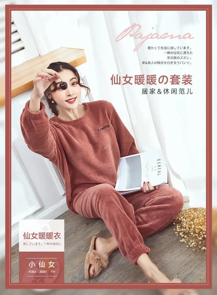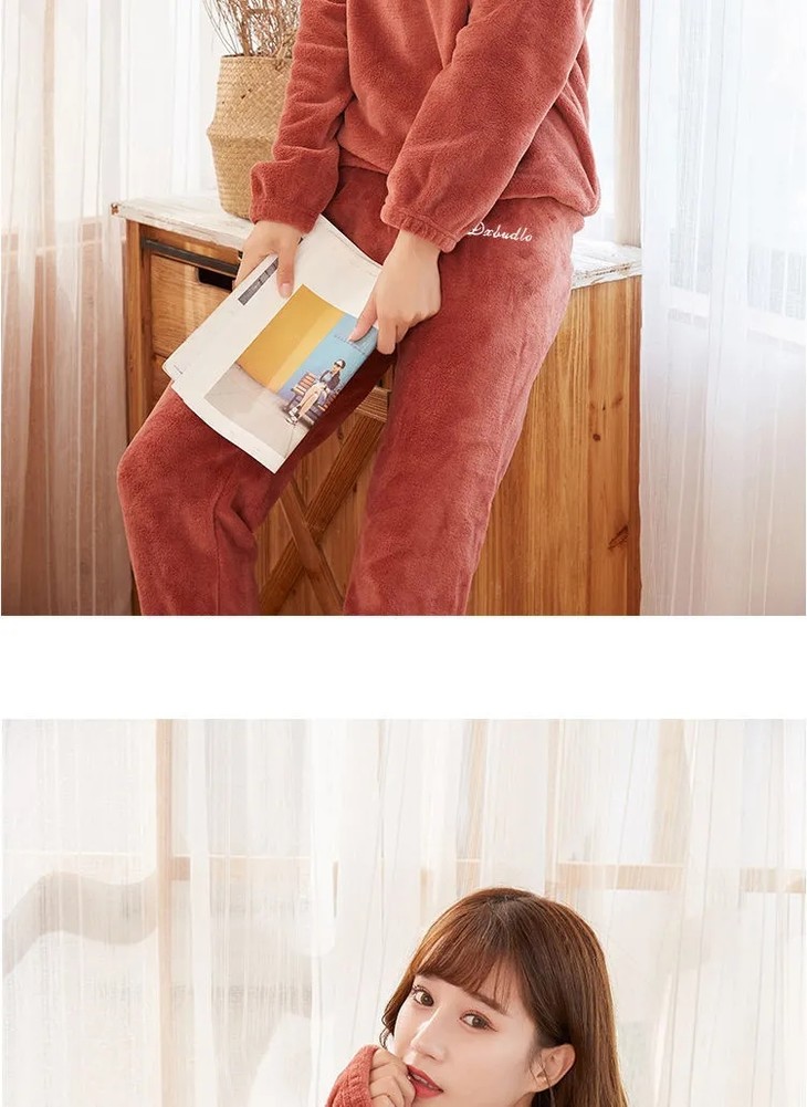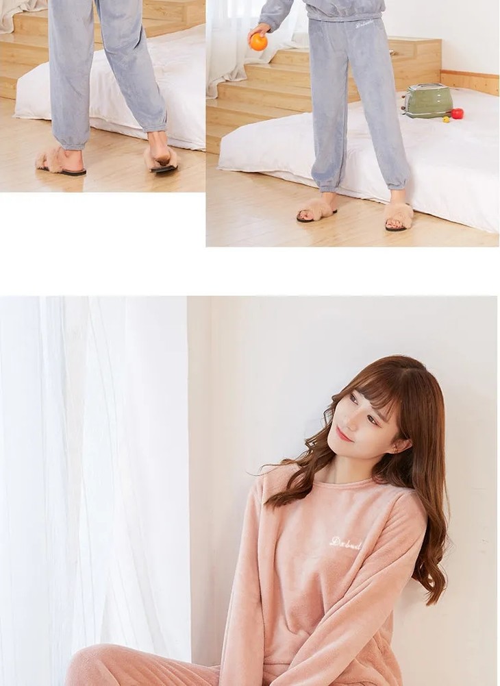 JXG-冬季加厚珊瑚绒居家宽松懒人束脚睡裤睡衣