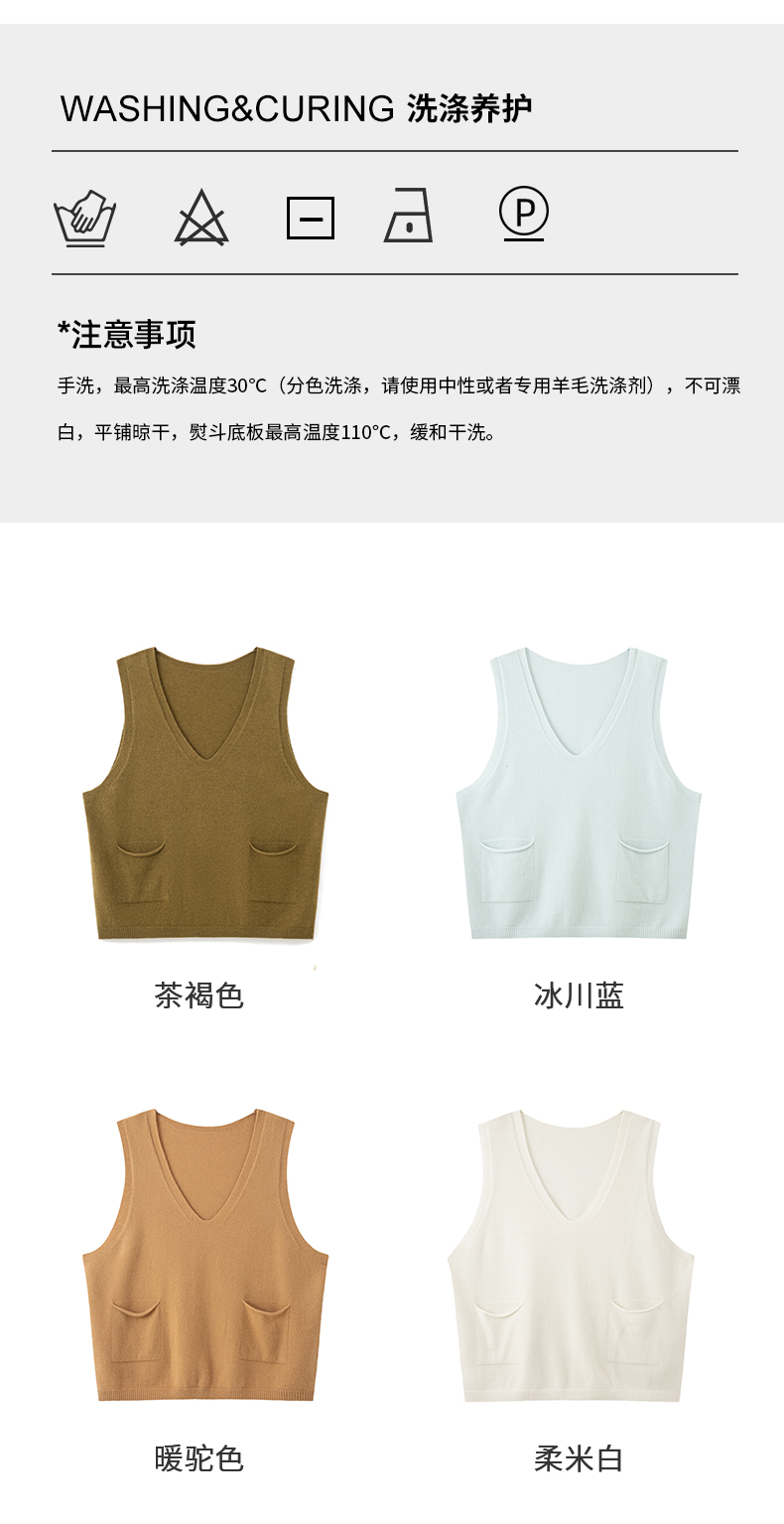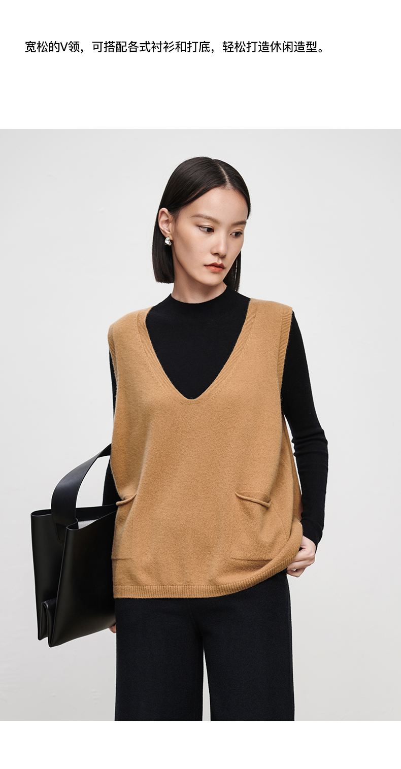 IN AND ON2022秋冬款绵羊毛双口袋V领马甲女新款针织内穿马夹套头外套 商品图4