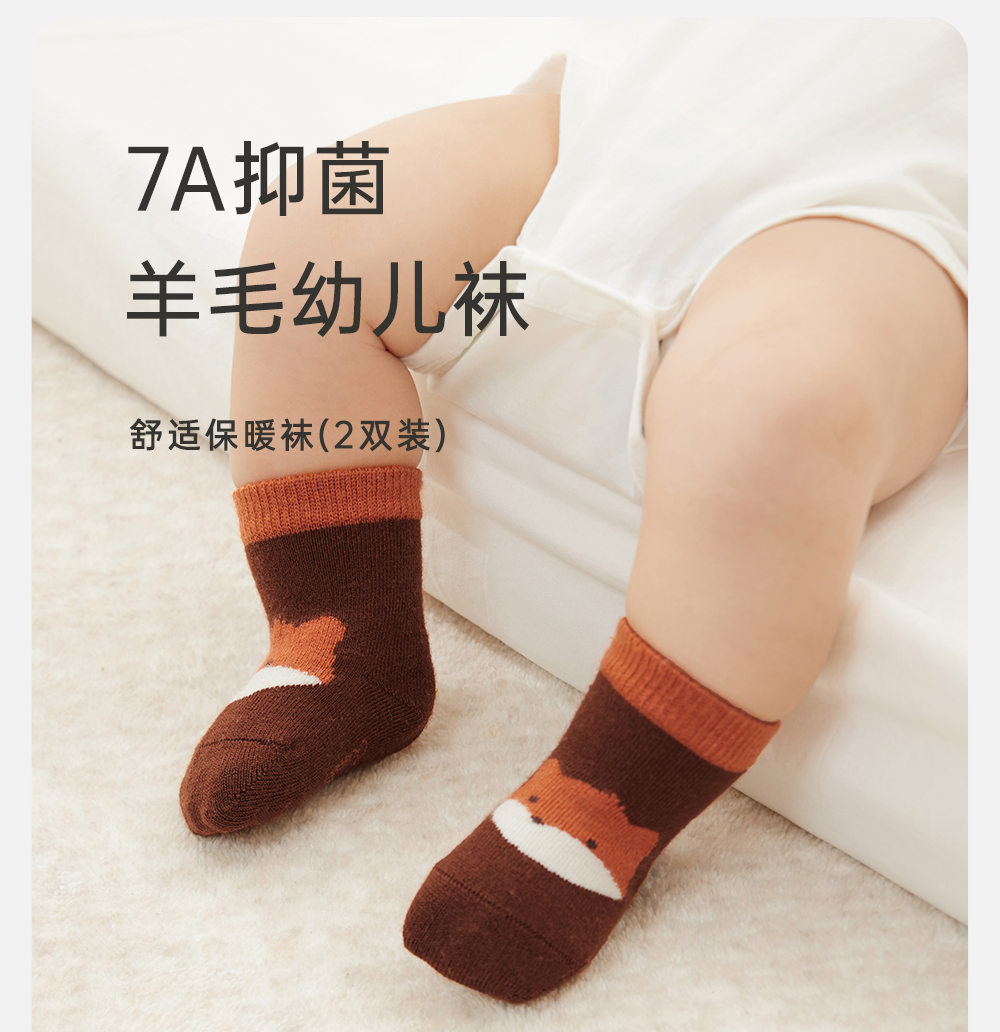 【商场同款】英氏儿童袜子秋冬羊毛袜子婴幼儿抗菌短袜新款