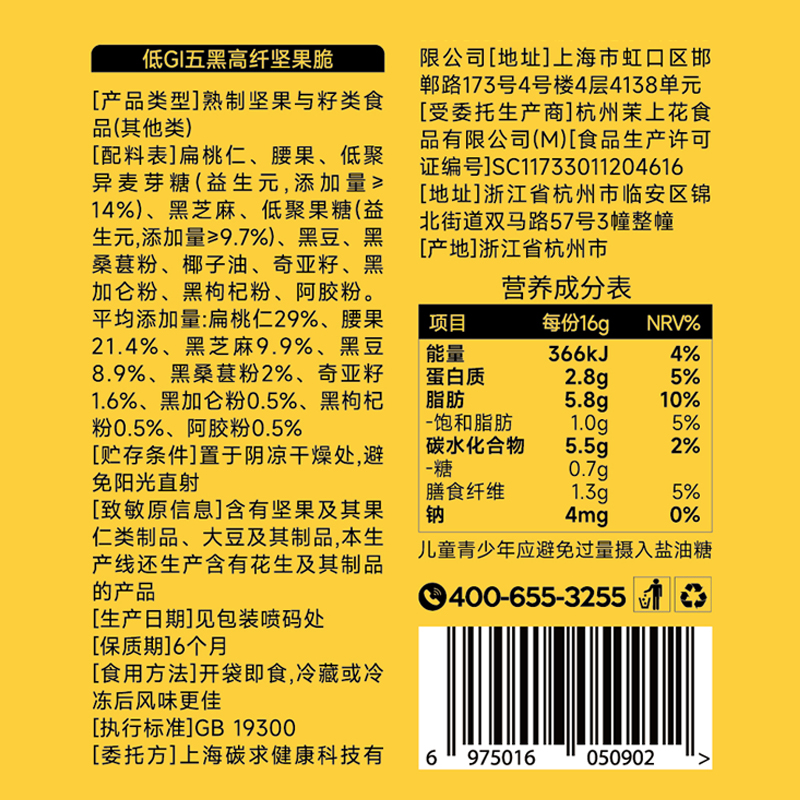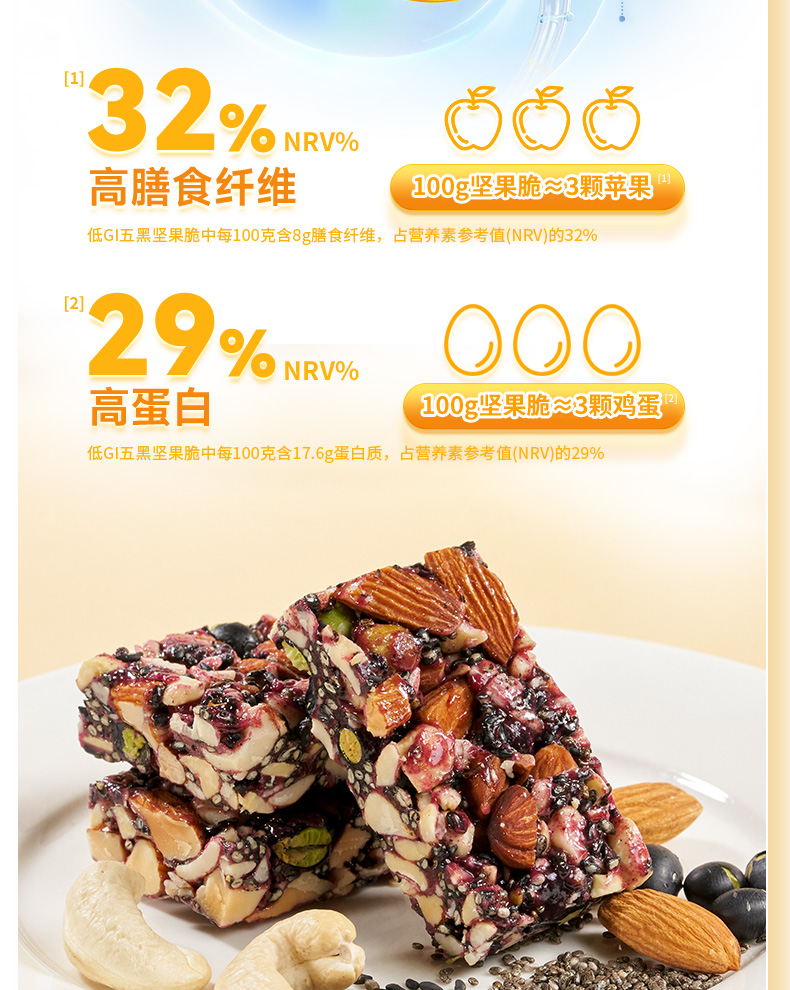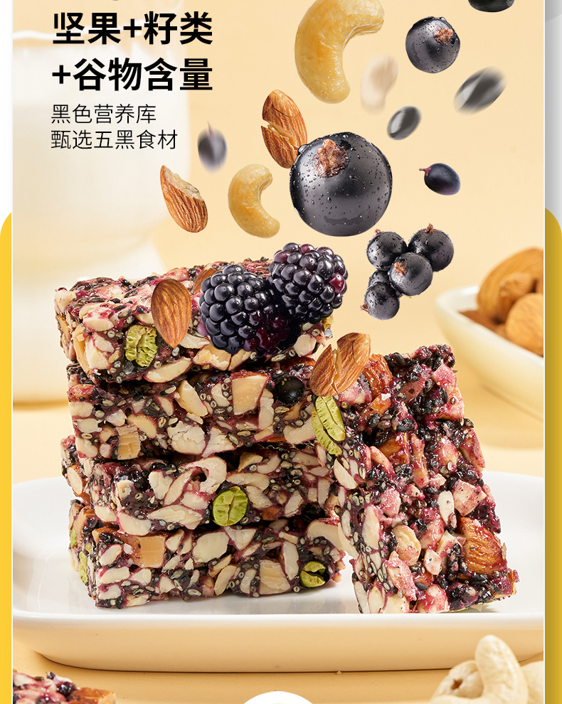 低GI五黑坚果脆 高纤维高蛋白 甄选坚果+籽类等五黑食材 进口扁桃仁 干净配方 健康少负担