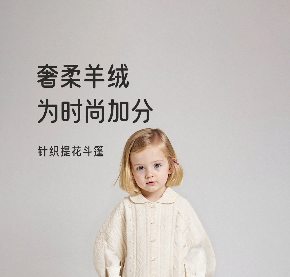 【高定系列】英氏儿童外套春秋保暖羊绒斗篷女童外搭休闲针织毛衫
