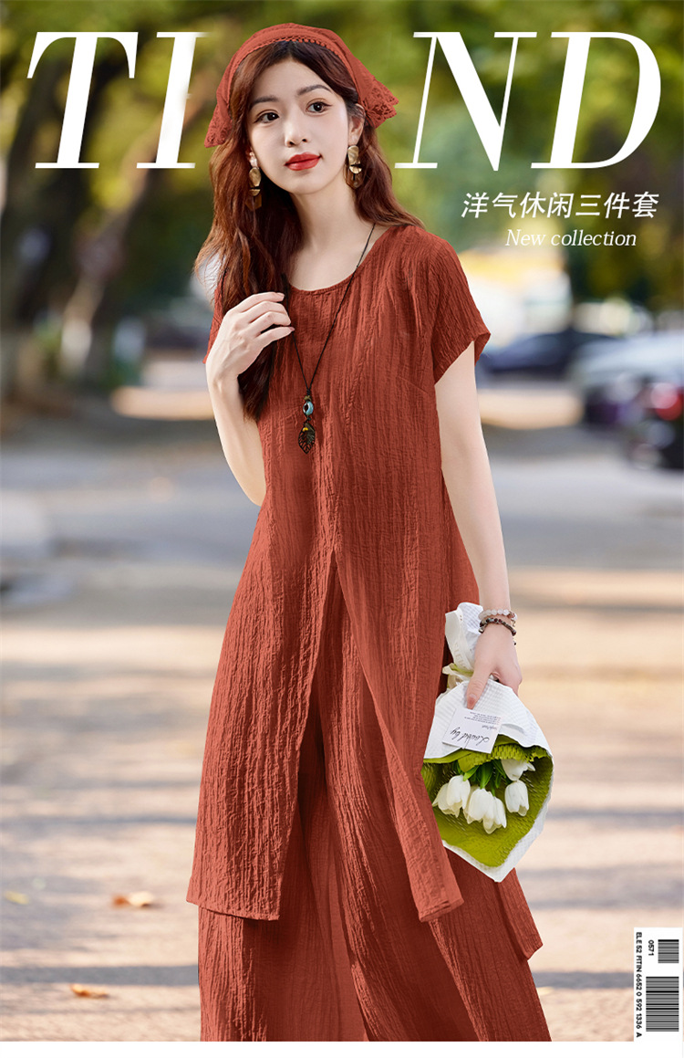 时尚韩版宽松上衣,阔腿裤长裤穿搭配吊带三件套HR-SYY2740