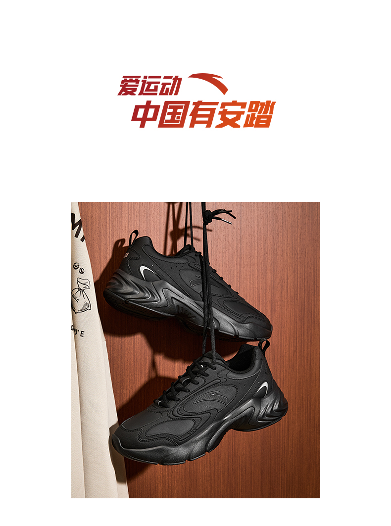 安踏厚底舒适休闲鞋男鞋2025冬季新款黑色百搭运动鞋子112548893