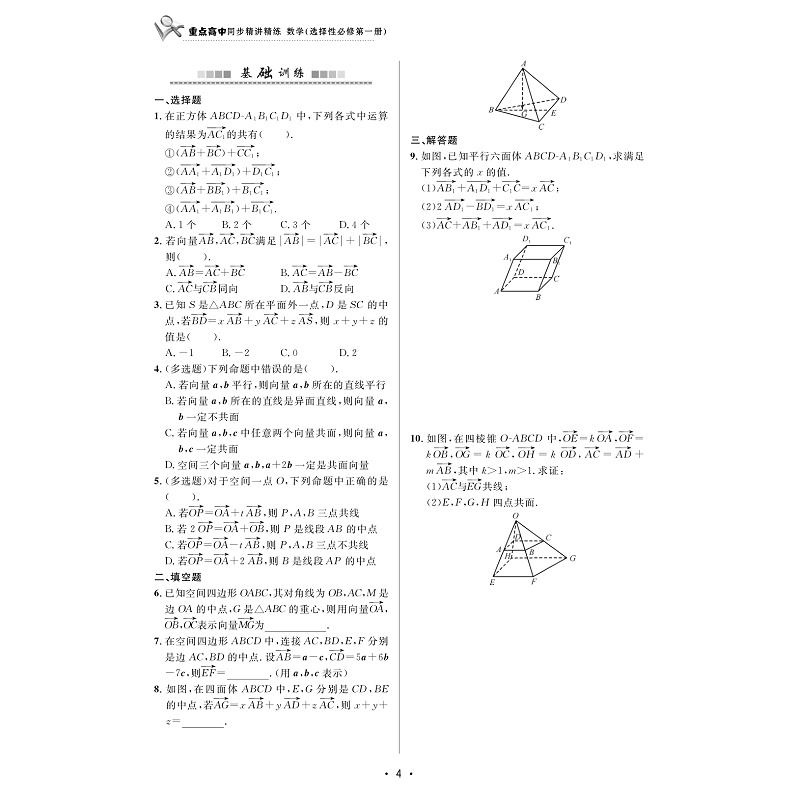 重点高中同步精讲精练(数学. 选择性必修第一册)/2019年人教A版高中数学新课标教材/周顺钿/浙江大学出版社