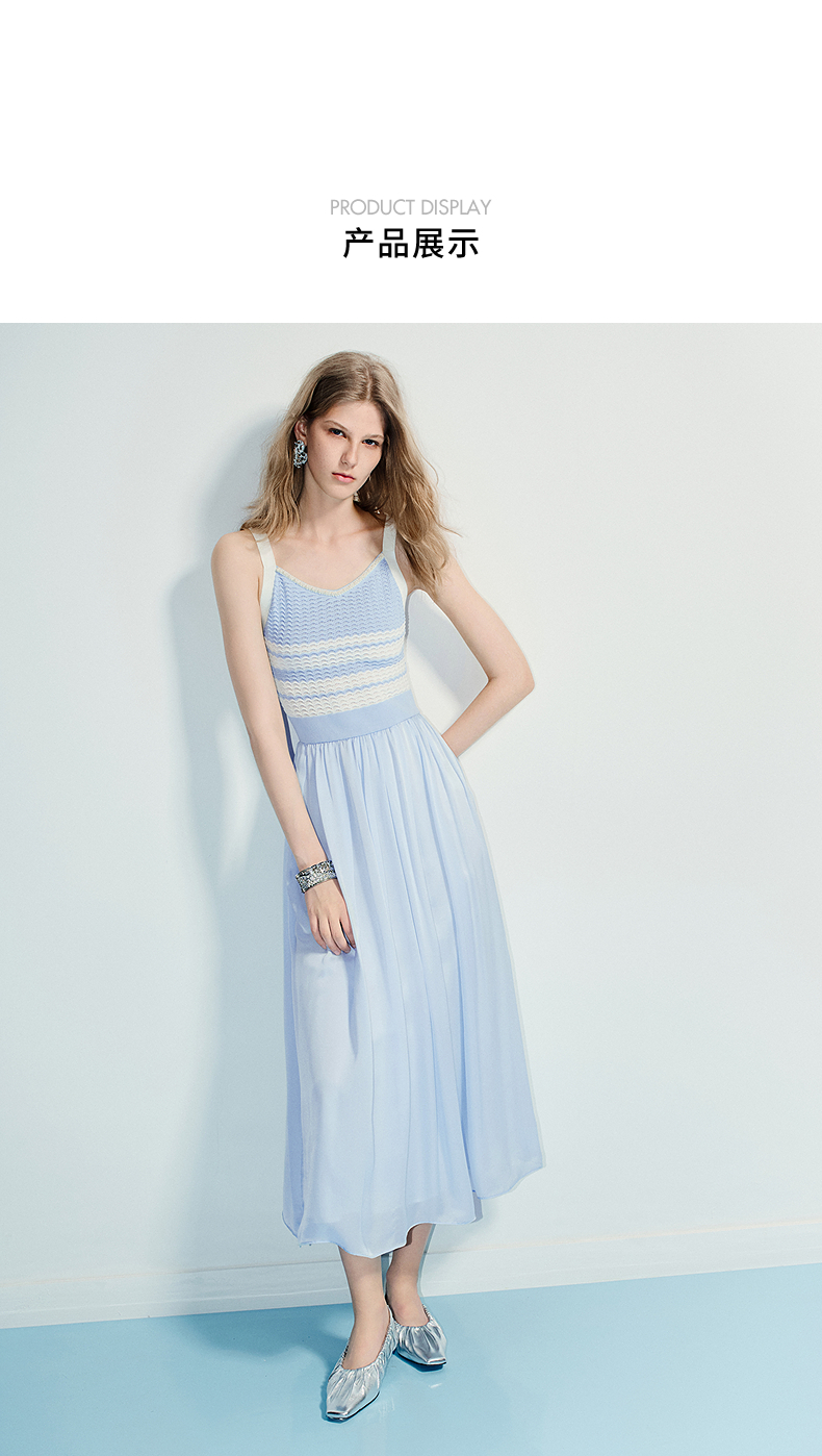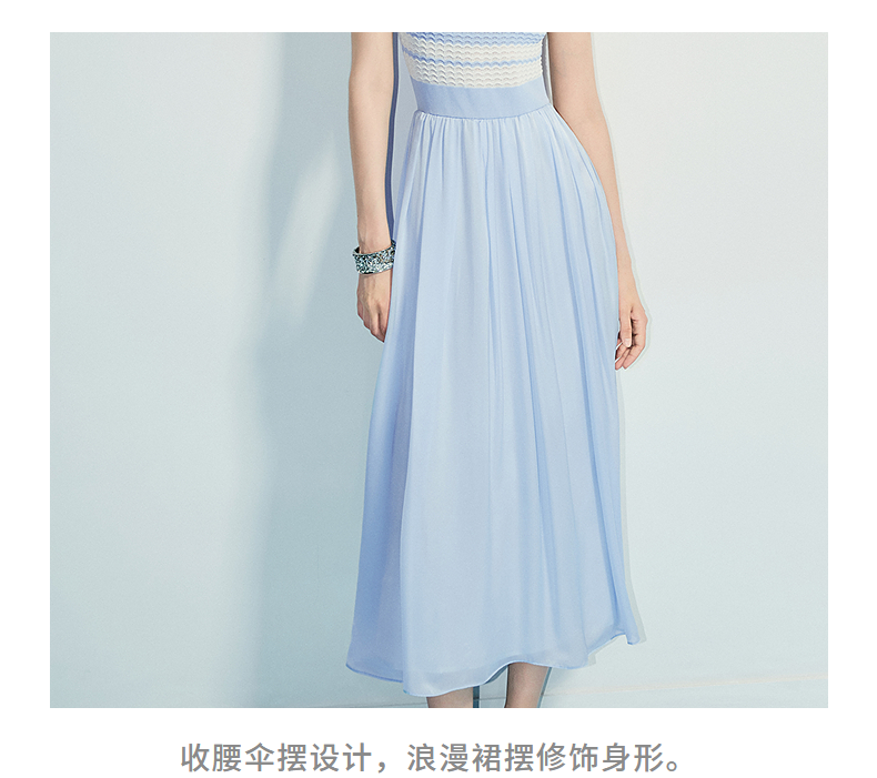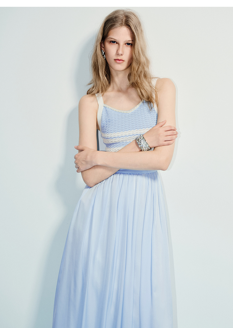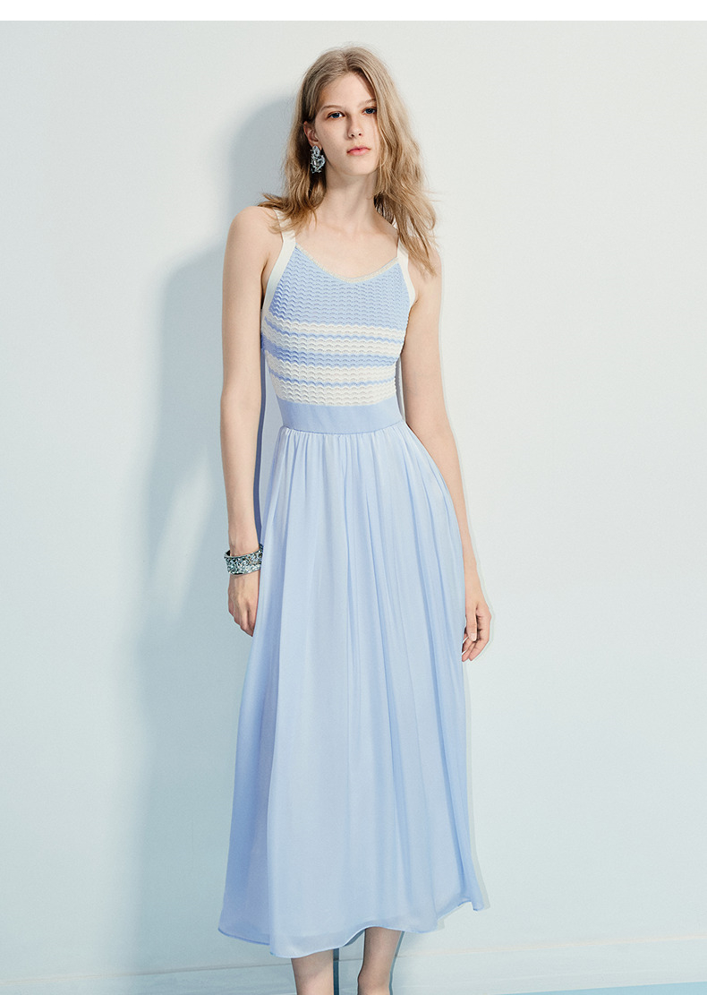 MAXRIENY海岛度假风25夏款条纹吊带连衣裙收腰提花伞摆针织长裙(货号:MF86DR016)