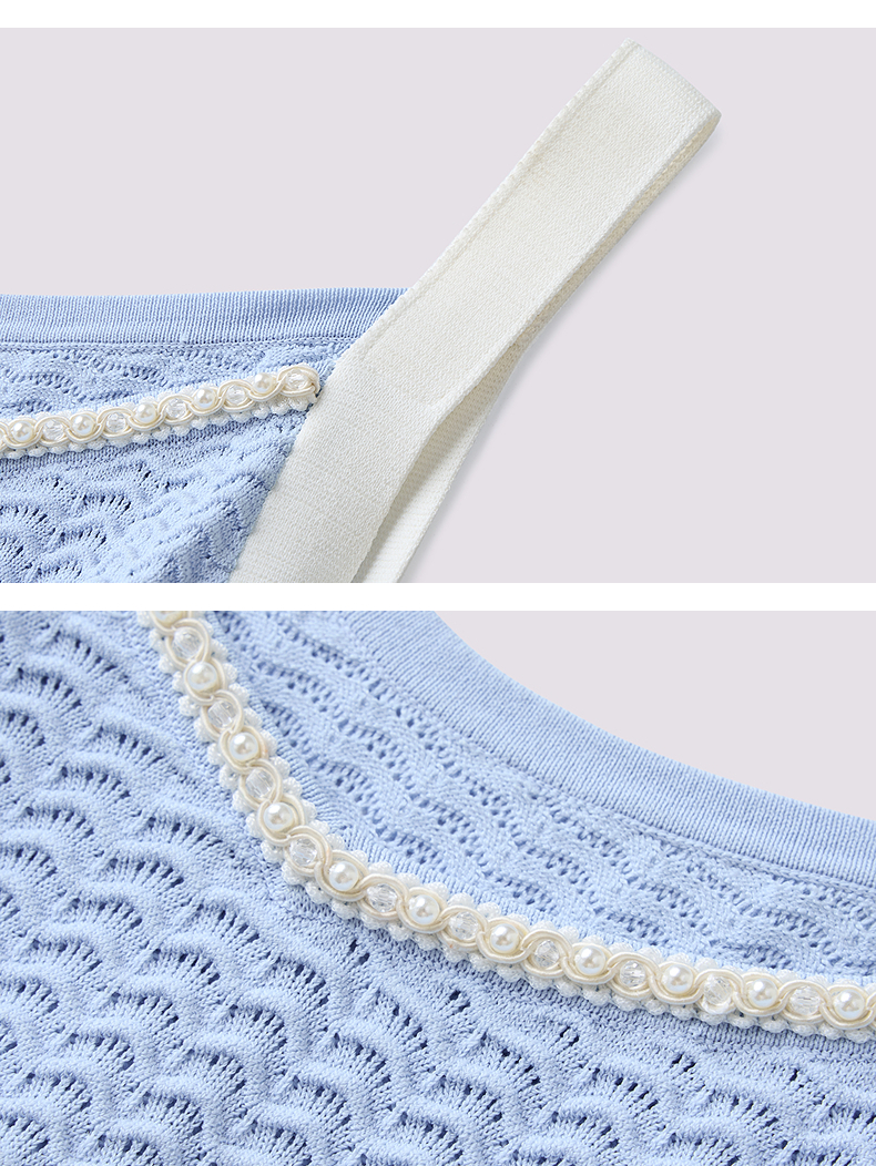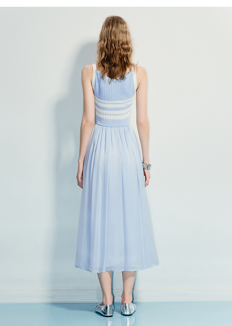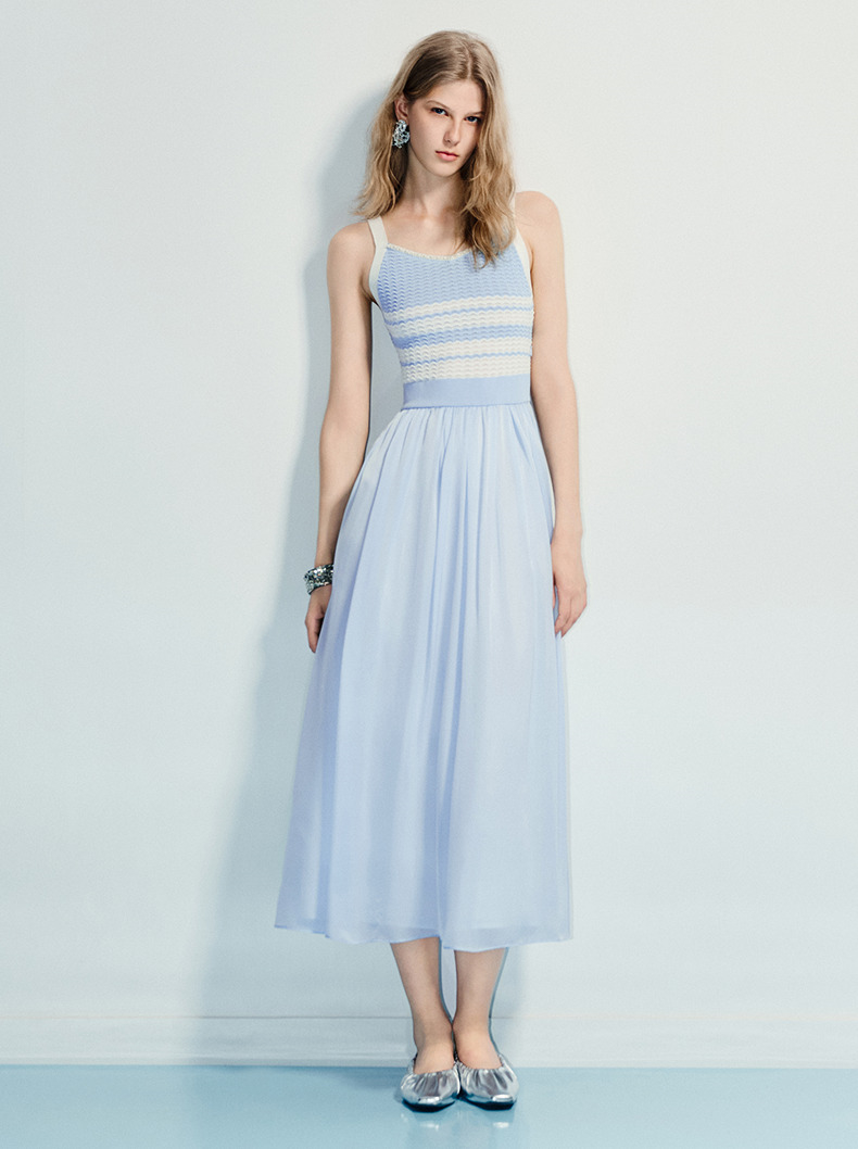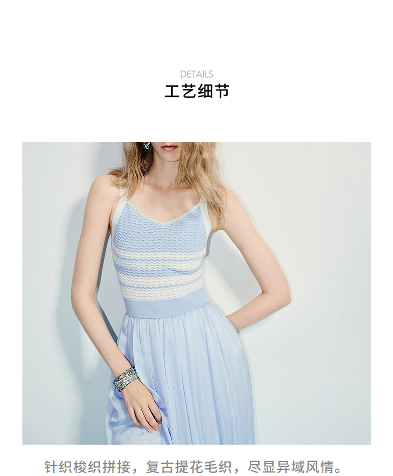 MAXRIENY海岛度假风25夏款条纹吊带连衣裙收腰提花伞摆针织长裙(货号:MF86DR016)