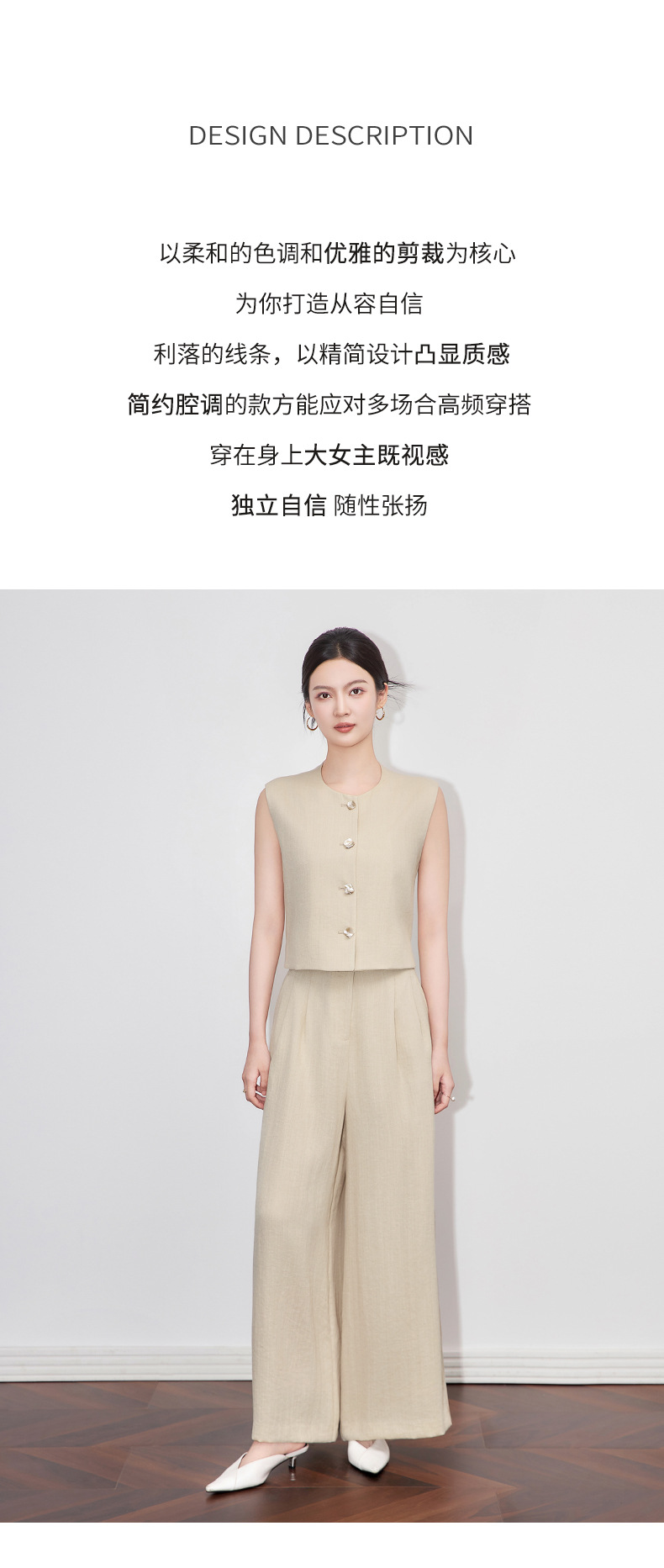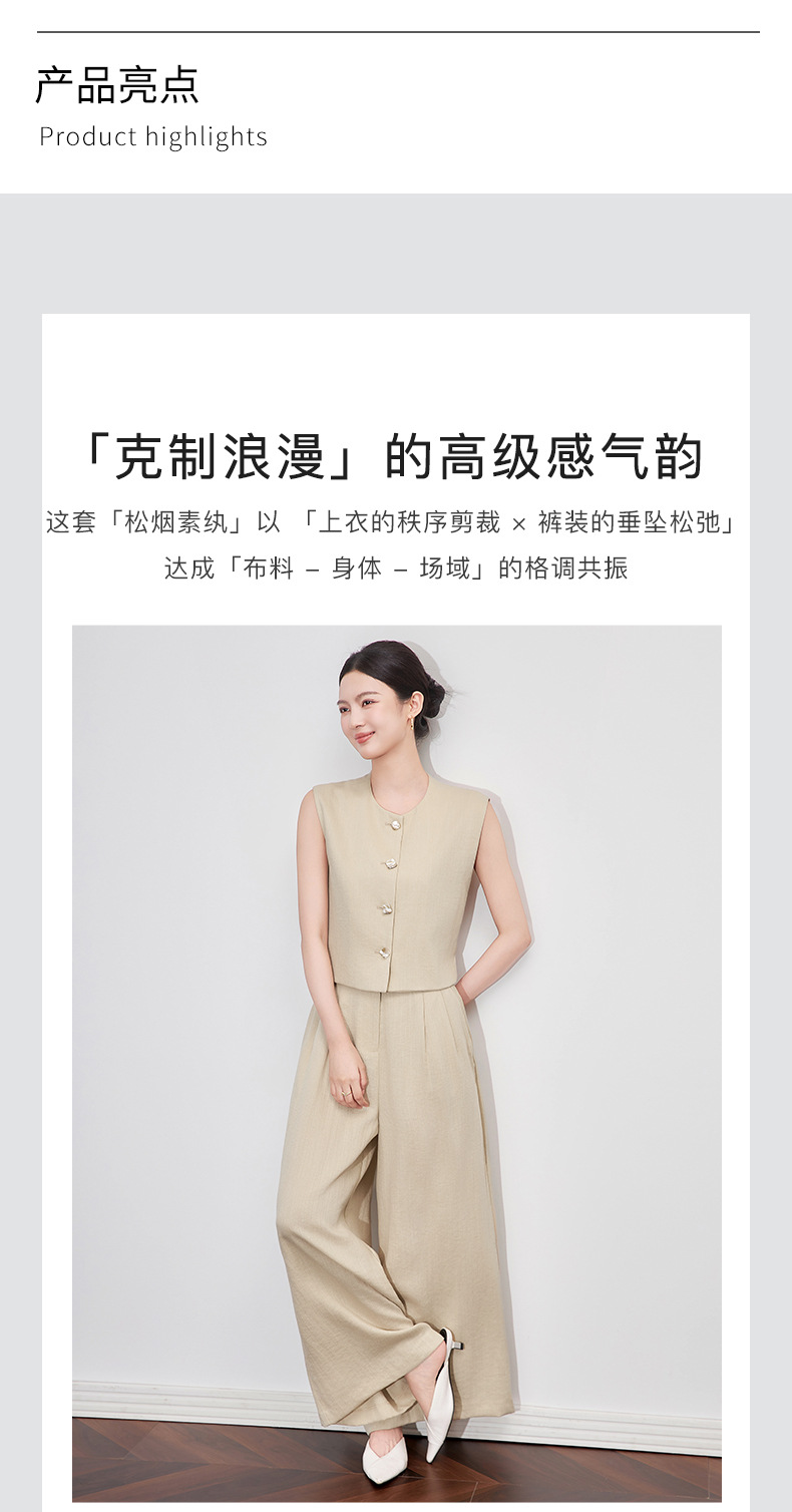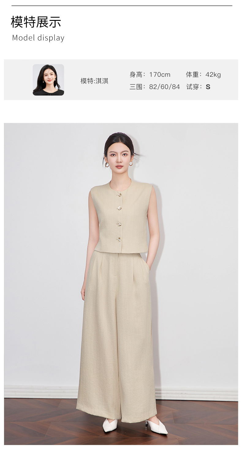 「高货wl」全新升级【铂金会员367/天猫499/差价132】(99315)洛诗琳夏季气质无袖马甲上衣时尚老钱风阔腿裤两件套女