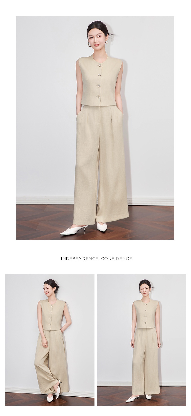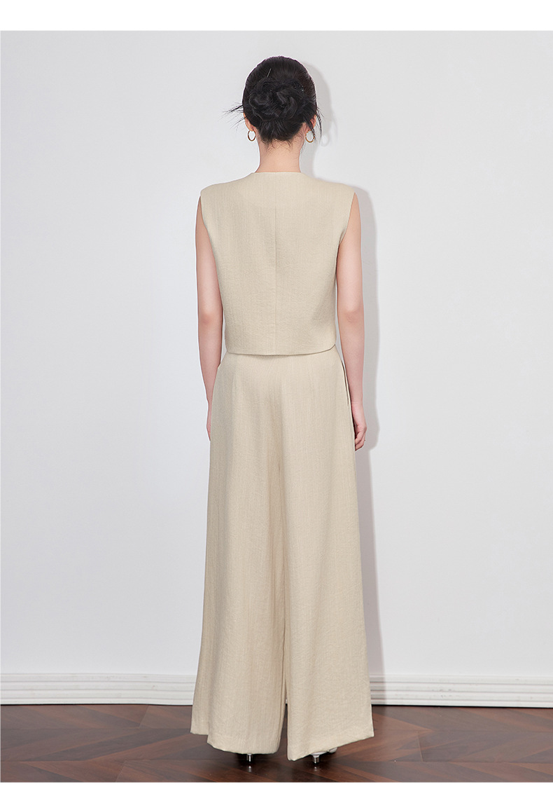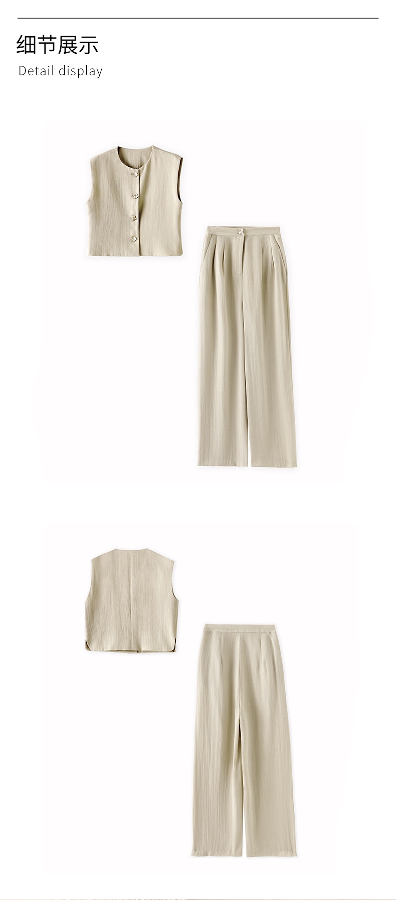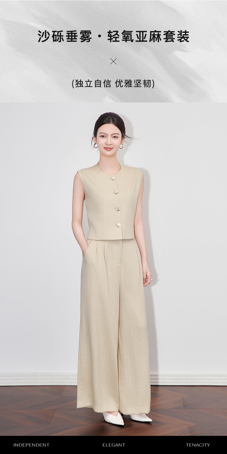 「高货wl」全新升级【铂金会员367/天猫499/差价132】(99315)洛诗琳夏季气质无袖马甲上衣时尚老钱风阔腿裤两件套女