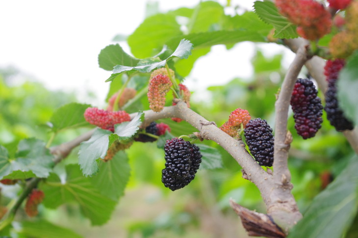 绿家的桑葚生态种植。施用商品有机肥做底肥,加以追施花生麸桶泡肥。种植过程不使用防虫防病的化学农药,树干涂抹石灰防虫子产卵,以及为剪枝后的伤口消毒。靠的就是管理员的一双巧手和辛勤的汗水栽培而成!