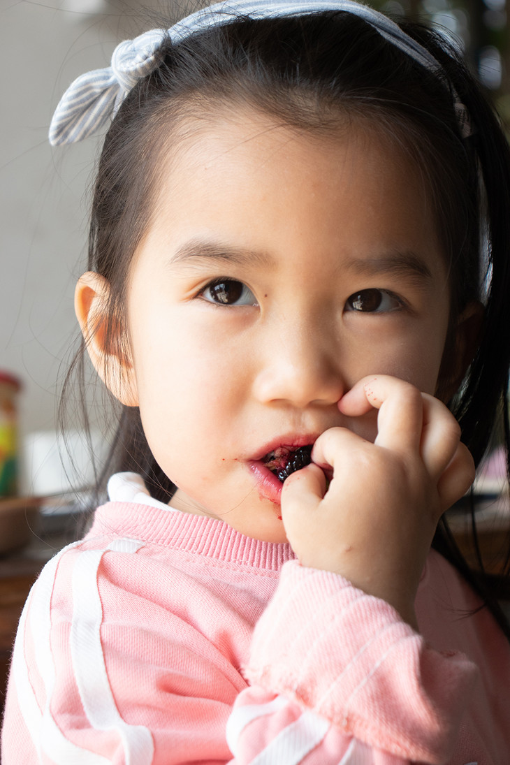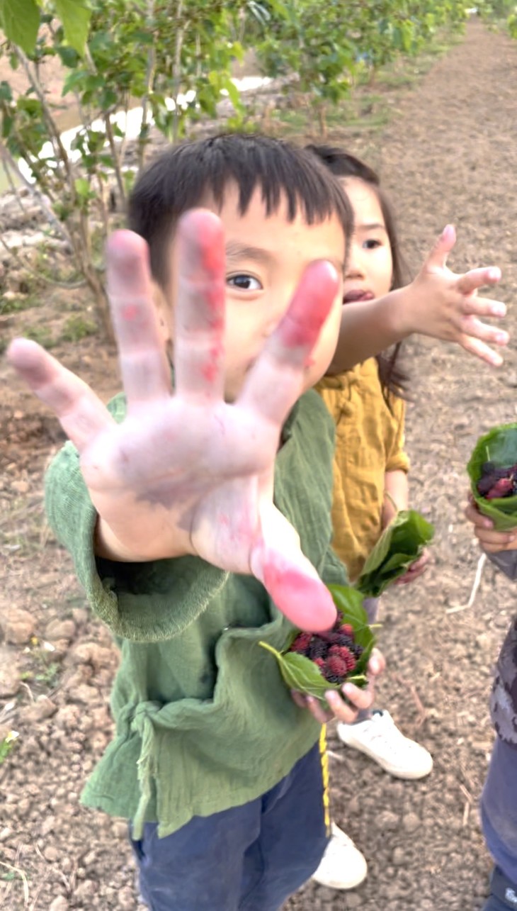 桑葚中含有多种营养成分,如芦丁、花青素、白黎芦醇等。花青素含量极高,吃一把桑葚就染红了嘴唇。小朋友爱吃,大朋友也爱吃~