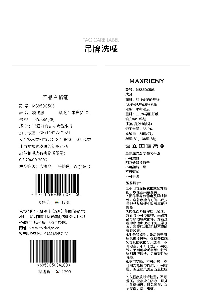 【商场同款】MAXRIENY水貂毛边收腰羽绒服24冬新款女装保暖外套(货号:MS85DC503)