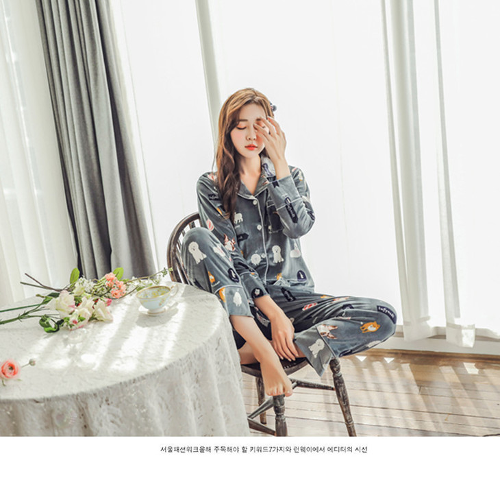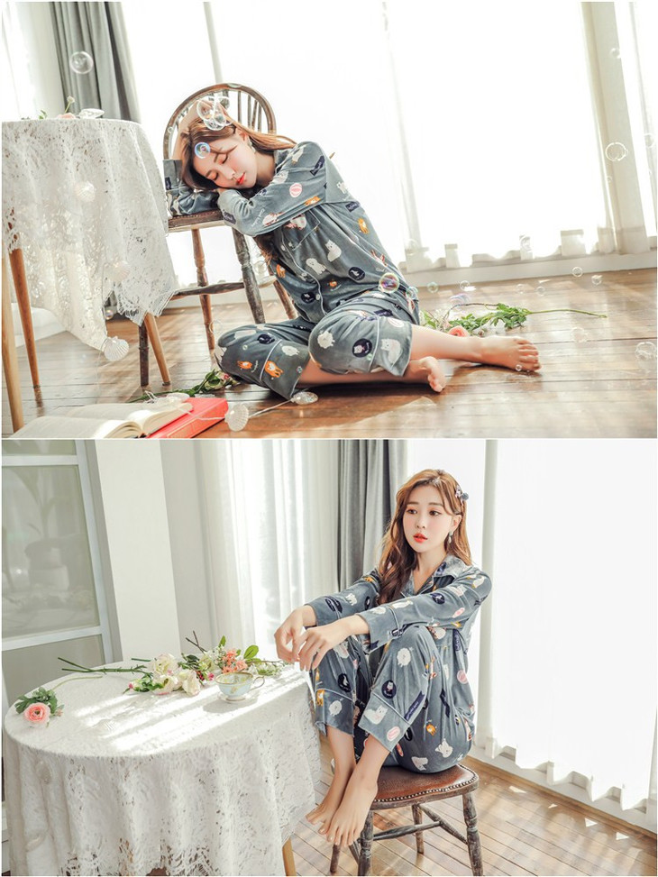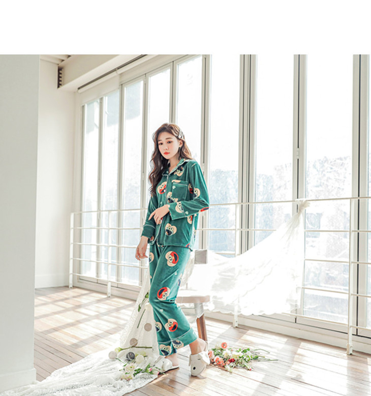QYSY-268冬季新品开衫翻领韩版加厚金丝绒清新家居服睡衣套装