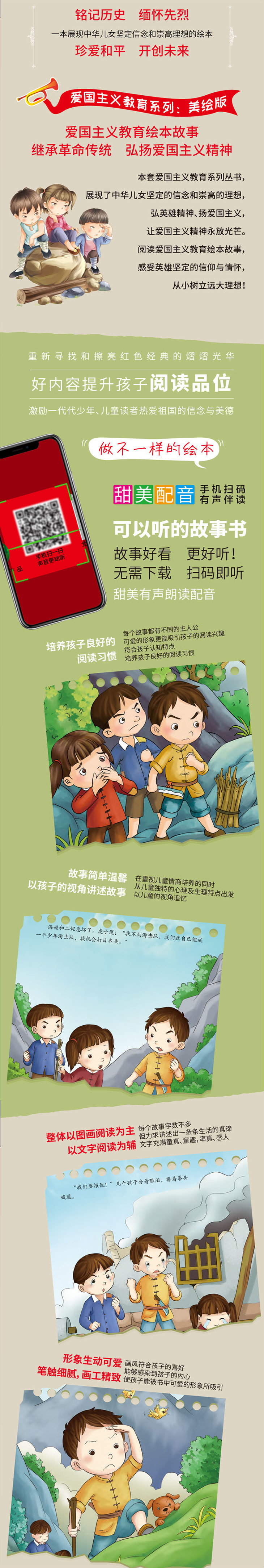 本套爱国主义教育系列丛书展现了中华儿女坚定的信念和崇高的理想,弘英雄精神、扬爱国主义,让爱国主义精神永放光芒。阅读爱国主义教育绘本故事,感受英雄坚定的信仰与情怀,从小树立远大理想!