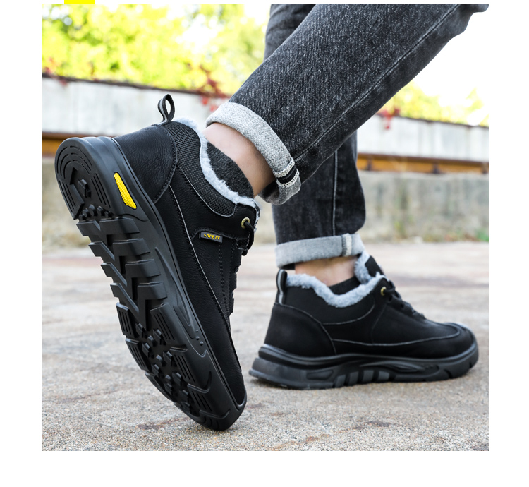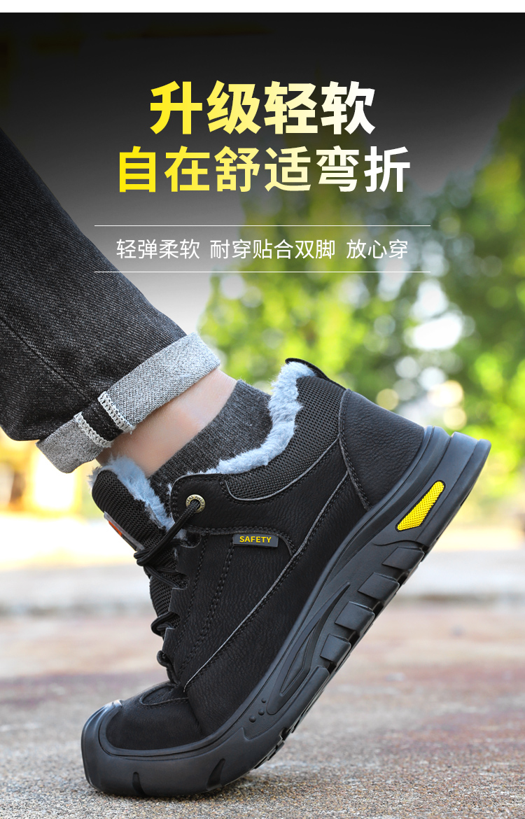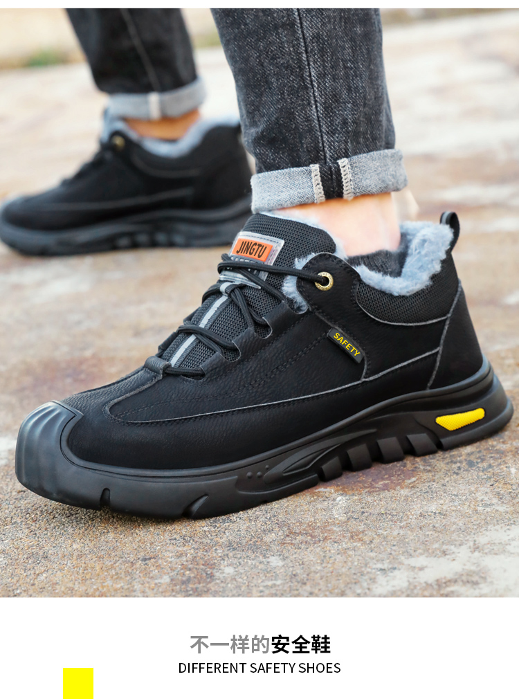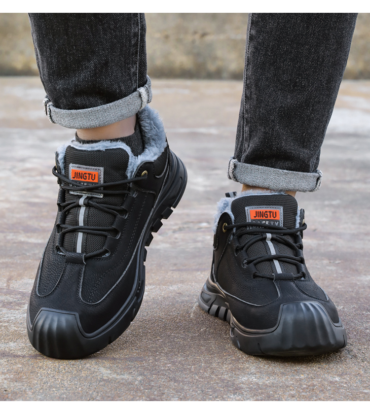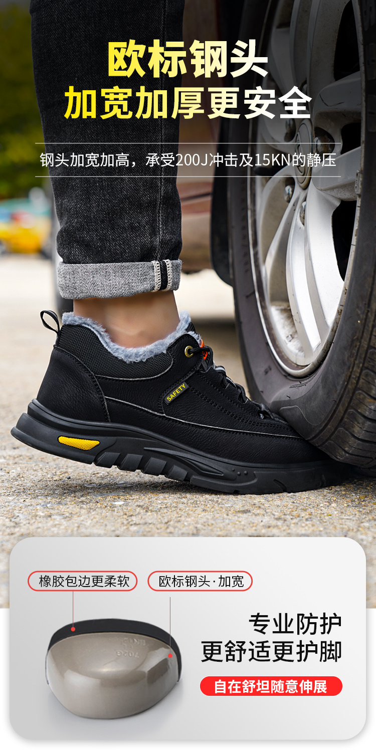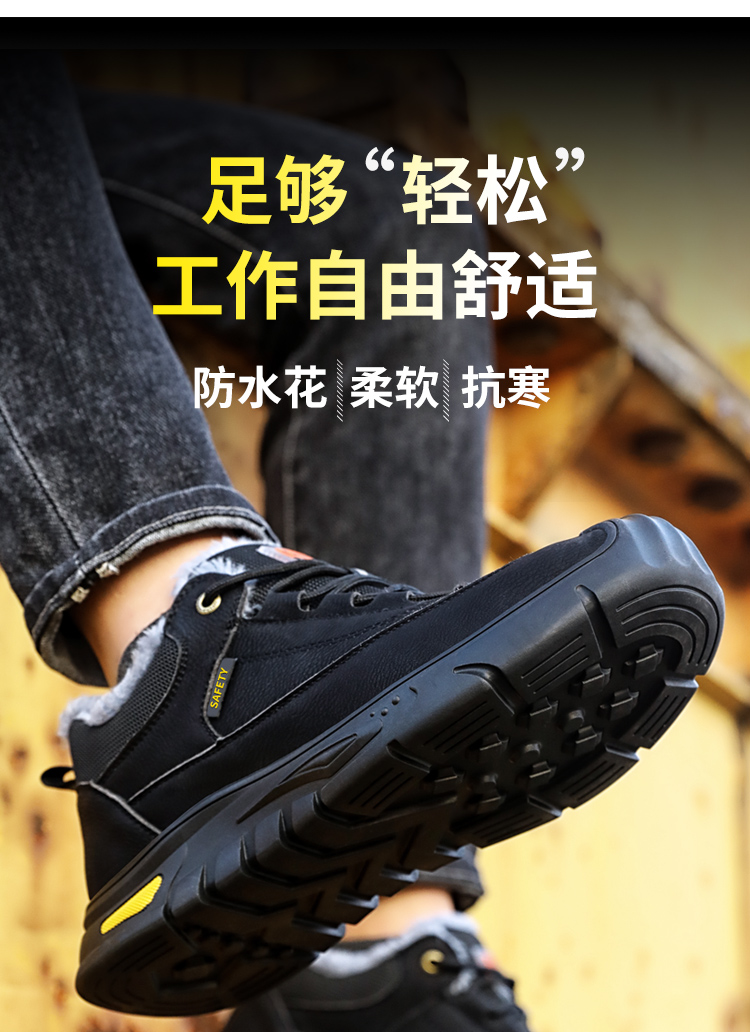 京途新品冬季加绒防水劳保鞋男防砸防刺工作鞋安全鞋橡胶底钢包头耐磨