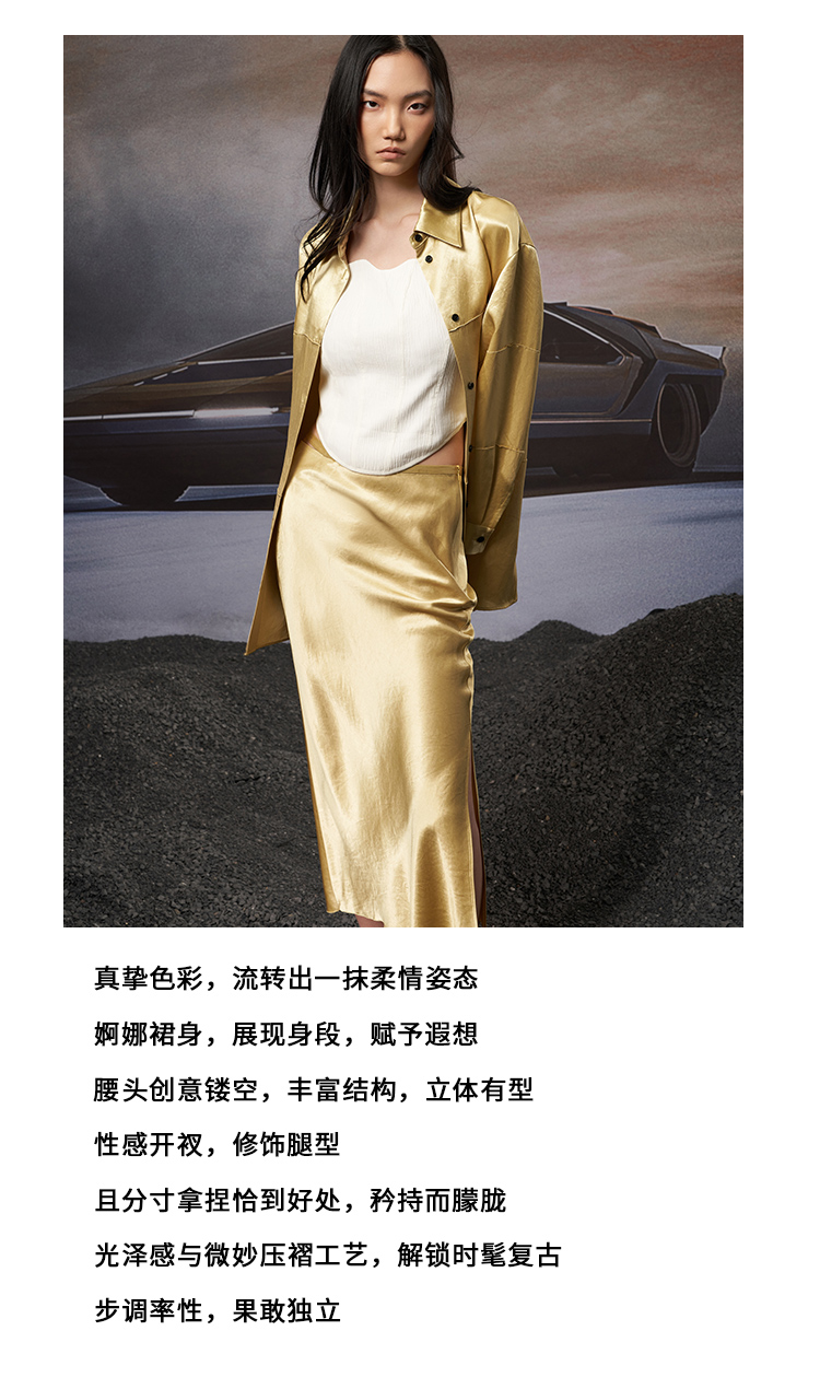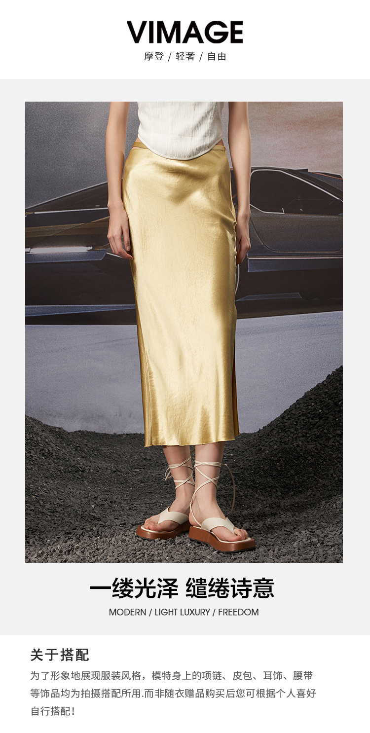 VIMAGE纬漫纪秋季新款个性洋气开叉复古半身裙女裙V1806428