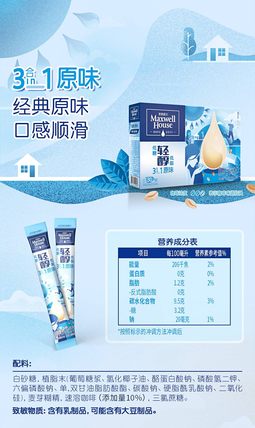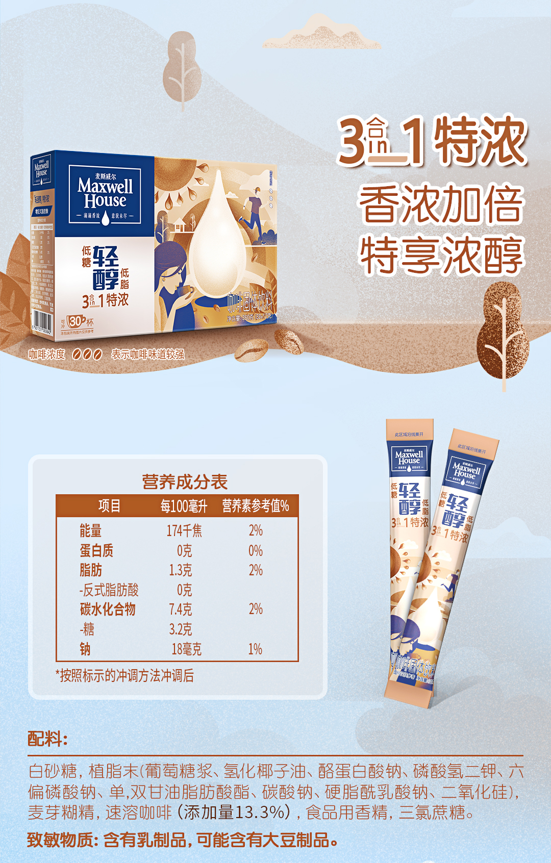 麦斯威尔 三合一 速溶咖啡 30条/盒 进口咖啡粉 特浓 原味 咖啡 包邮 新老包装随机发货