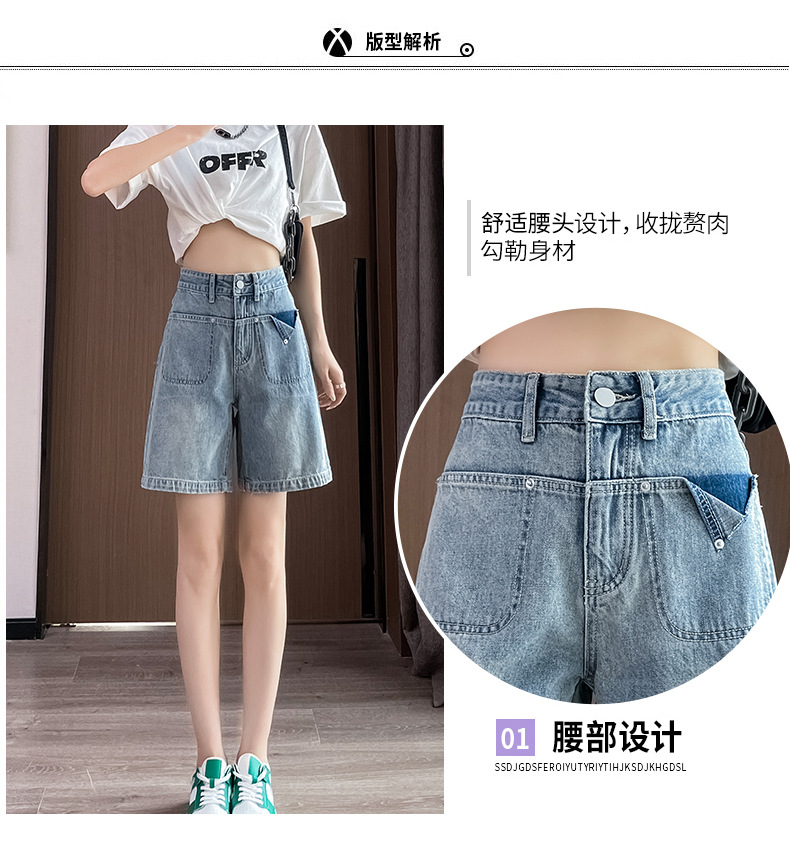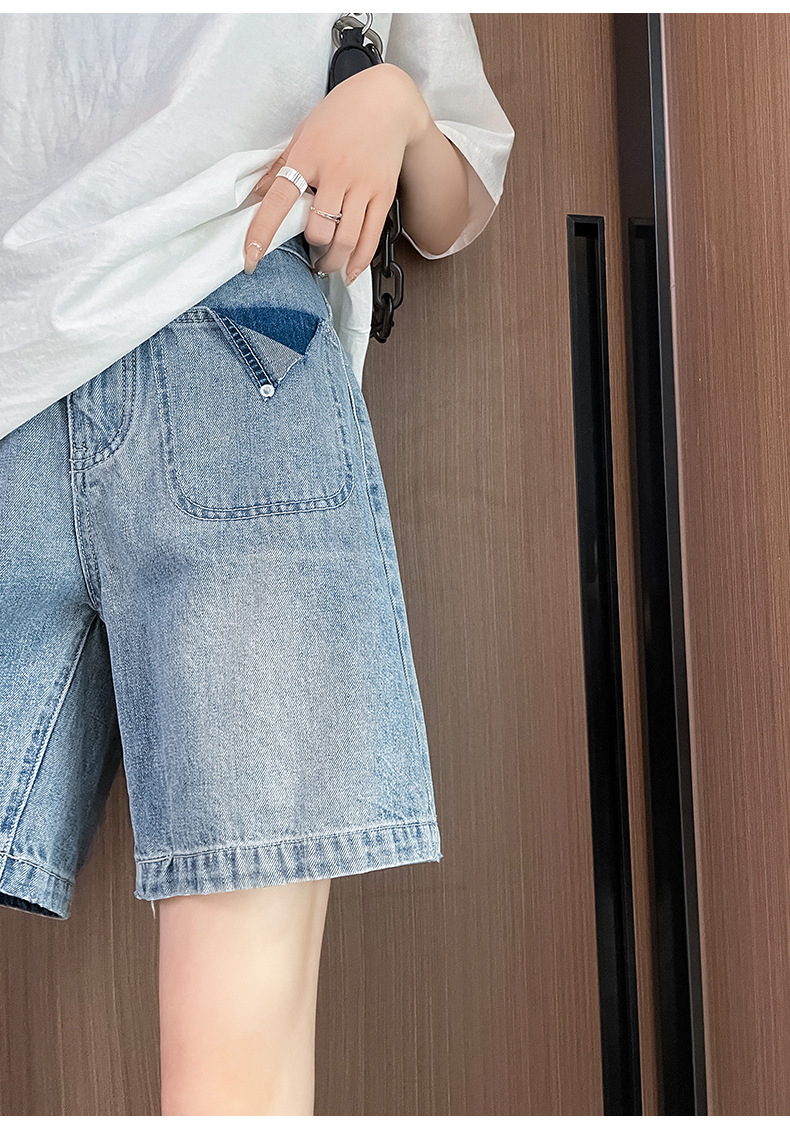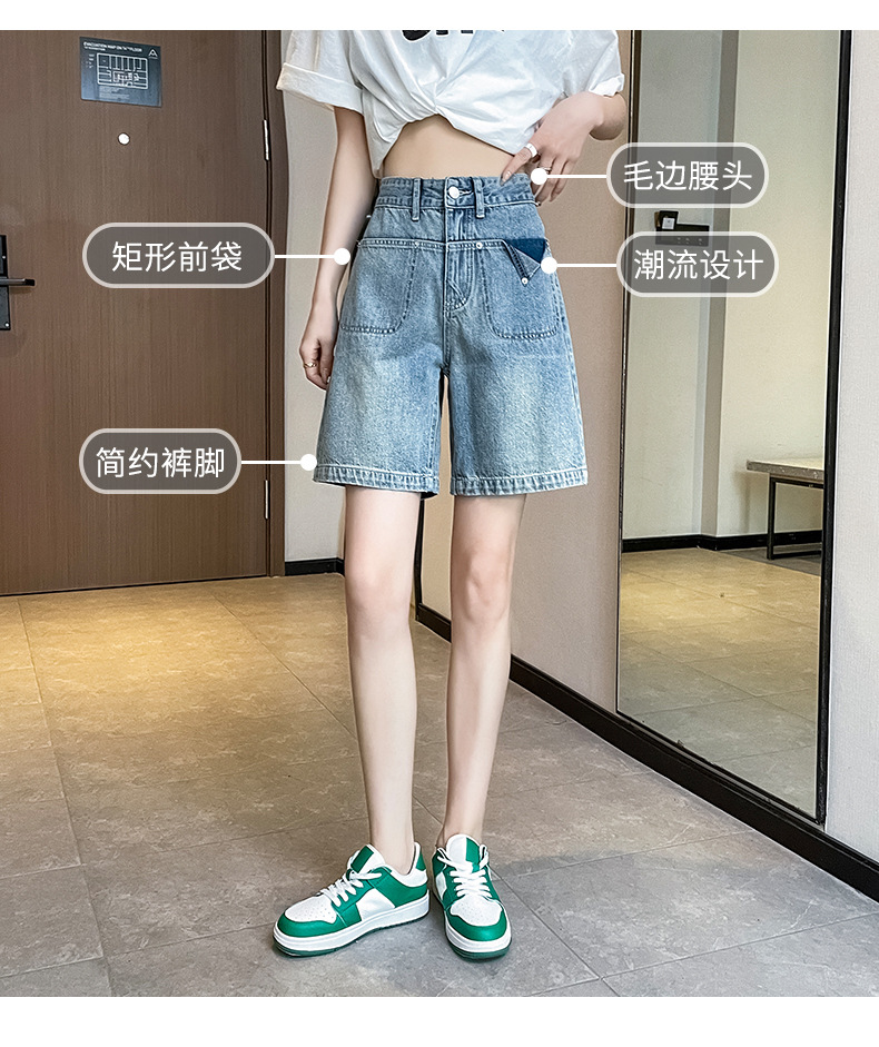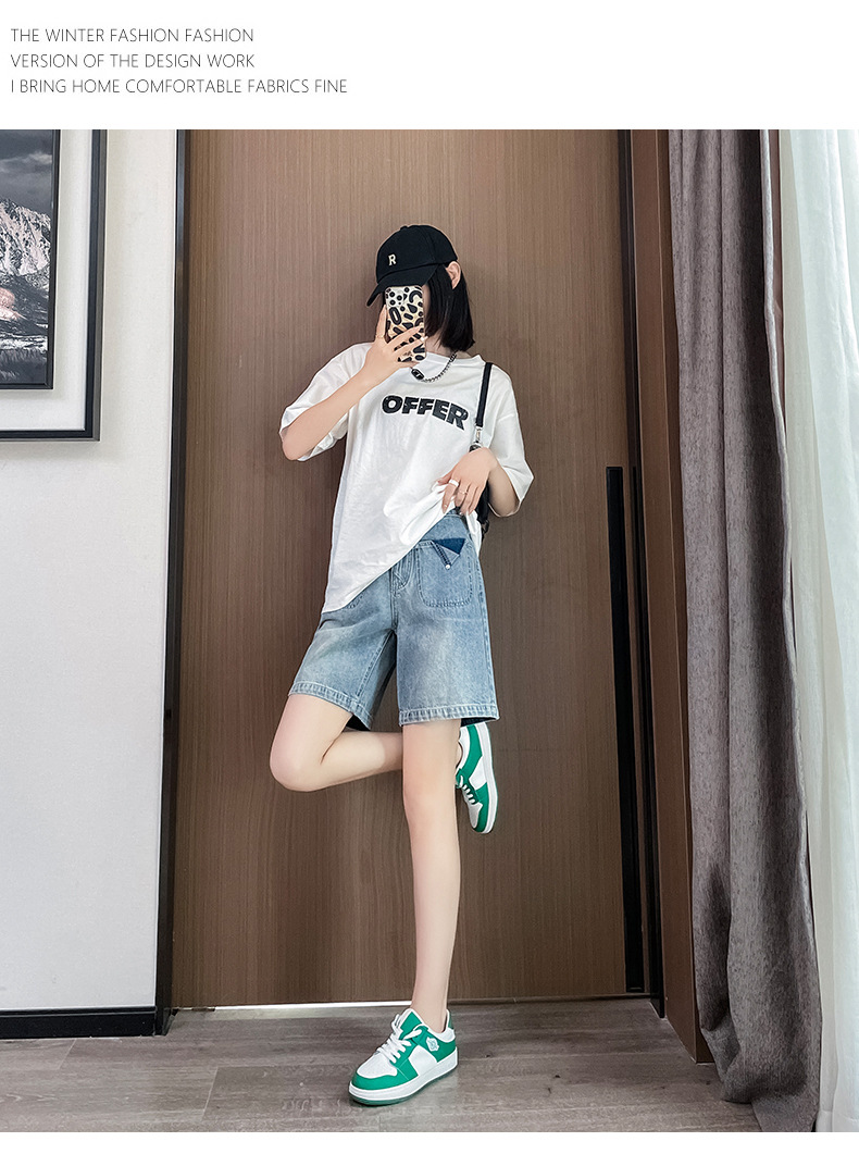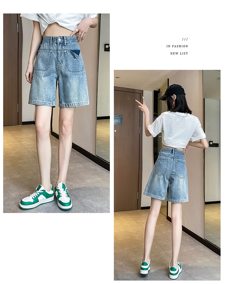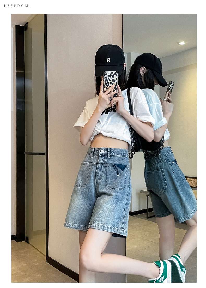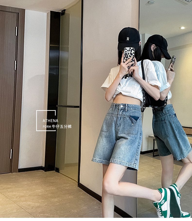雀说浅蓝色牛仔裤直筒五分裤腿粗裤子高腰宽松阔腿过膝5分短裤AL S23B5241