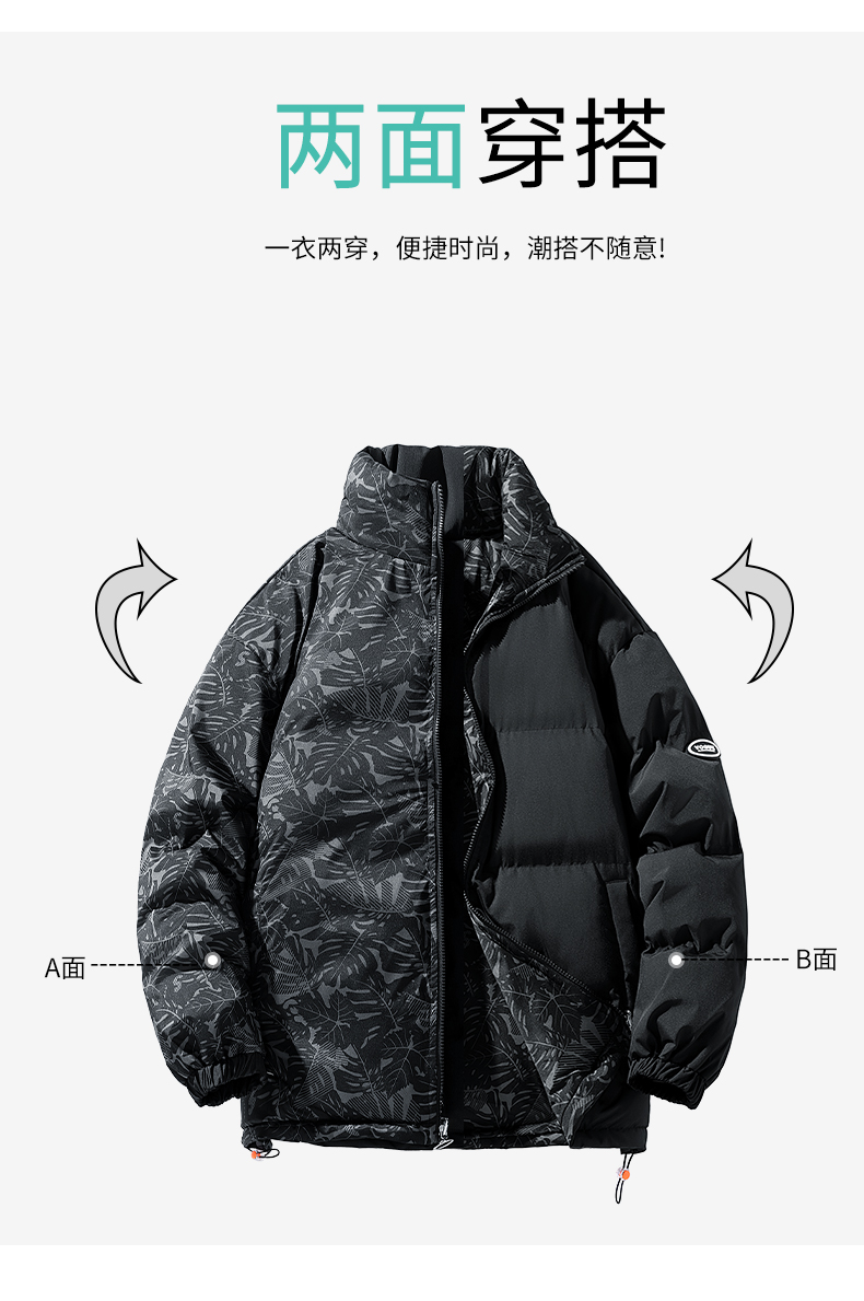 【圈】双面穿【新款DTH】大依优型大码立领棉服保暖棉衣加厚加肥加大上衣男士外套胖子潮款