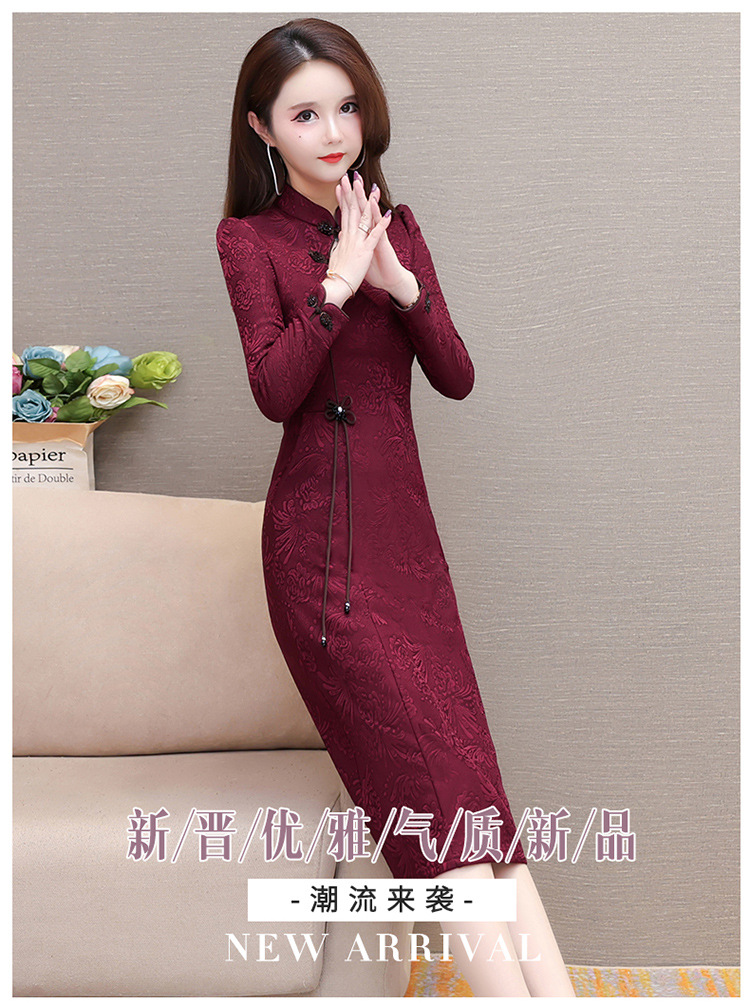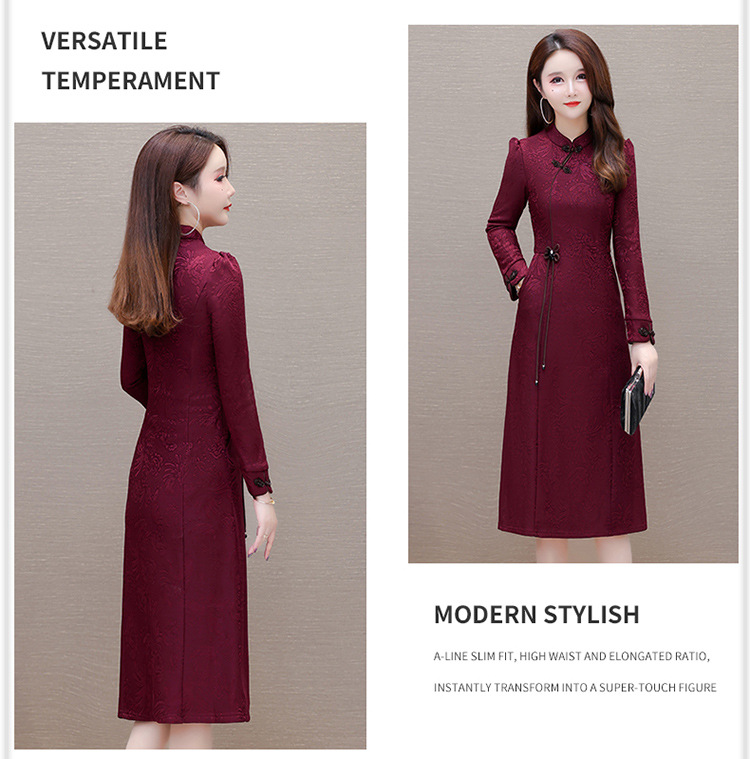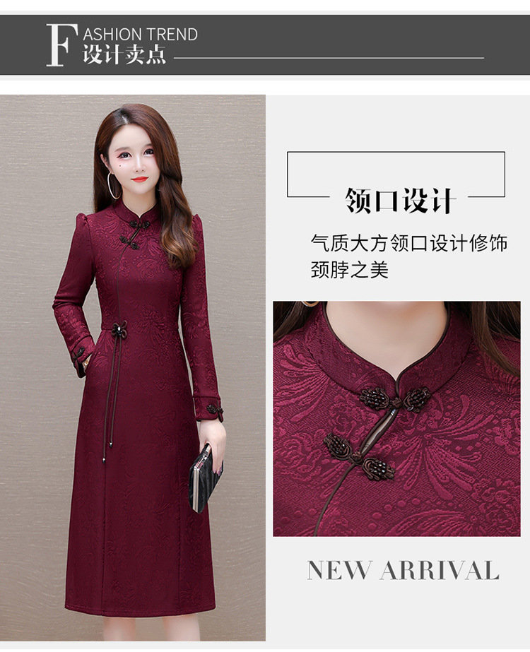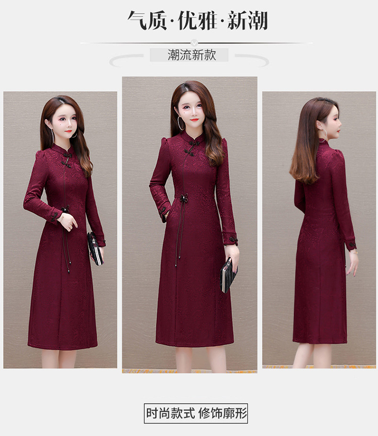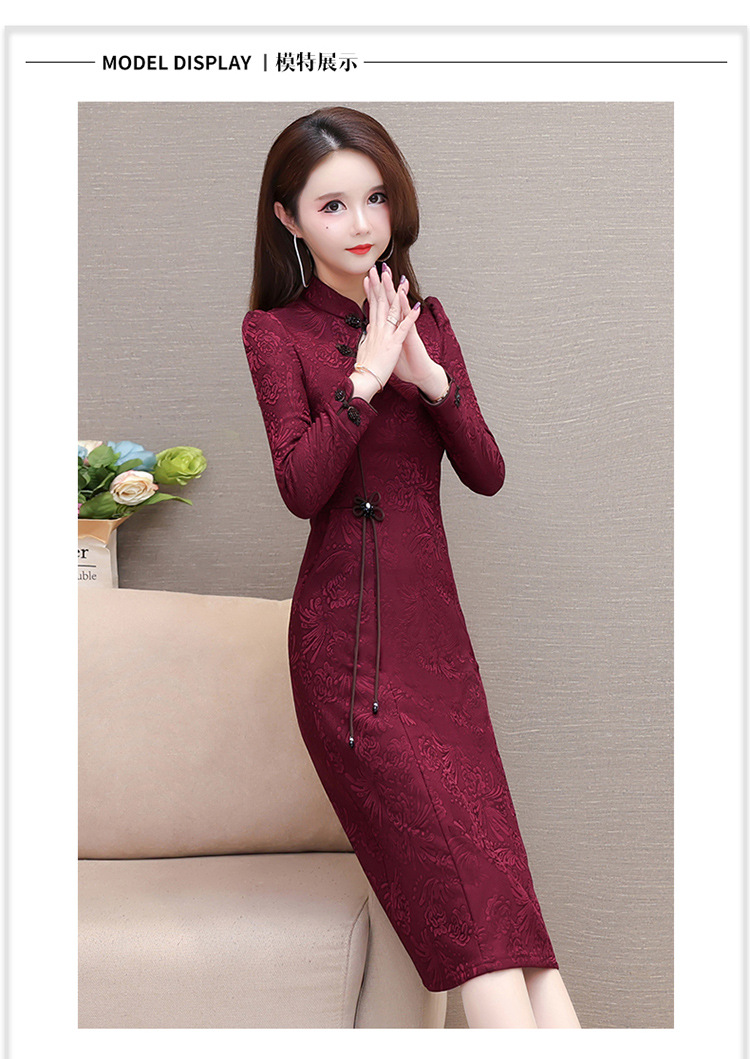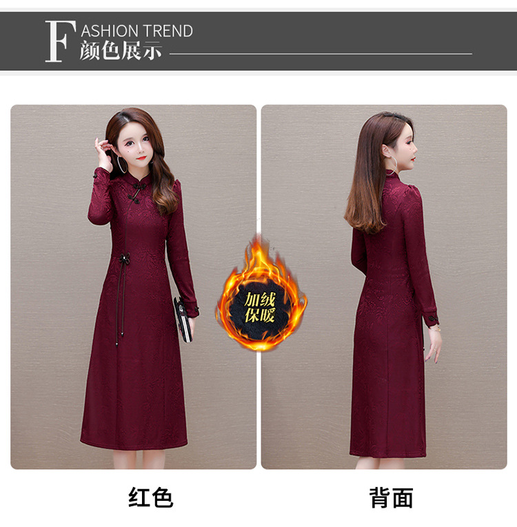 中长款加绒印花时尚连衣裙立领长袖修身洋气旗袍裙QYM-OMS-PB3170-L