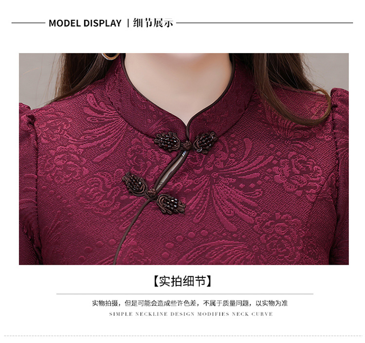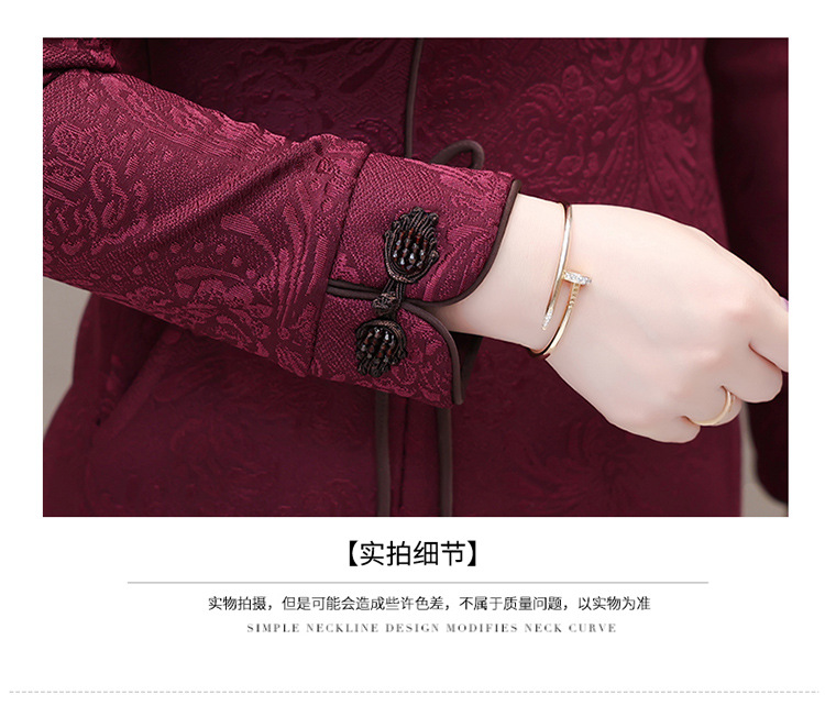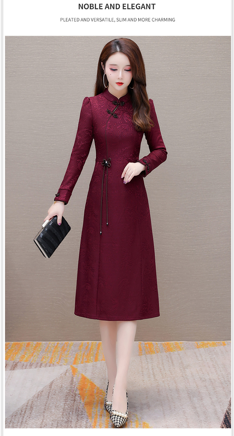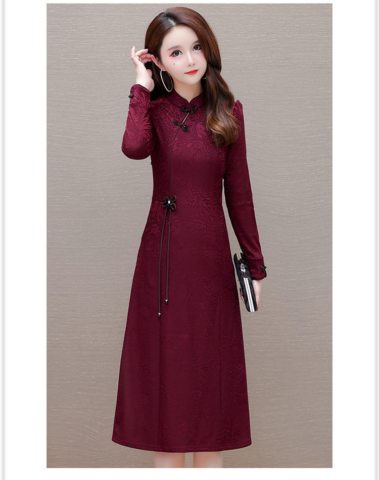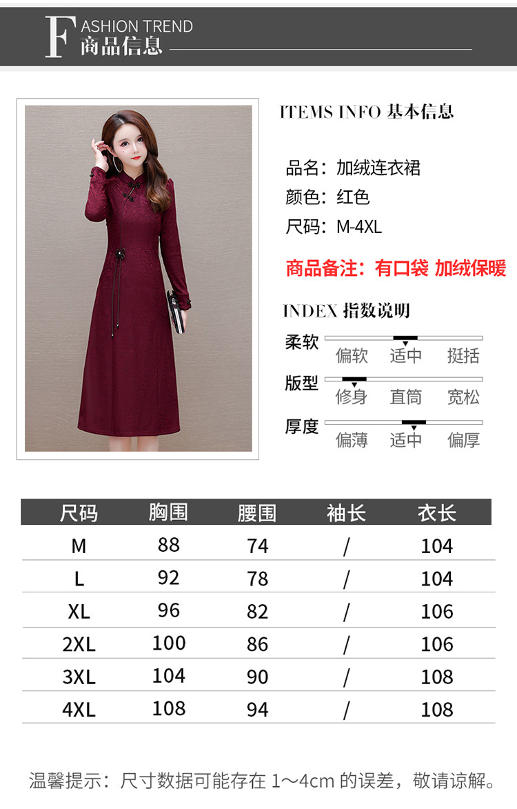中长款加绒印花时尚连衣裙立领长袖修身洋气旗袍裙QYM-OMS-PB3170-L