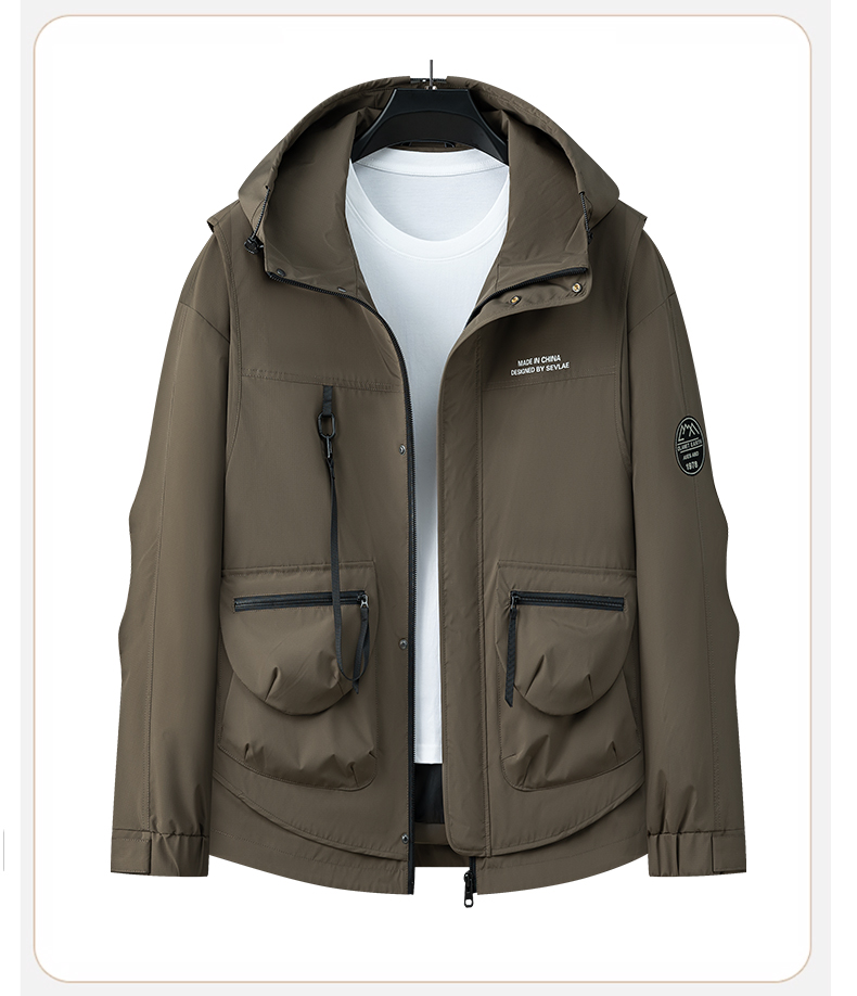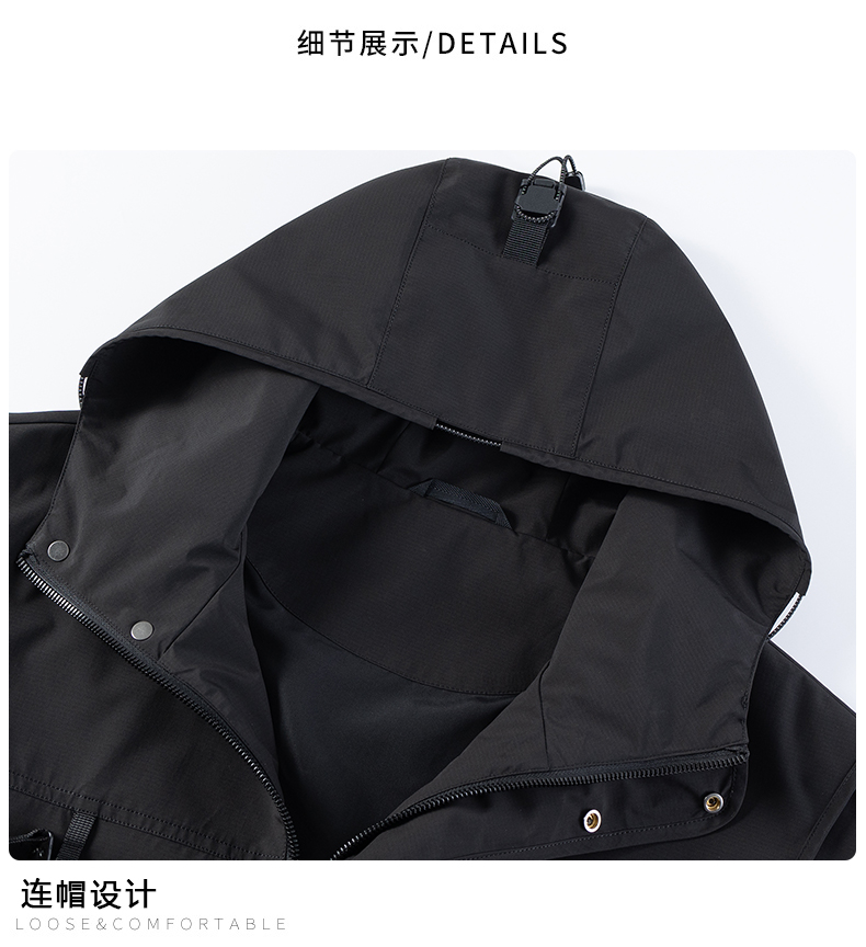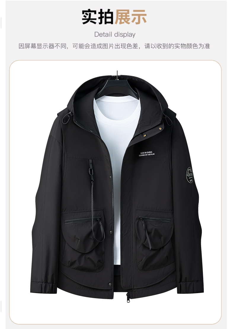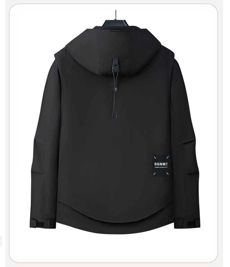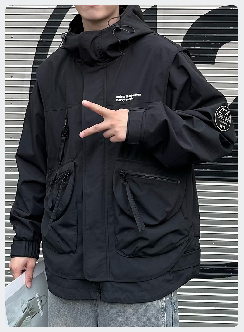 【新款DPX】大依优型大码大口袋工装连帽假两件外套夹克男装胖子春夹克宽松外套男