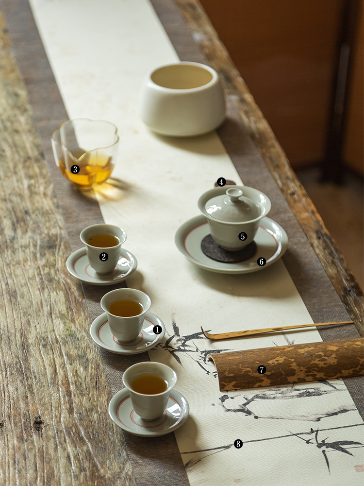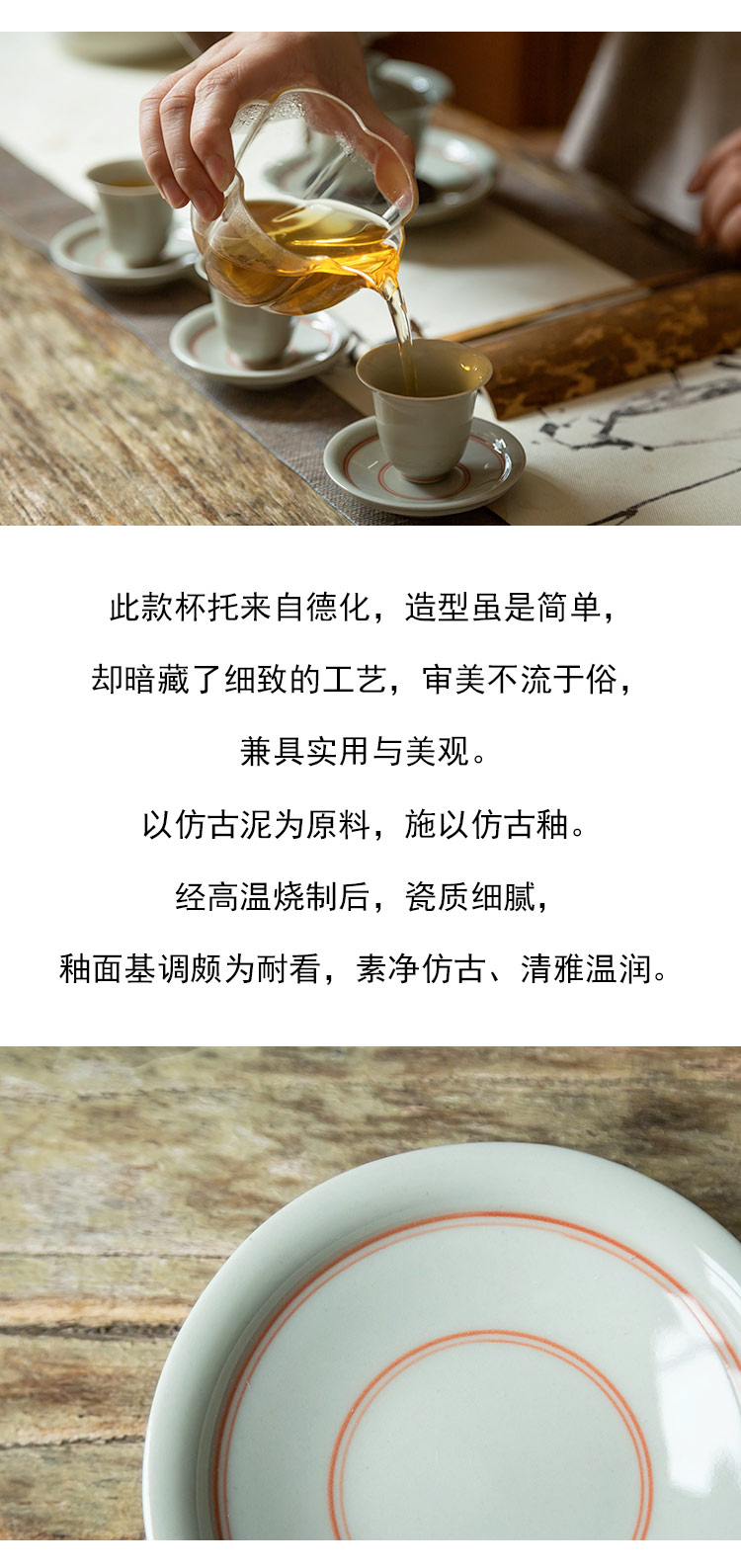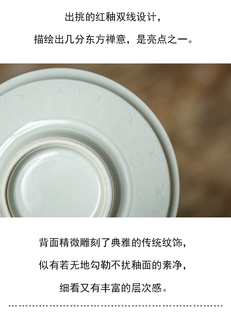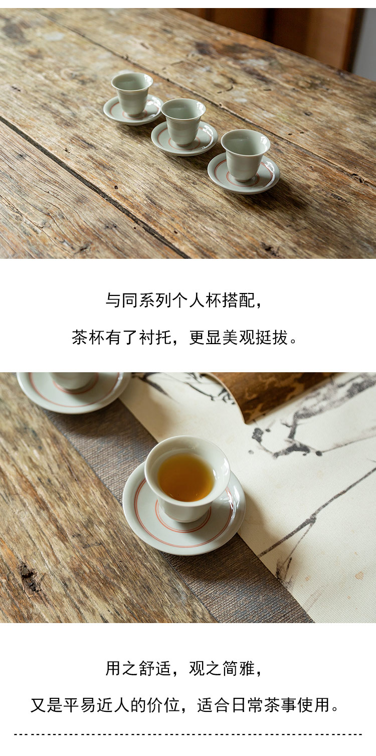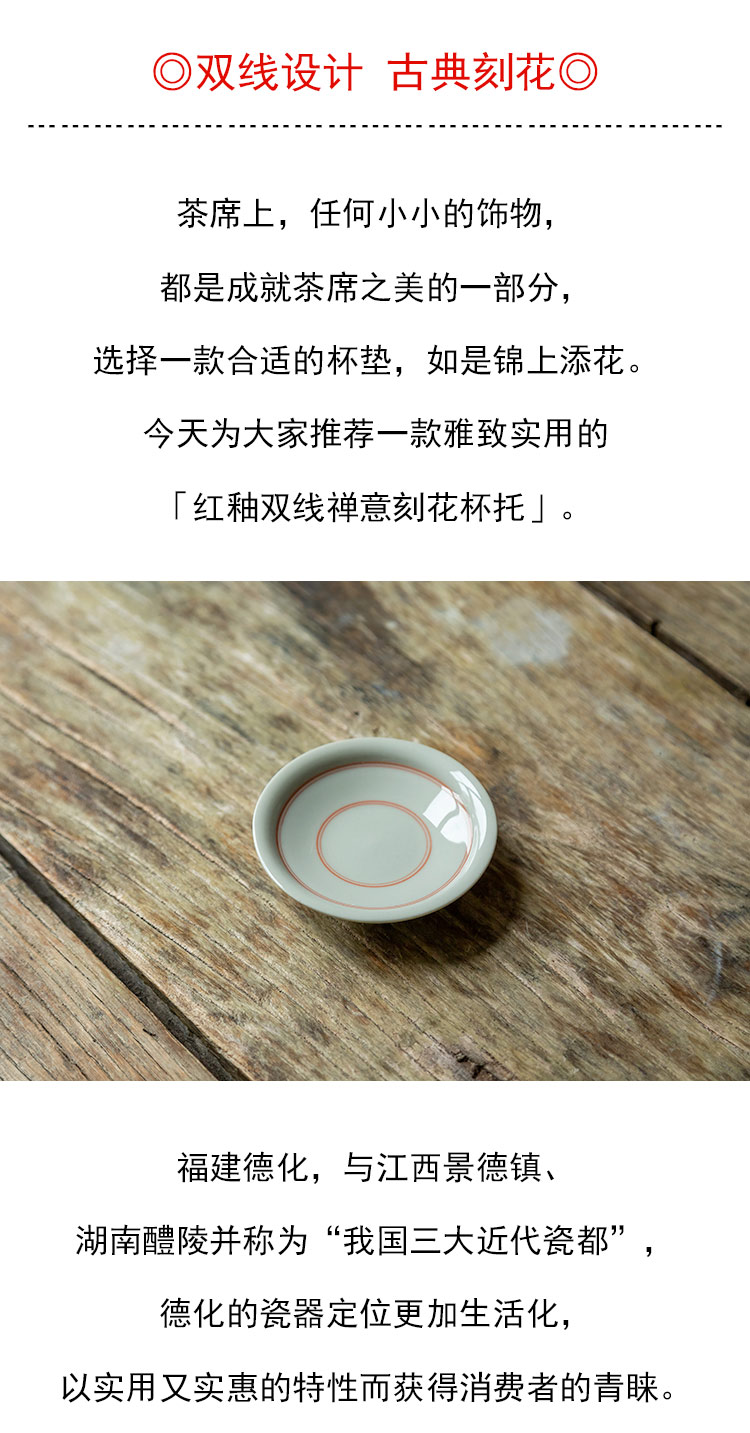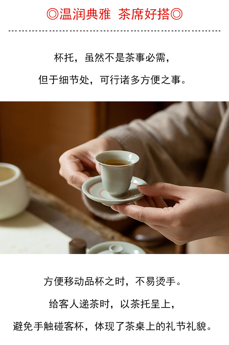 茶香记 红釉双线禅意刻花杯托 温润典雅 好搭 雅致实用 持握轻巧