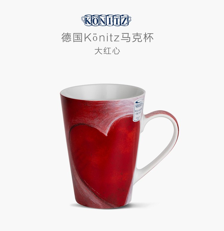 德国原产Könitz水杯陶瓷杯马克杯 大红心420ml