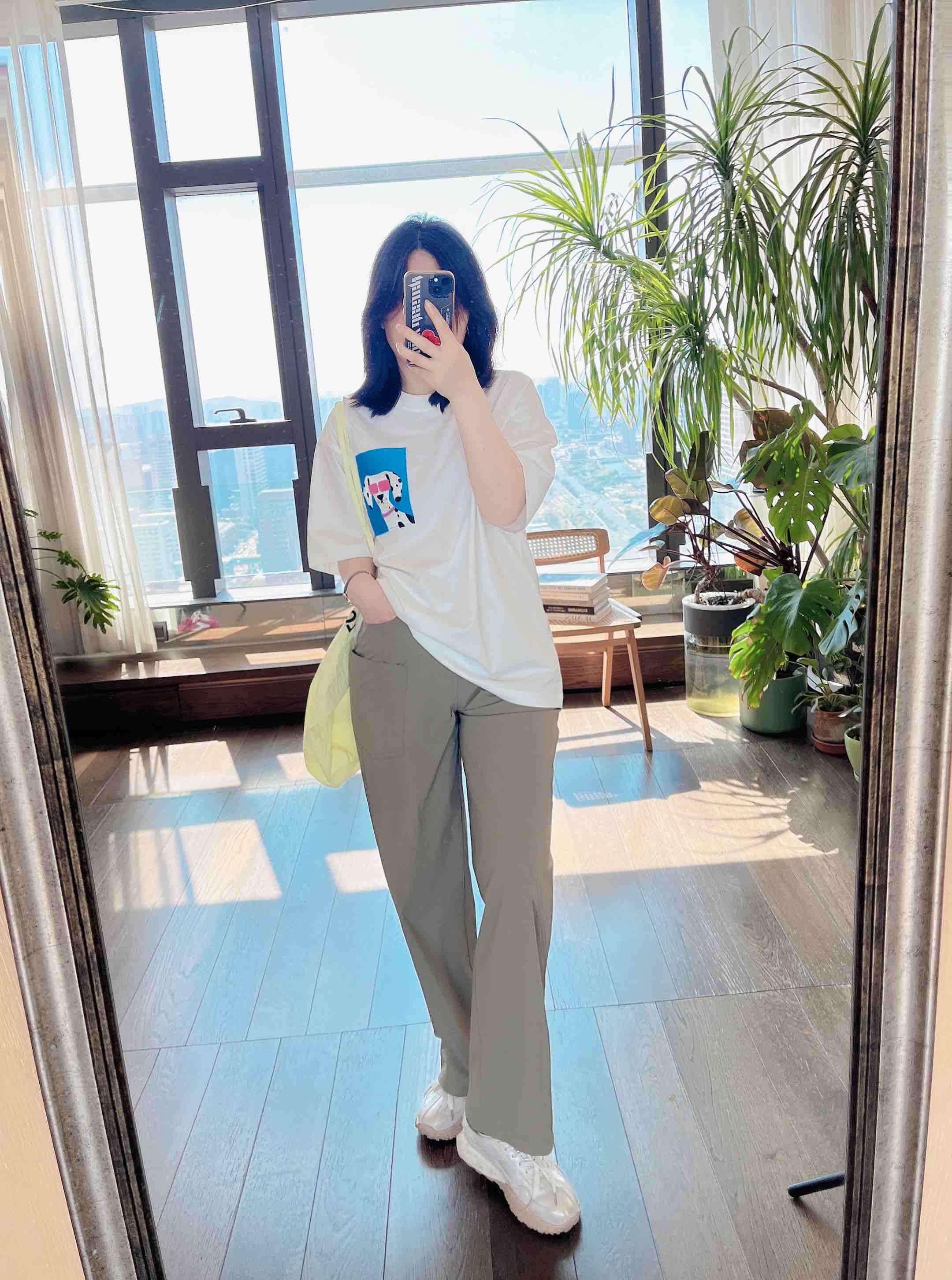 宽腿剪裁,藏住大腿肉感,拉长小腿线条;