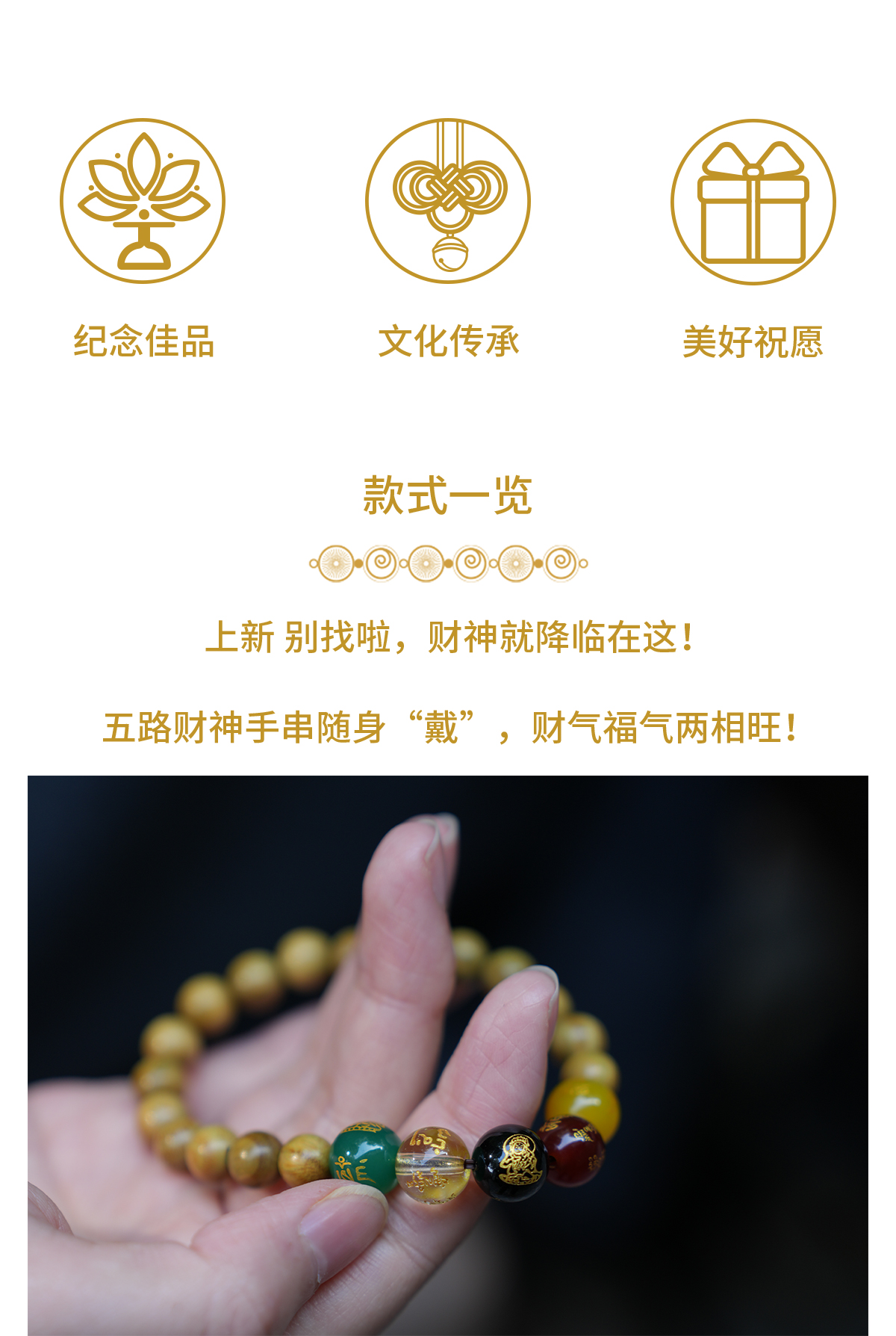 【灵隠景区直发】五路财神手串天然紫金砂黄水晶手串转运本命年情侣手链礼物 3-5天发货